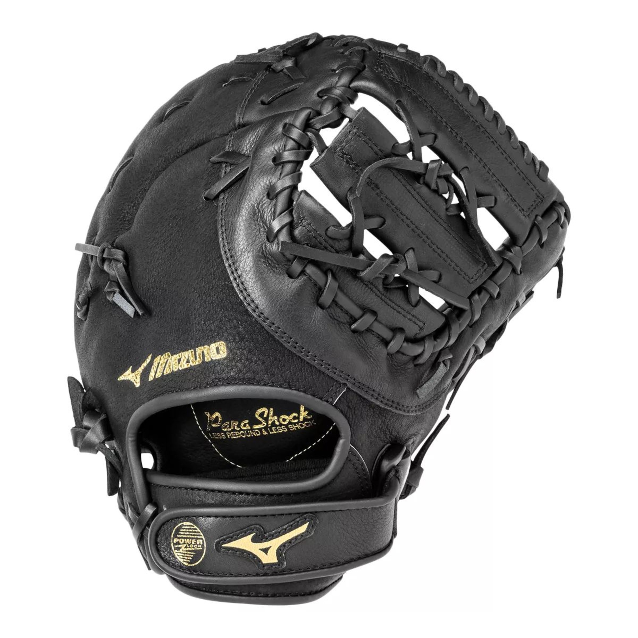 The Mizuno Kids' Prospect 12.5-inch First Base Baseball Glove is made with full-grain pigskin leather for durability and softness. PowerClose Technology of these baseball gloves makes catching easier for young players, while the ParaShock Palm Pad provides protection and comfort, helping kids enjoy baseball.