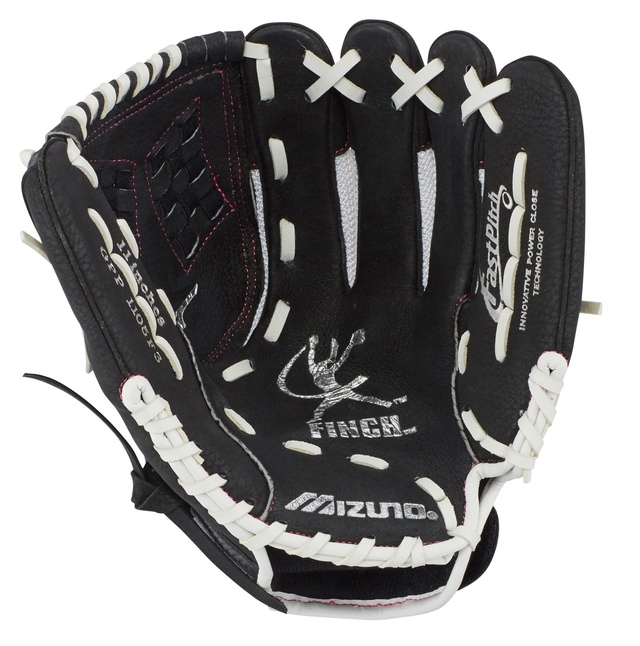 Youngsters can now play like Jennie Finch with the Mizuno Kids Prospect Finch Softball Glove, designed with full grain leather and innovative glove technology. It features a comfortable ButterSoft Palm Liner, flexible AirMesh back and Parashock Palm Pad for extra protection. With PowerClose™ technology, this glove makes catching easier for all skill levels.