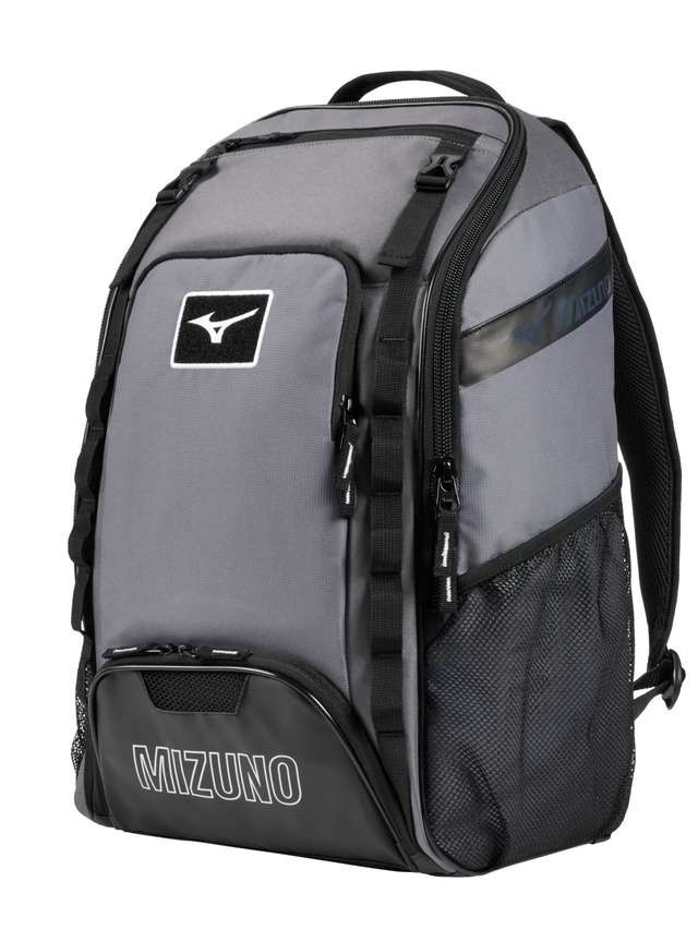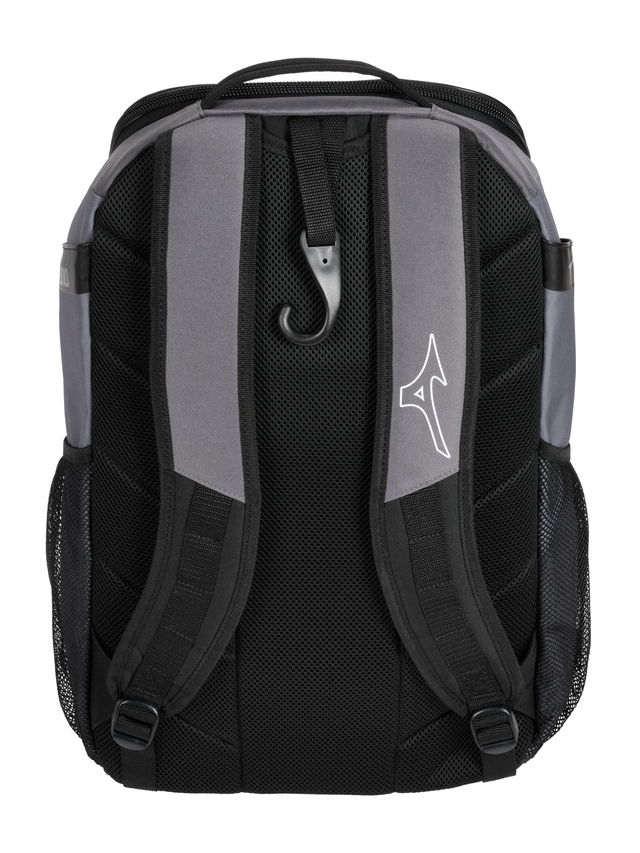 The Mizuno Organizer 26 Backpack provides ample storage and organization. Featuring a ventilated shoe compartment to keep your footwear fresh, this nylon backpack ensures enhanced comfort with its padded back and adjustable shoulder straps. Additional details like a J hook and auxiliary loops offer convenience for easy hanging and access.