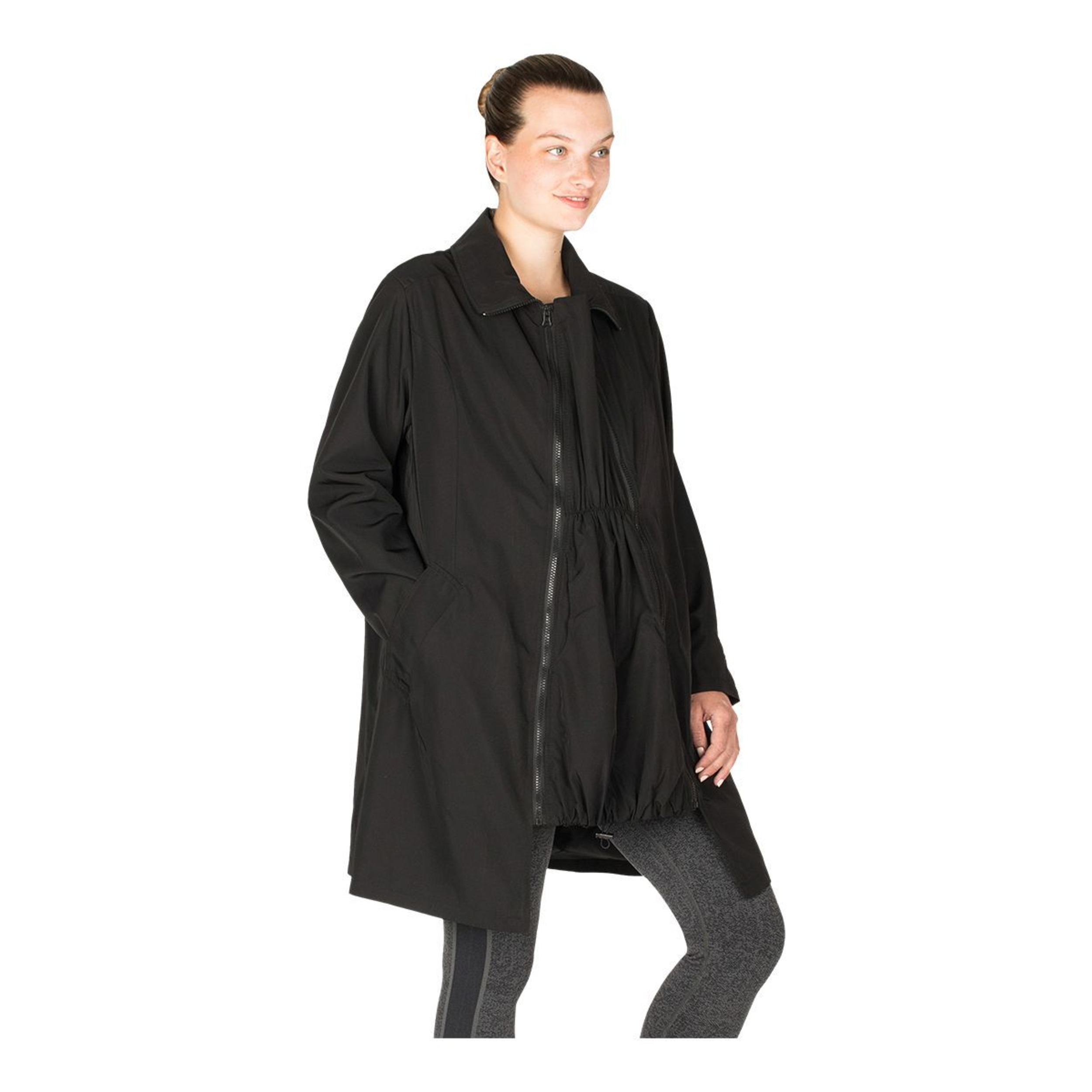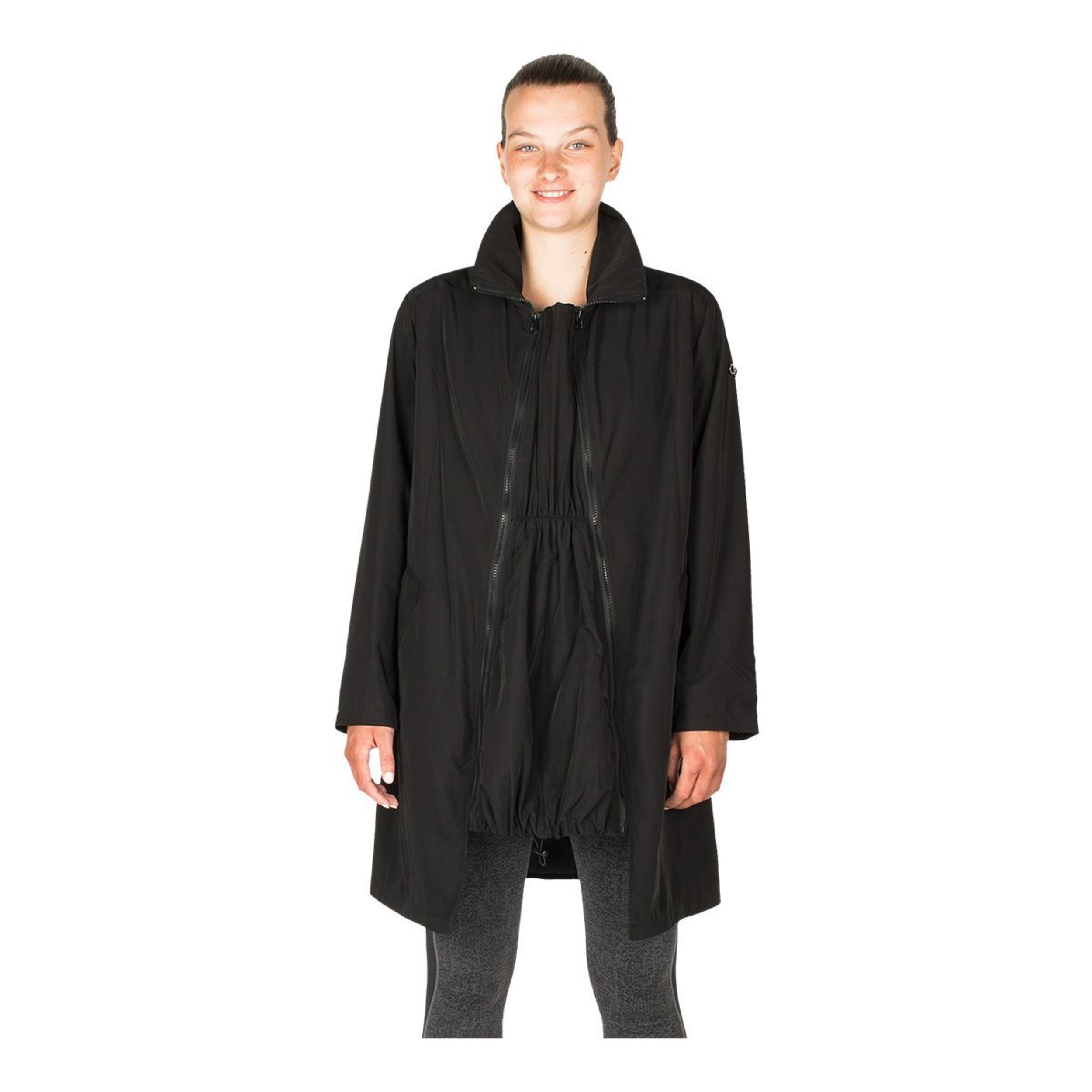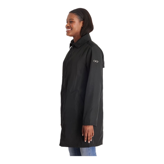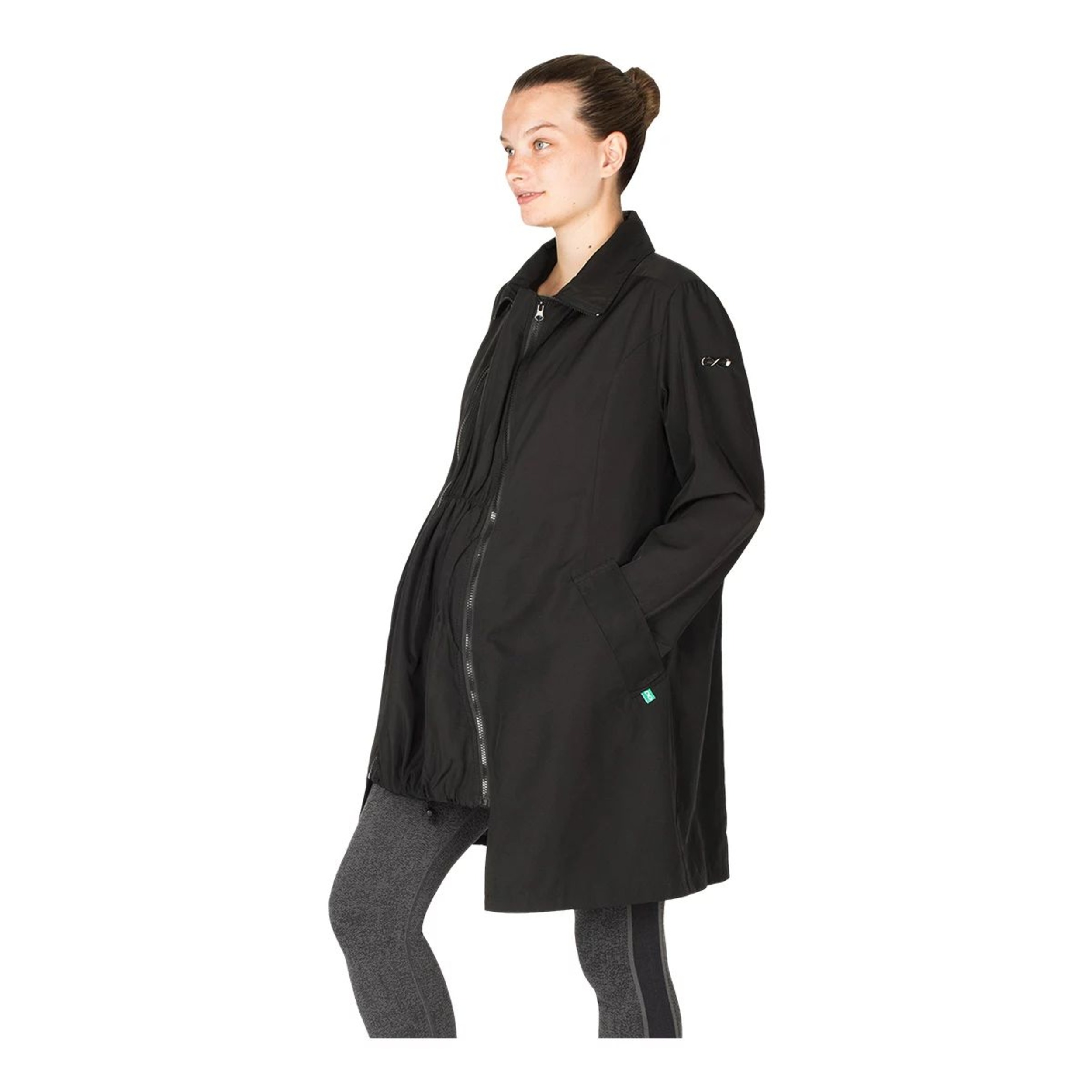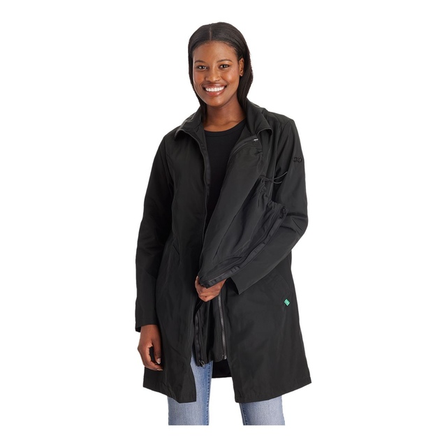 This Modern Eternity Women's Avelynne Water-Resistant Maternity Jacket is a twill maternity trench coat with 3-in-removable panel technology, which is wearable pre and post-pregnancy. This maternity jacket features kangaroo pockets at a removable panel for easy access. With welt pockets for a seamless closure and storm shield detail at the back, this water-resistant jacket keeps you protected in wet conditions.