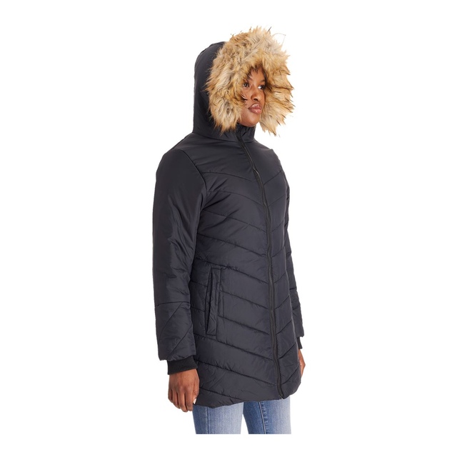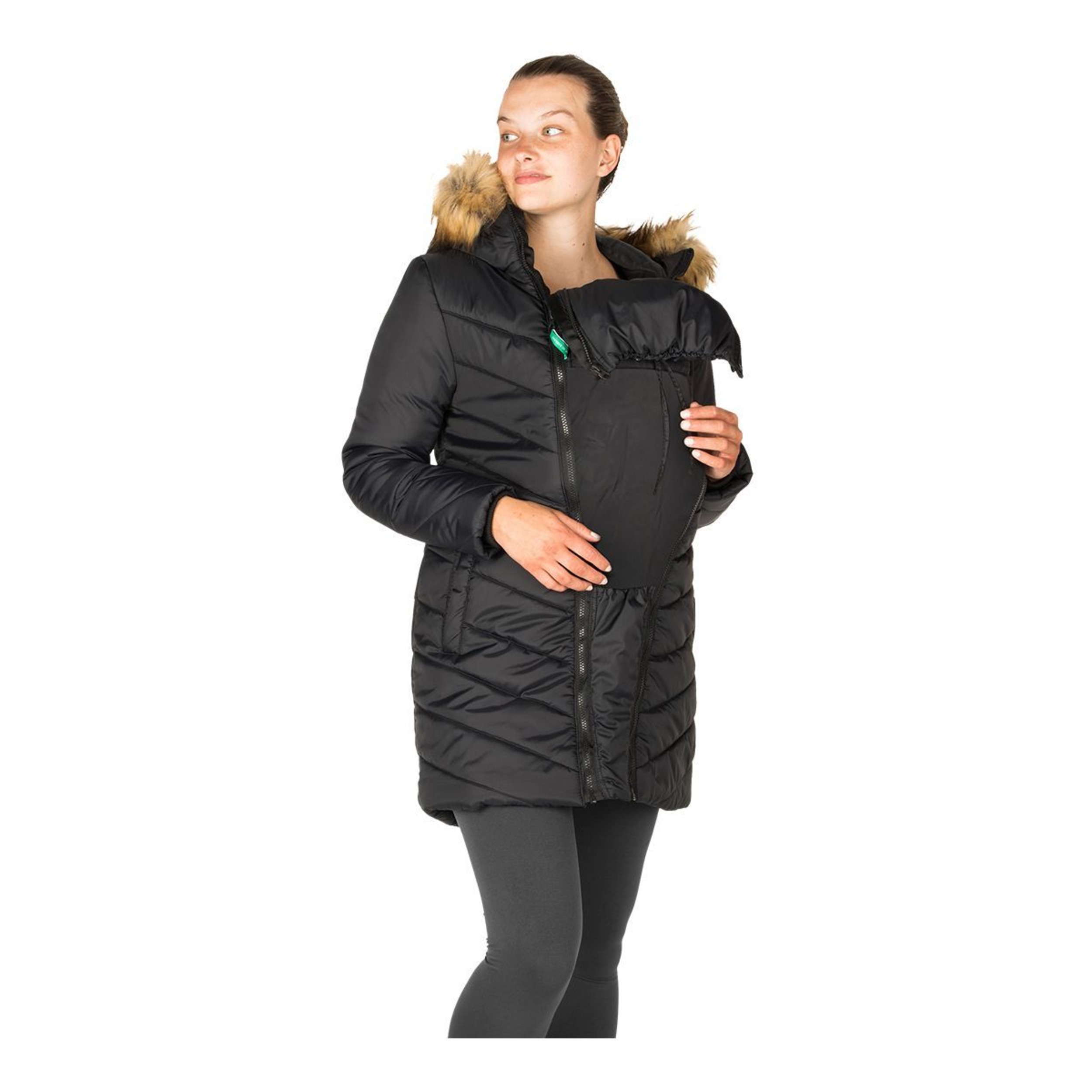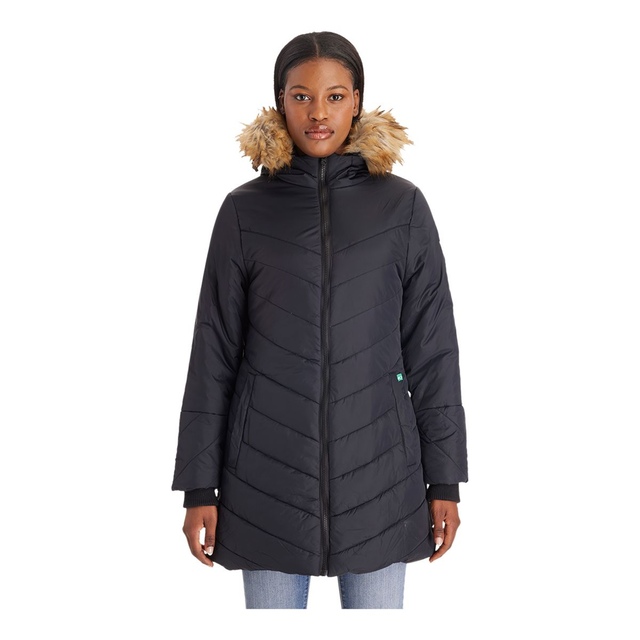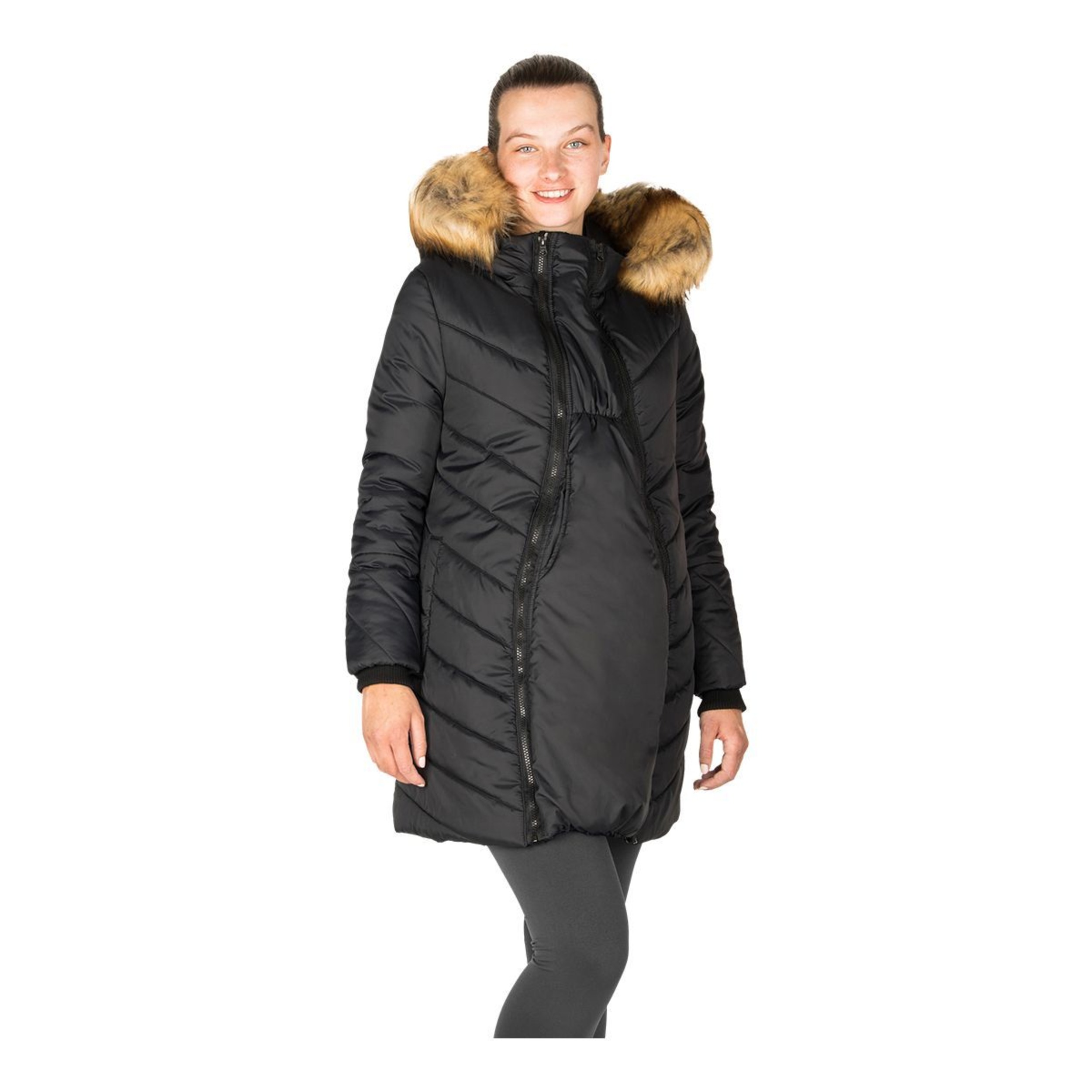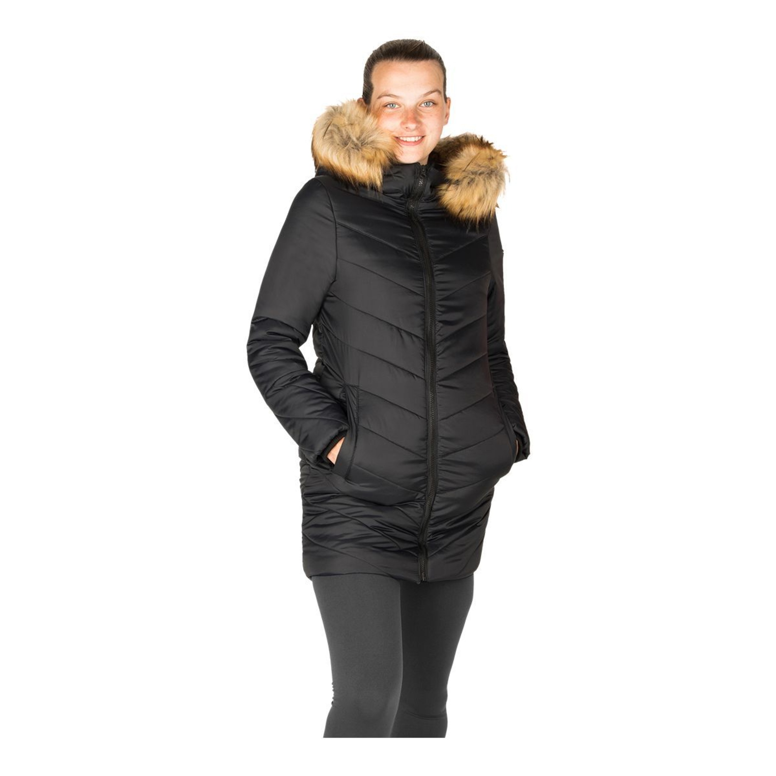 The Modern Eternity Women's Lexi Maternity Jacket is a chic polyester fill finished with chevron-style quilting for a flattering puffer fit. It’s wind and rainproof, perfect for everyday outdoor activities. The removable 3-in-1 maternity panel patented technology adapts to your body throughout pregnancy. With detachable fur trim, this maternity jacket provides comfort when transitioning from lightweight to heavyweight snow days. Online only.