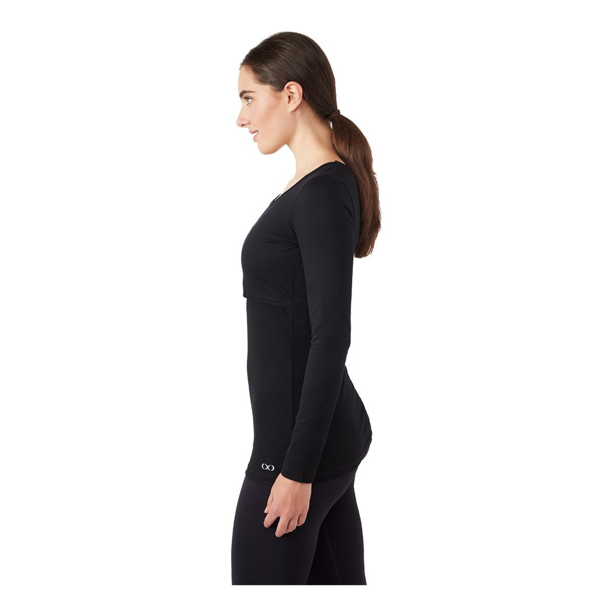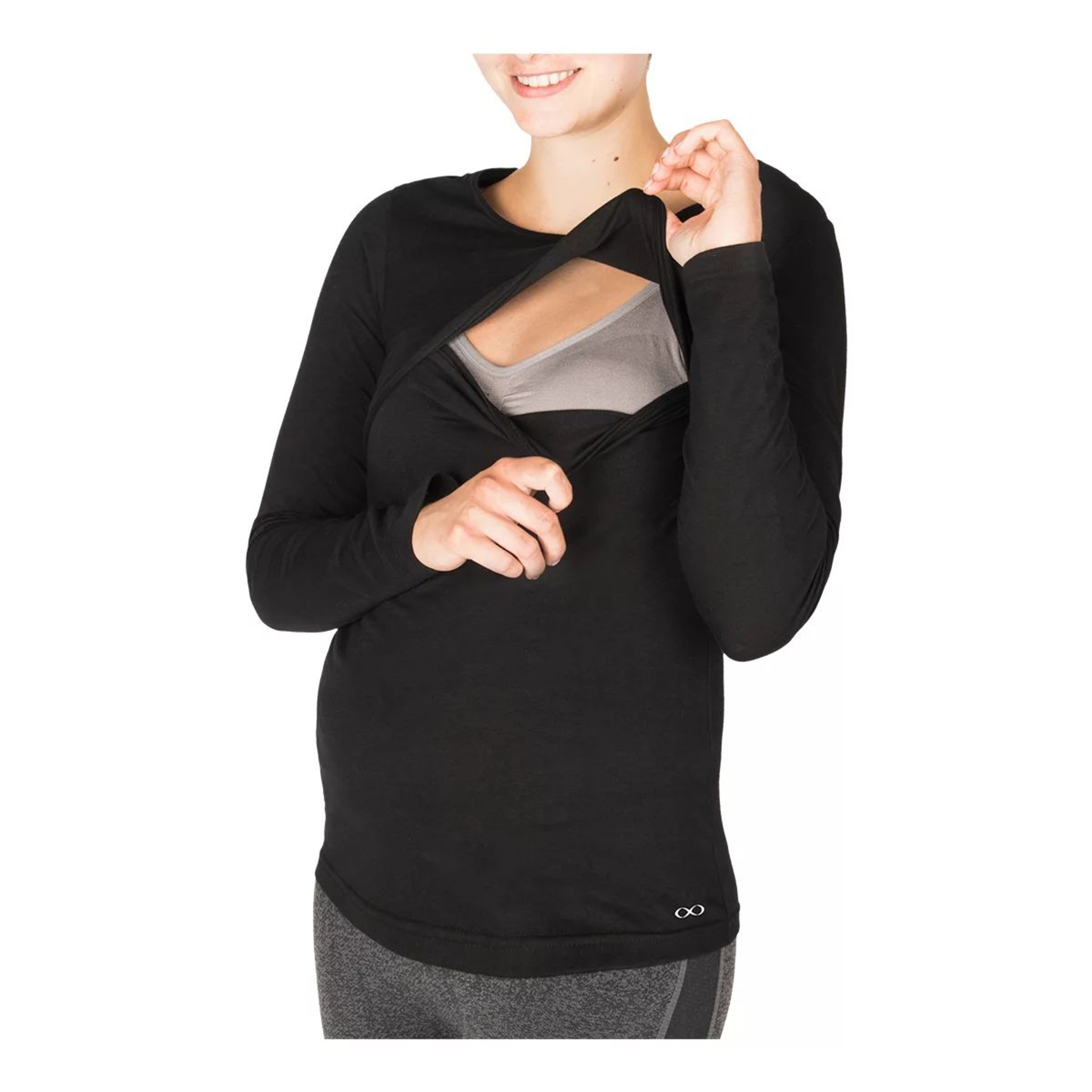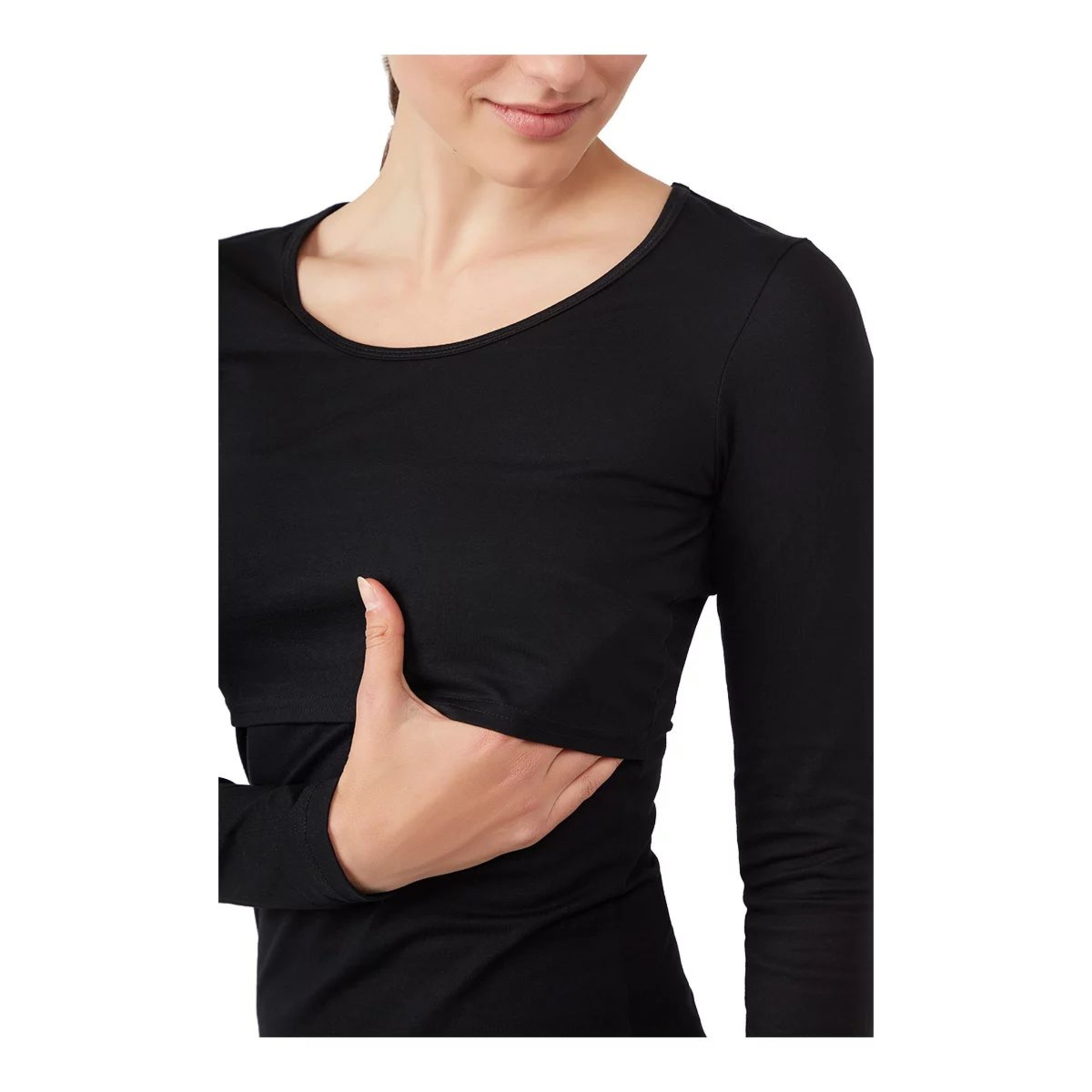 This short-sleeve nursing top is soft, comfortable, breathable and stretches to be figure flattering. Featuring a low swooping crew neck collar, elasticized inner section and an understated fitted cut , this top is classic minimalism at its absolute finest.