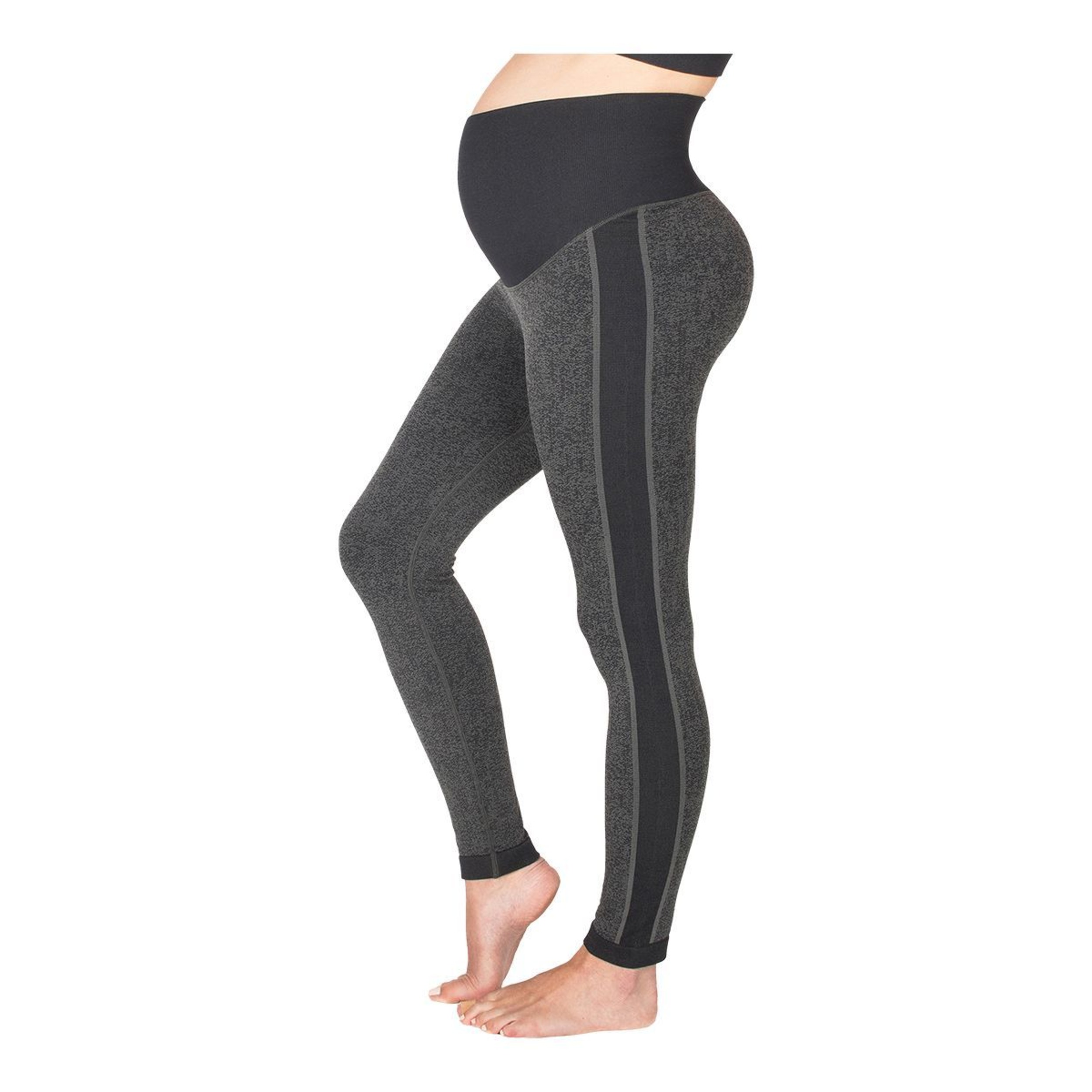 Online Only. Seamless active maternity leggings for excellent comfort and fit. The high rise belly has a fold over option.