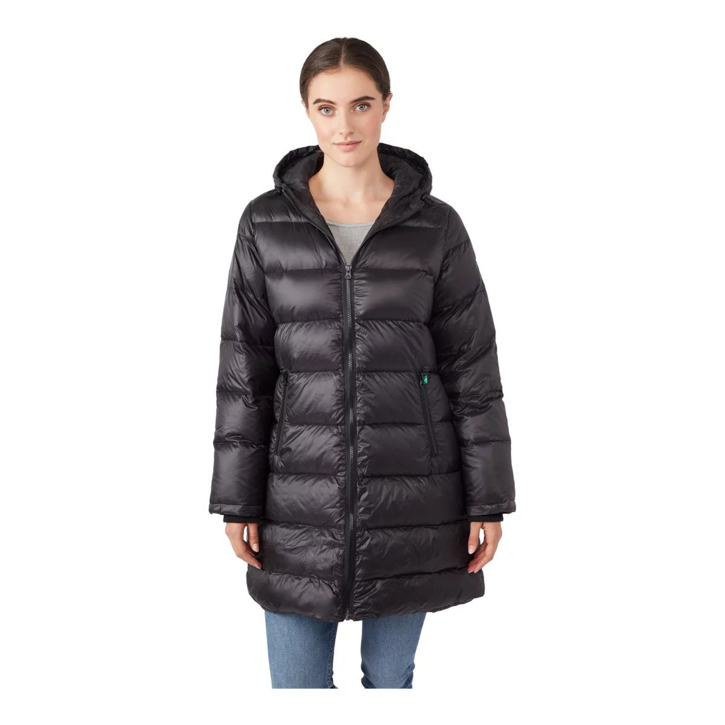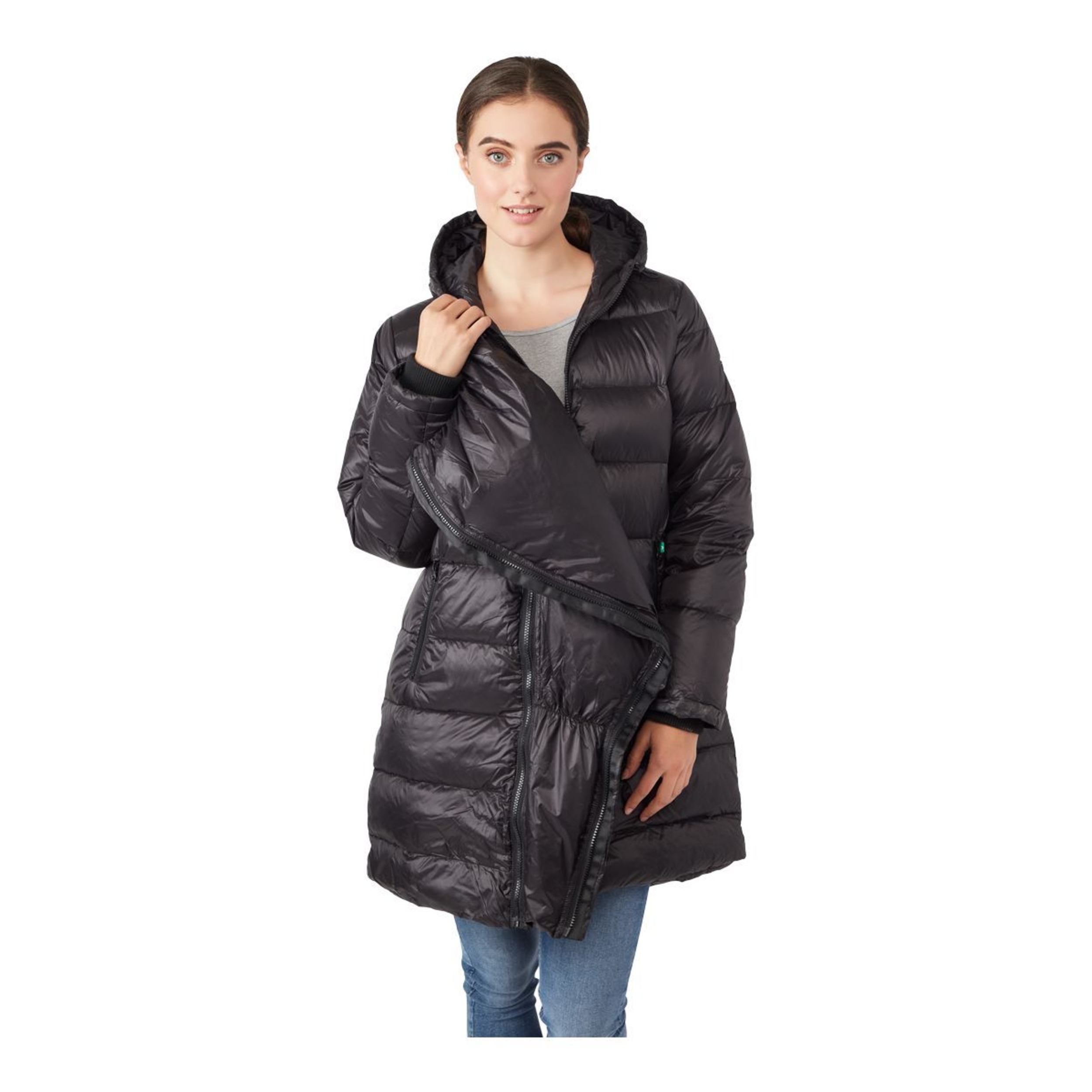 The Modern Eternity Women's Naomi Maternity Parka is made with heavy down nylon to keep you warm in the extreme cold. It's waterproof and lightweight with ribbed storm cuffs, perfect for everyday outdoor activities. The removable 3-in-1 maternity panel patented technology adapts to your body throughout pregnancy. With kangaroo pockets and rib knit insert on panel, this maternity parka offers convenience and warmth.