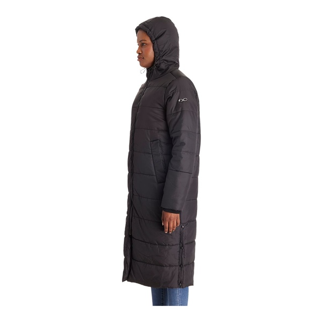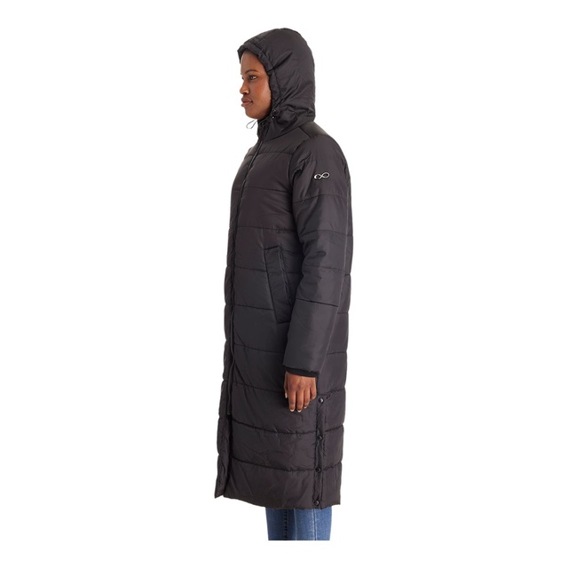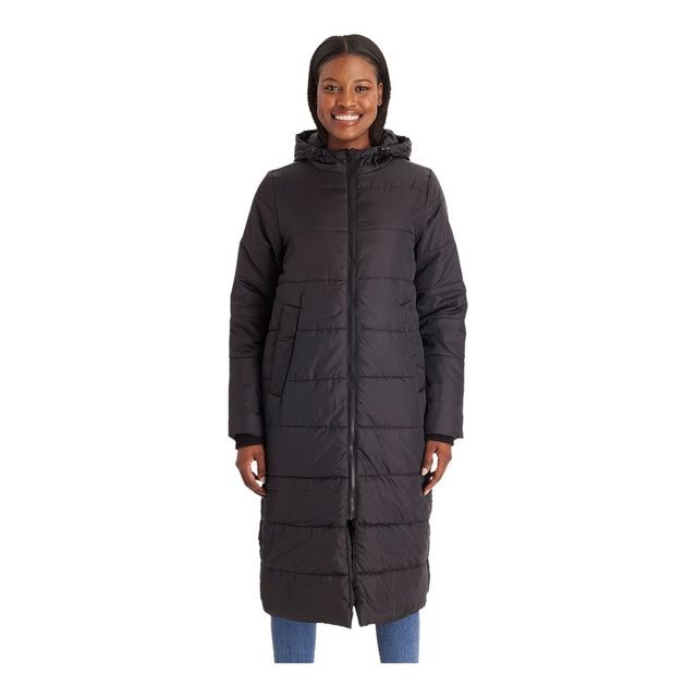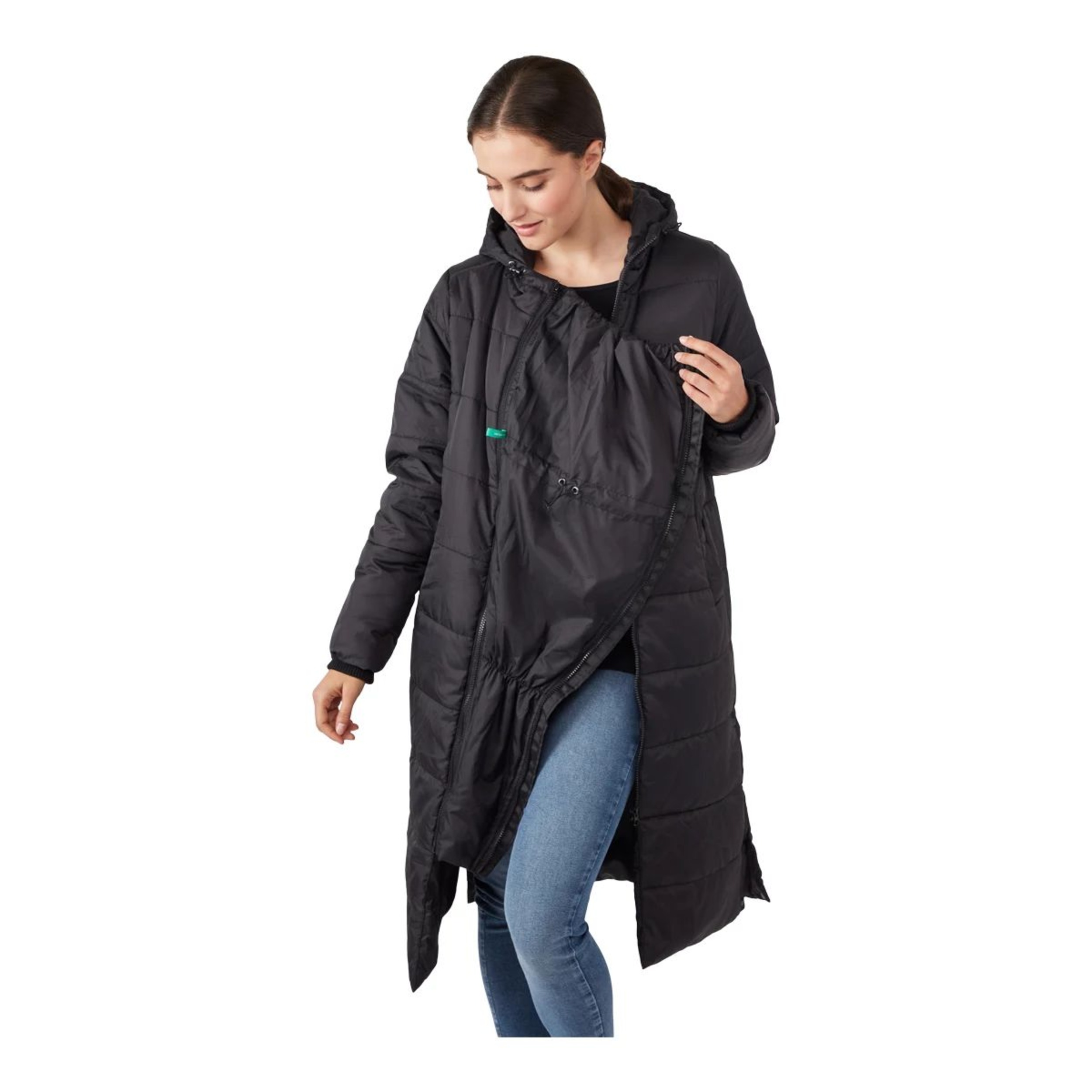 The Modern Eternity Women's Penelope Maternity Puffer Jacket is long and quilted for expectant mothers. Made with polyester, this jacket is durable and comfortable in the cold. The removable 3-in-1 maternity panel patented technology adapts to your body throughout pregnancy. With kangaroo pockets and rib knit inserts, this long puffer jacket offers convienience and warmth. Online only.