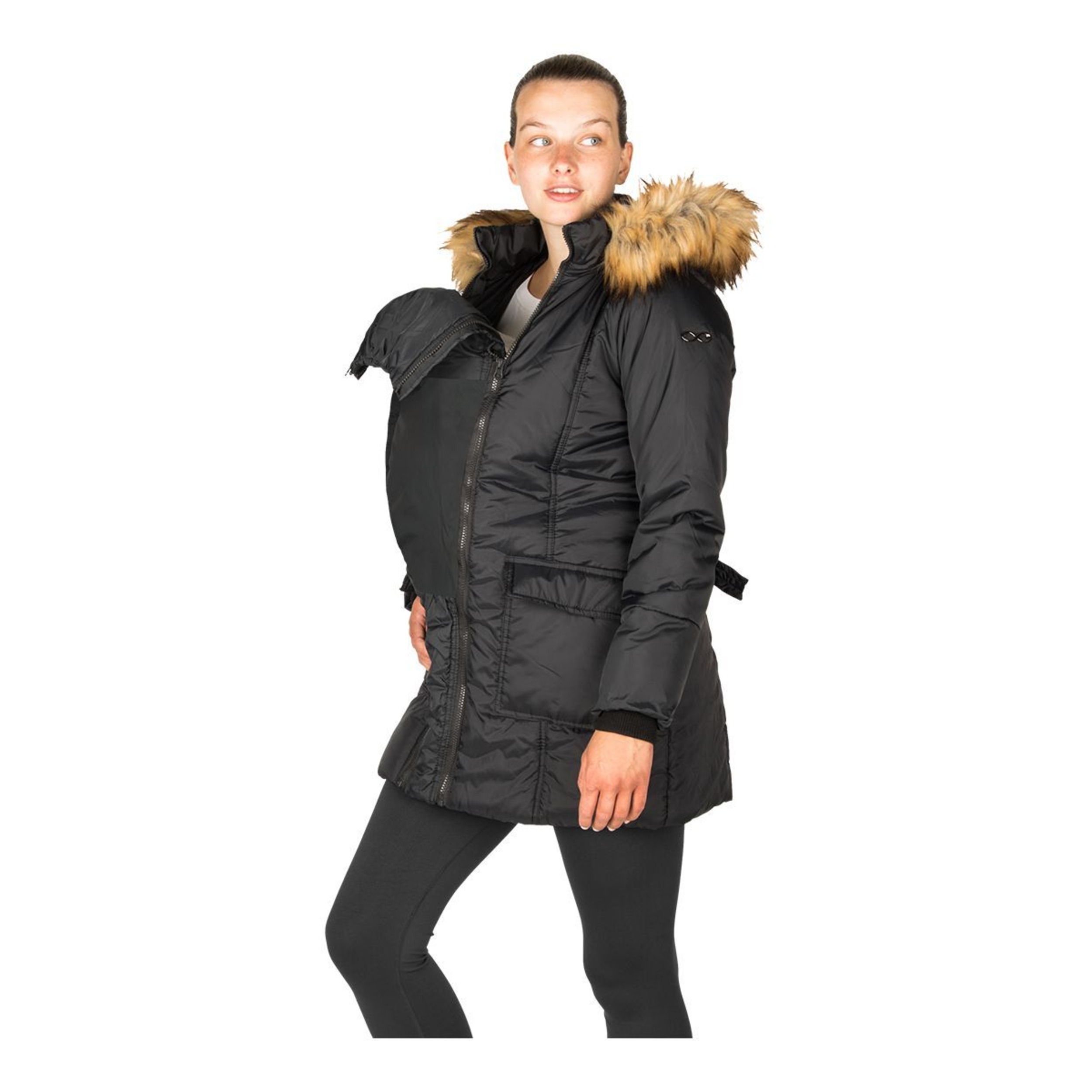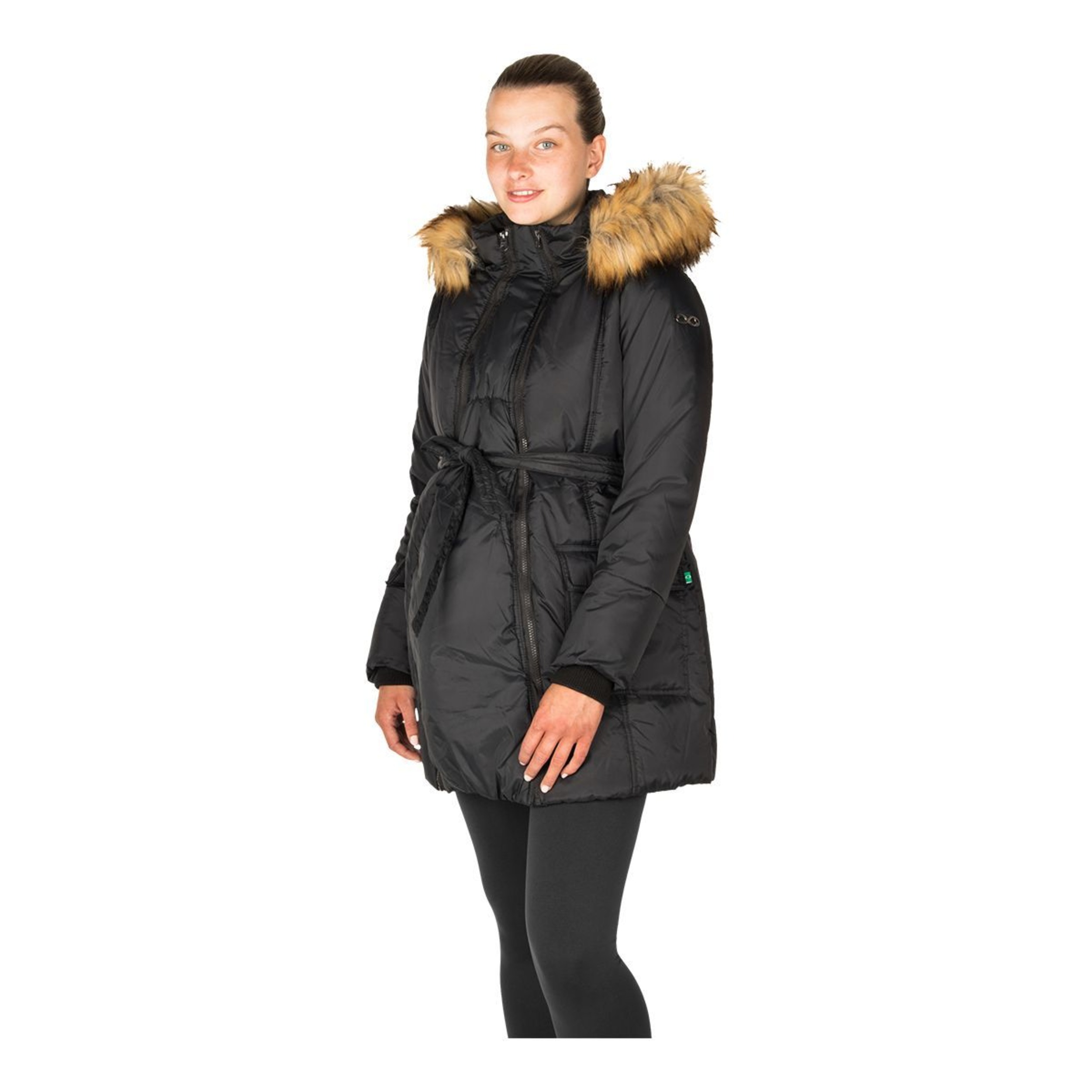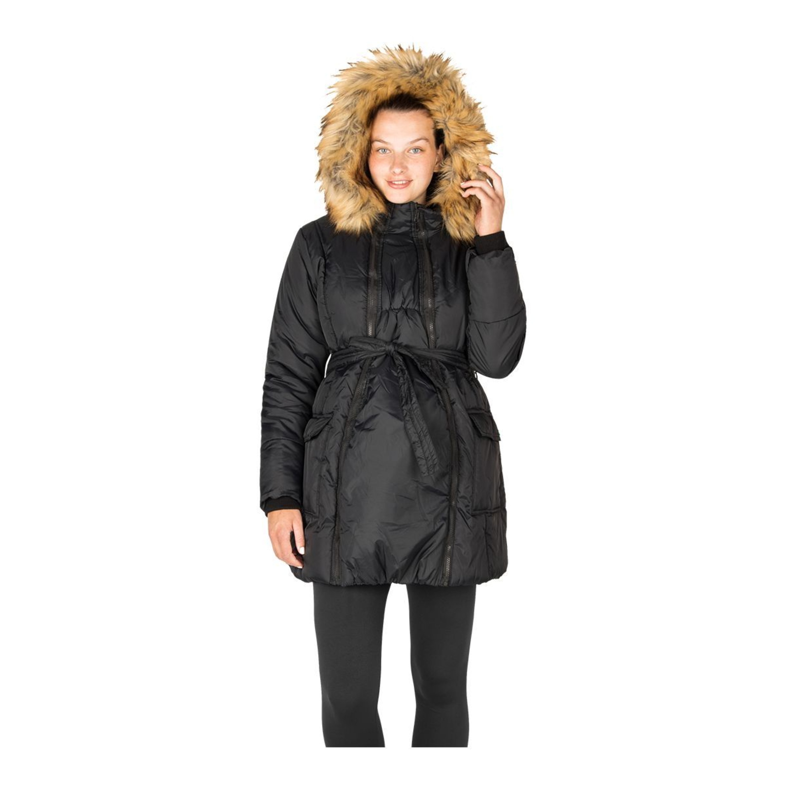 This Modern Eternity Women's Rachel Maternity Jacket is one of the most popular on the market, offering style, comfort, and practicality. It's wind, waterproof, and lightweight, perfect for everyday outdoor activities. With removable panel technology, this maternity jacket adapts to your body throughout pregnancy to keep your baby warm and dry postpartum. Tie the belt for a stylish winter parka look. Online only.
