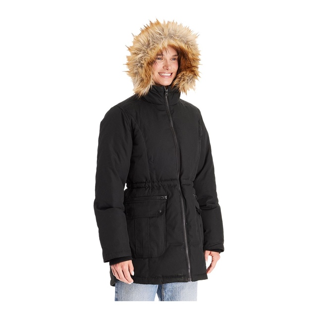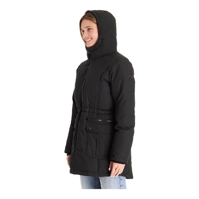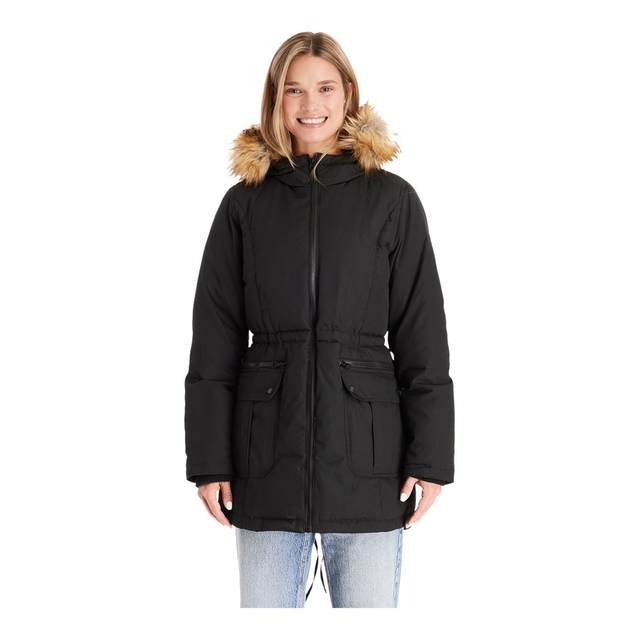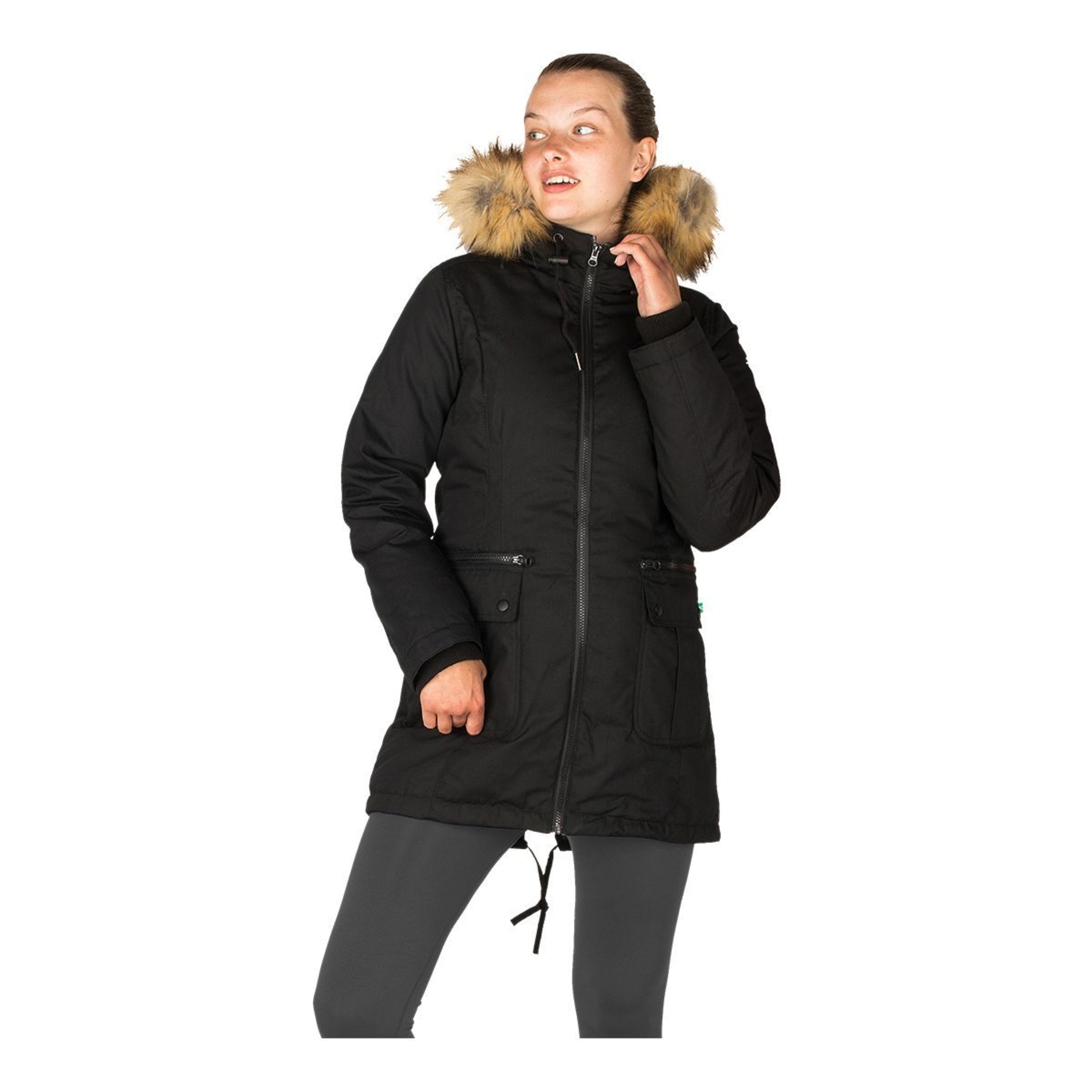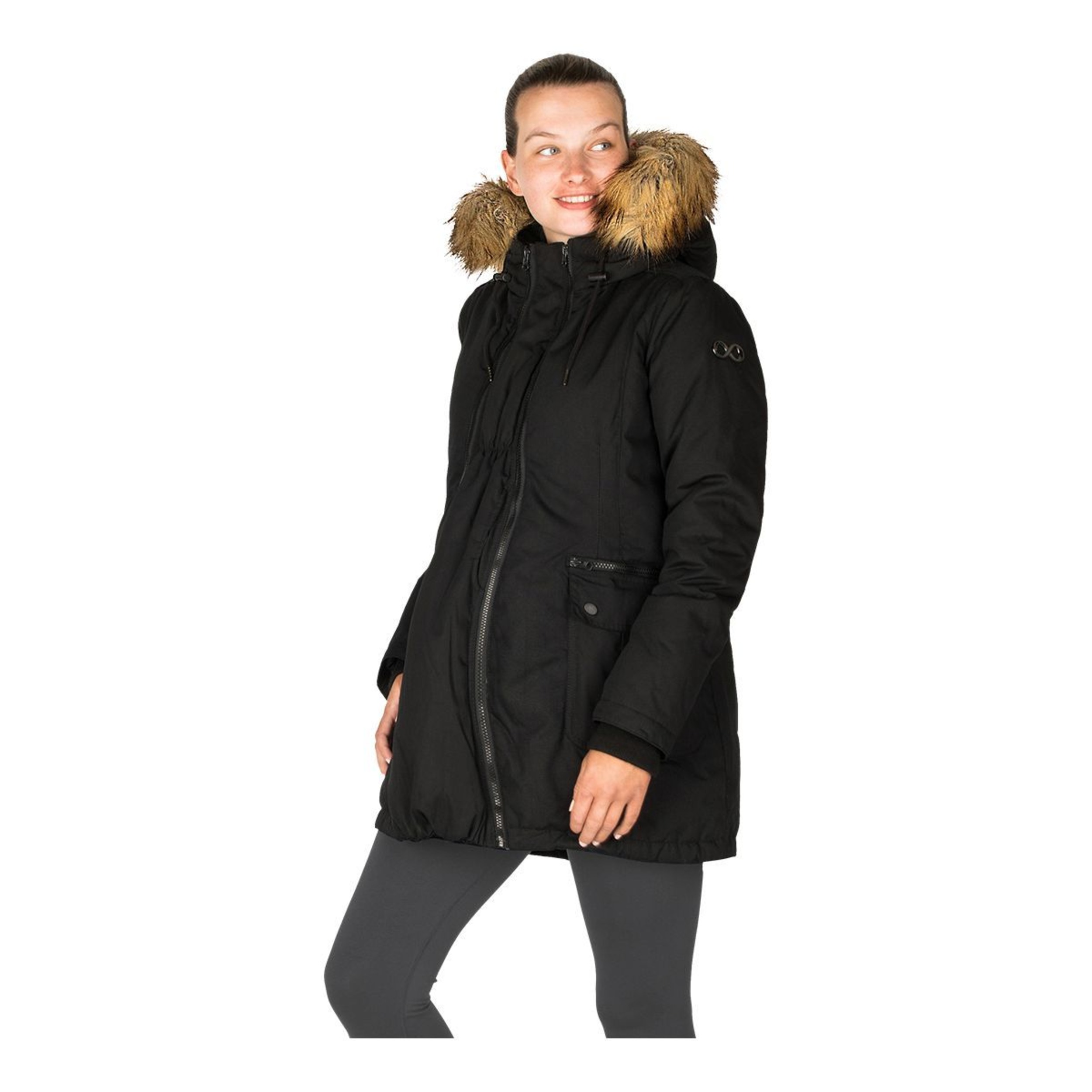 I had been shopping for a WARM maternity jacket for quite some time, and with COVID restrictions I am spending even more time outdoors this winter! Having reached about 20 weeks into my pregnancy, the oversized sweaters and rain gear wasn't cutting it anymore. I was so thankful to find an option that was down-filled and rated to -30°C (sold somewhere I could use a discount coupon too!). I wasn't a fan of the fact that it originates in China, just because I like to support local if I can (thanks Superstore for adding that detail to the product specs) but the pickings were too slim for me to shop for something else. I am so thankful I got this jacket before the polar vortex set in! It is heavy, the seam quality is excellent, the zippers feel sturdy, and the faux fur is beautiful (I did fluff it up with a brush after the coat arrived in the mail). I am actually warm now! The wind and cold doesn't penetrate this jacket at all! It's long enough to cover my bum too! The only complaints I have is that the shell fabric is such that it will collect pet hair. Having a long-haired white cat, I have to travel everywhere with a lint roller. But that honestly isn't anything new to me! Other than this, I found the sleeves are short. In the body, I am a size Medium (this was also the size the Sport Chek form recommended for me), but I had to size up to a Large to get an appropriate sleeve fit. Because of that, there's some extra room in the body and at 24 weeks pregnant, I haven't needed to add the maternity panel yet. There is a drawstring inside the coat at waist-level, though, so when I am not pregnant, I will still be happy to wear this jacket through our cold Canadian winters.