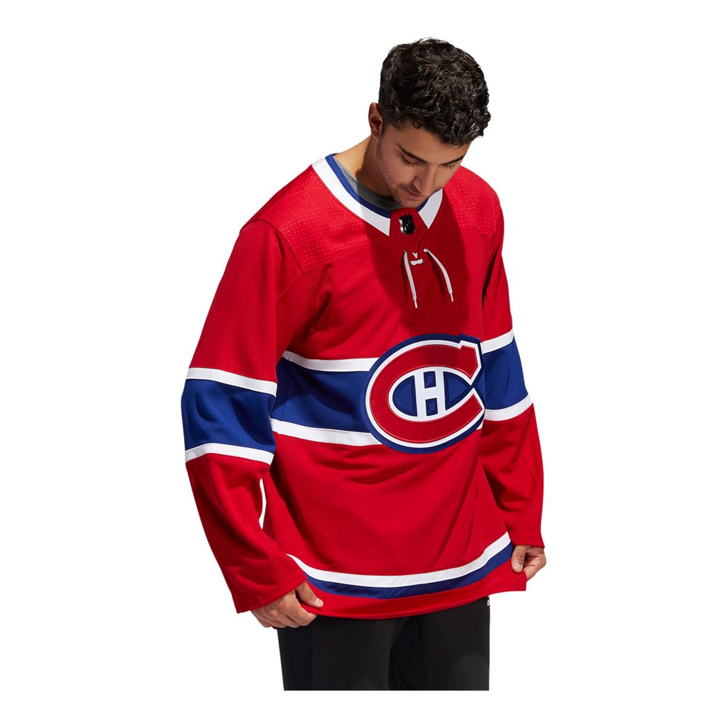 Playing hockey on the road can be tough. Pull on this adidas away jersey, and show your support for the Montreal Canadiens as they work hard to win. The piqué fabric is the same as the players wear. AEROREADY keeps you dry and focused as you gather in your fan cave to watch the game. Made with 100% recycled materials, this product represents just one of adidas's solutions to help end plastic waste.