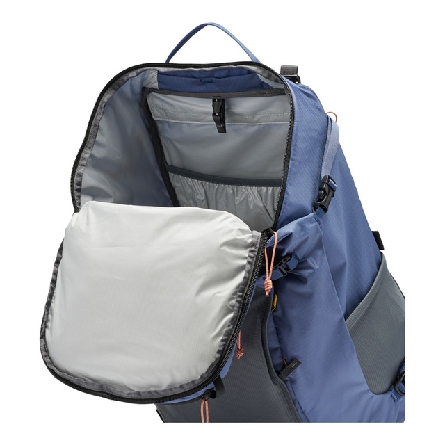 Lightweight and durable, the Mountain Hardwear JMT 35 L Backpack features a recycled 210D ripstop shell and 500D Cordura base. The mesh backpanel, fully padded shoulder straps and hipbelt offer ventilation and support. This Mountain Hardwear backpack has a clamshell-style opening, side compression straps and trekking pole/ice axe loop to enhance functionality.