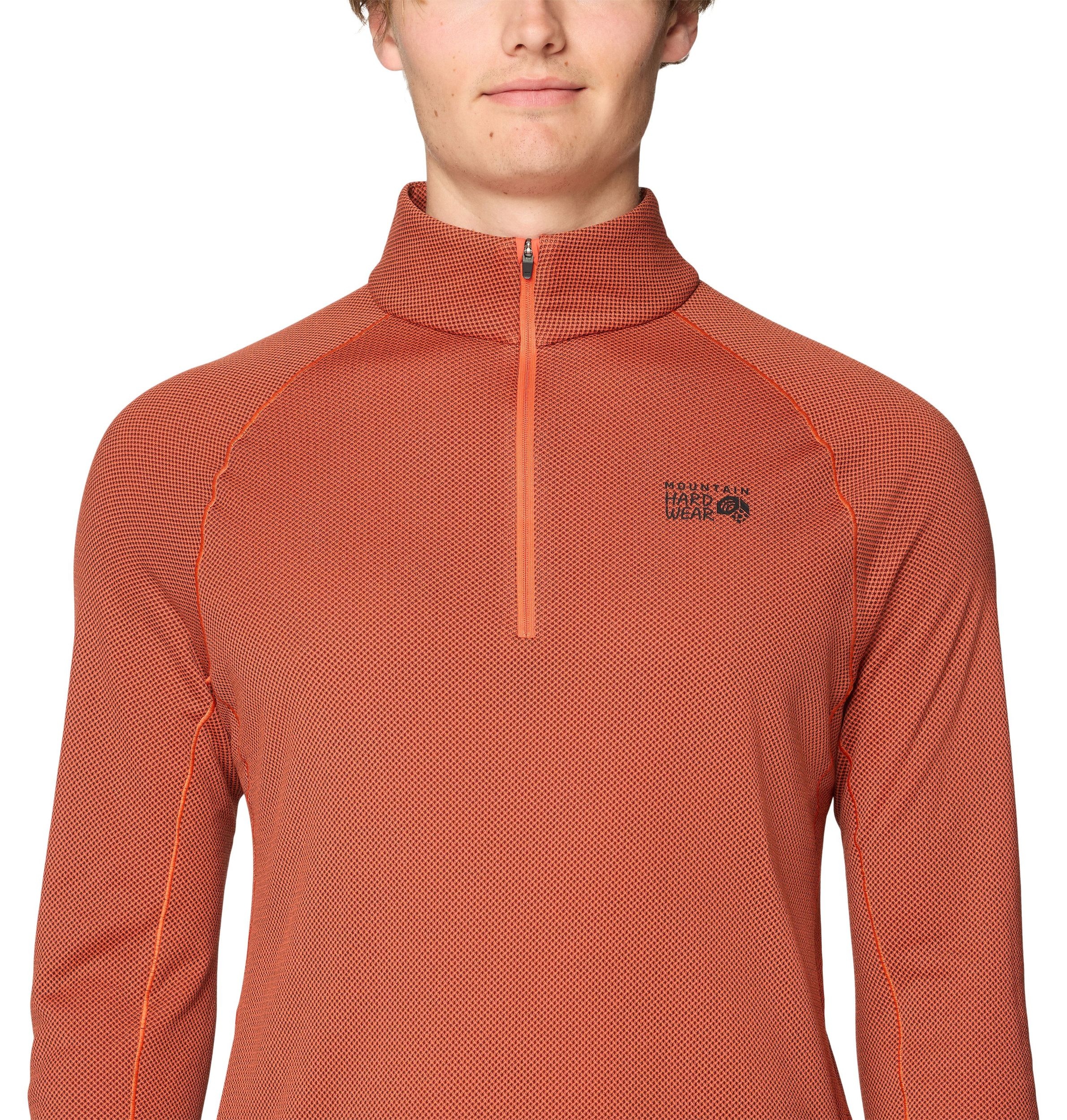 Stay comfortable and warm with the Mountain Hardwear Men's AirMesh™ 1/2 Zip Long Sleeve Top. This versatile top features a unique active mesh construction with hollow, tube-like fibres that efficiently absorb sweat, providing temperature regulation. The breathability and a moisture-wicking properties keep you dry.