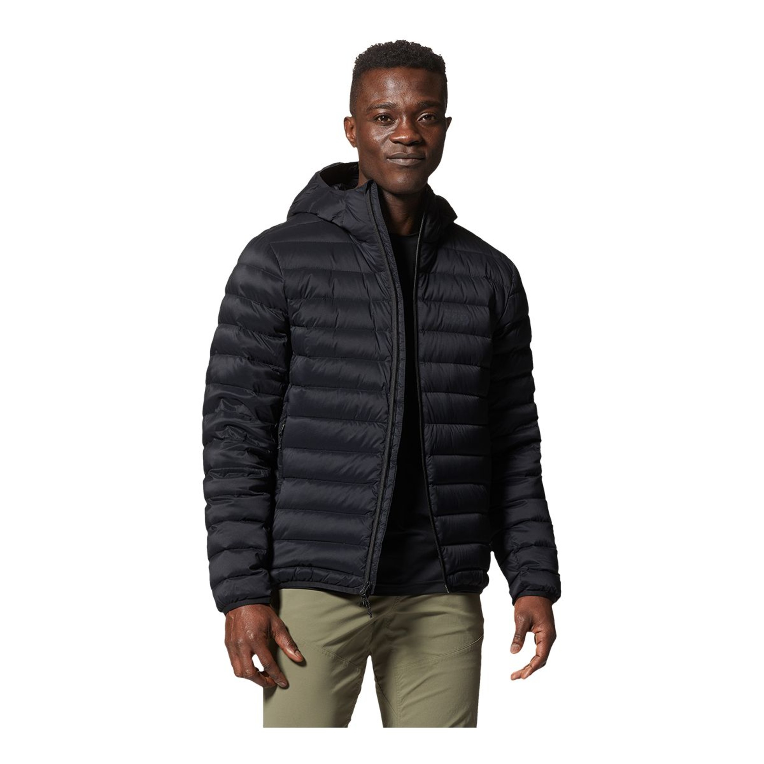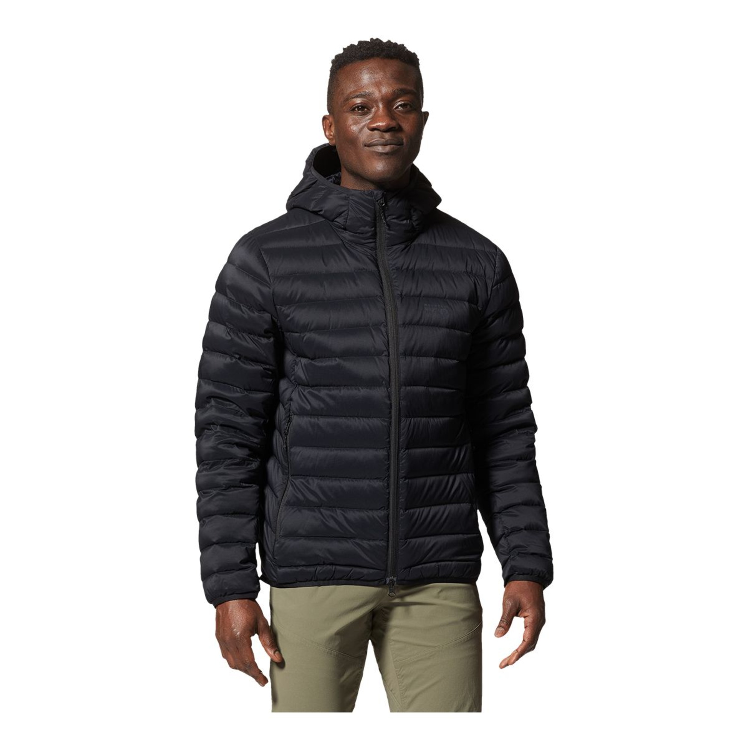 Stay warm without the bulk with the Mountain Hardwear Men's Delaro Down Hoodie. Made for adventurers, it features lightweight 650-fill down insulation and a weather-resistant Pertex® Quantum shell to keep you cozy in all conditions. Designed to be packable, this hoodie stows in its own pocket, making it perfect for travel, hikes, and winter adventures.