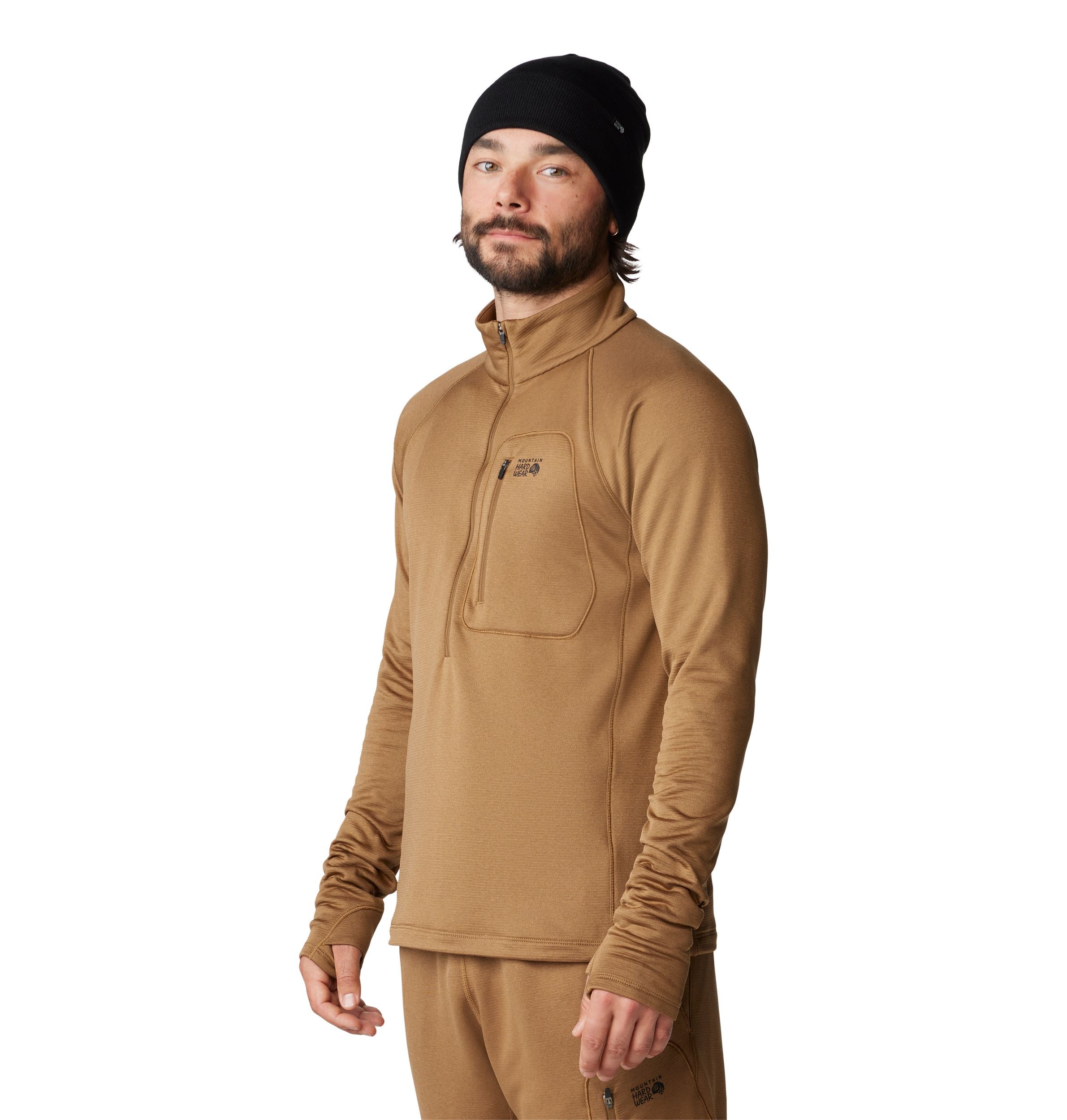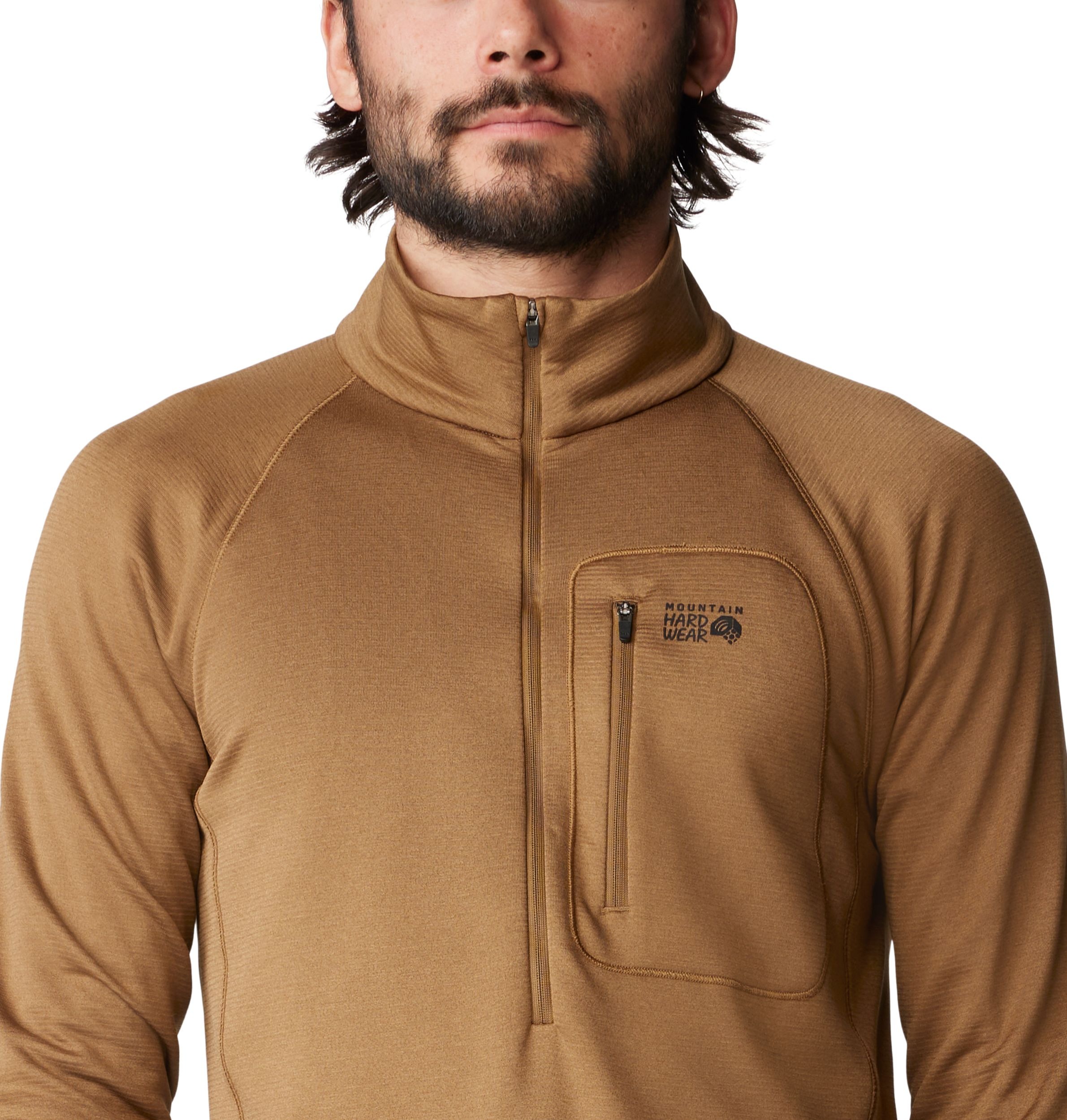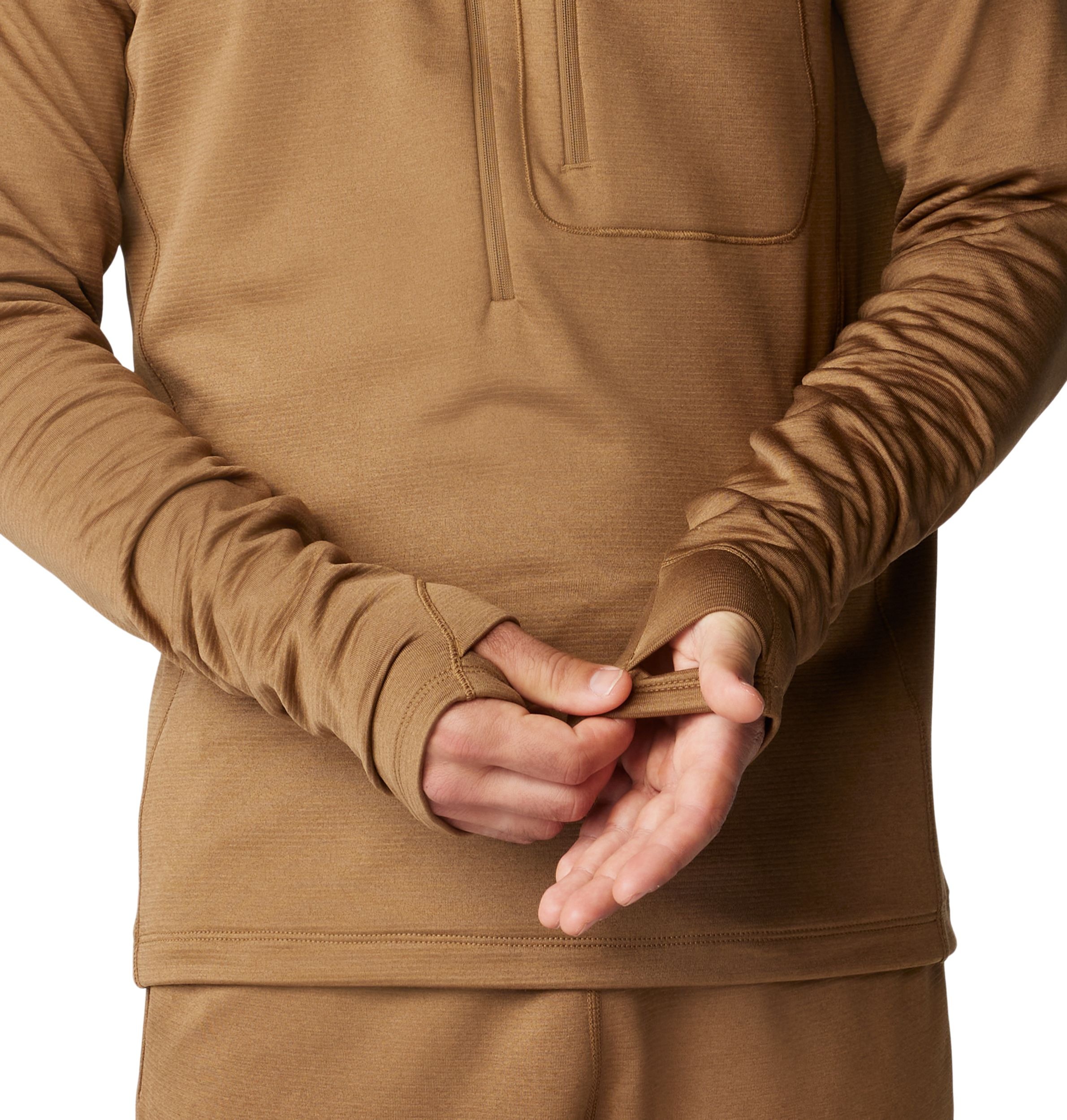 Mountain Hardware asked their closest mountain guides what was missing in their climbing arsenal, and Mountain Hardwear designed the Mountain Hardwear Men's Glacial Trail™ Half Zip Long Sleeve Top—a truly functional layering piece. Its breathable fabric ensures it layers without bulk, resists abrasions, and protects as much of the face as possible without interrupting line of sight to stay warmer.