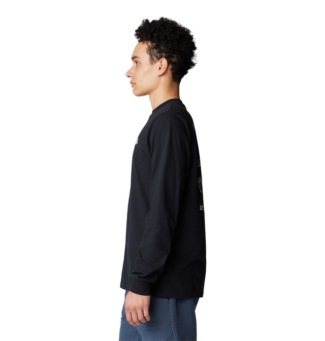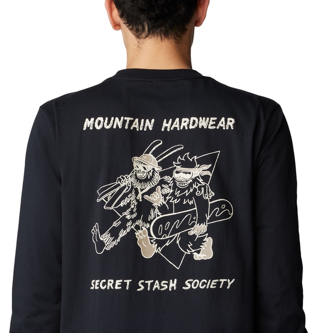 The Mountain Hardwear Men's Secret Stash Long Sleeve T Shirt is your new companion for long powder days on the mountain. With a snowboard graphic on the back and logo on the front, this long sleeve t shirt keeps you in winter sports style.