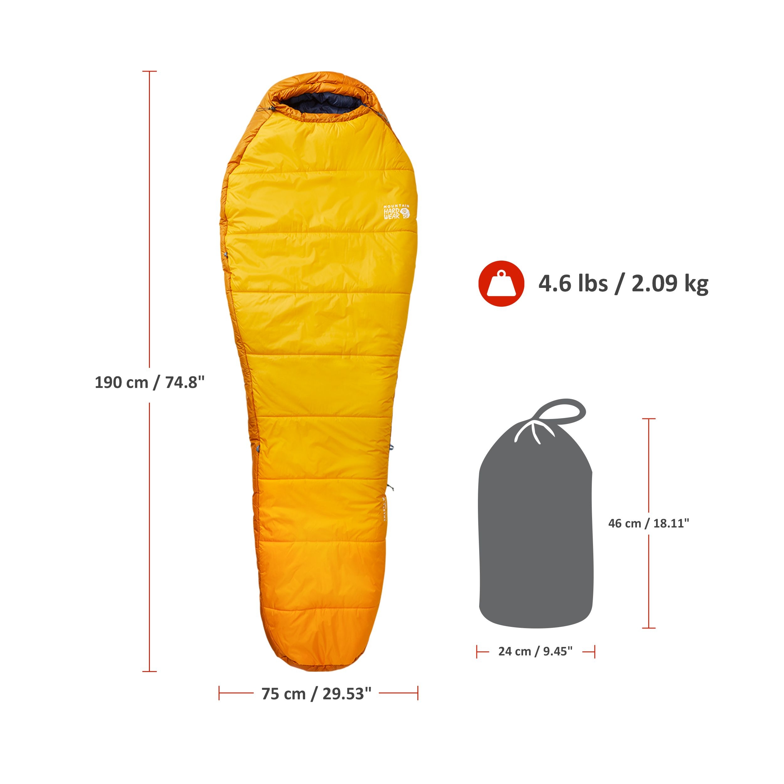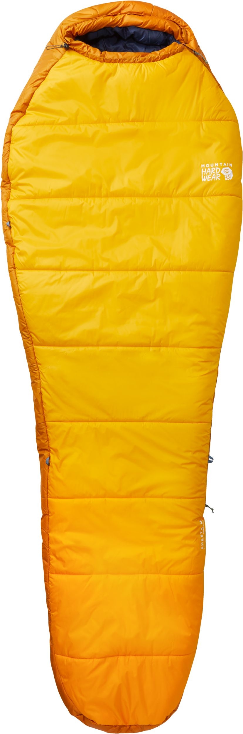 Get your rest in the great outdoors with the Mountain Hardwear Men's Shasta Sleeping Bag. The lightweight 20 denier ripstop fabric and eco-friendly Thermal.Q recycled insulation ensure cozy warmth even when wet. Features include a contoured foot-box, internal stash pocket and reliable, easy-to-use #5 YKK® zipper. This Mountain Hardwear sleeping bag comes with a compression sack and mesh storage bag for easy packing.