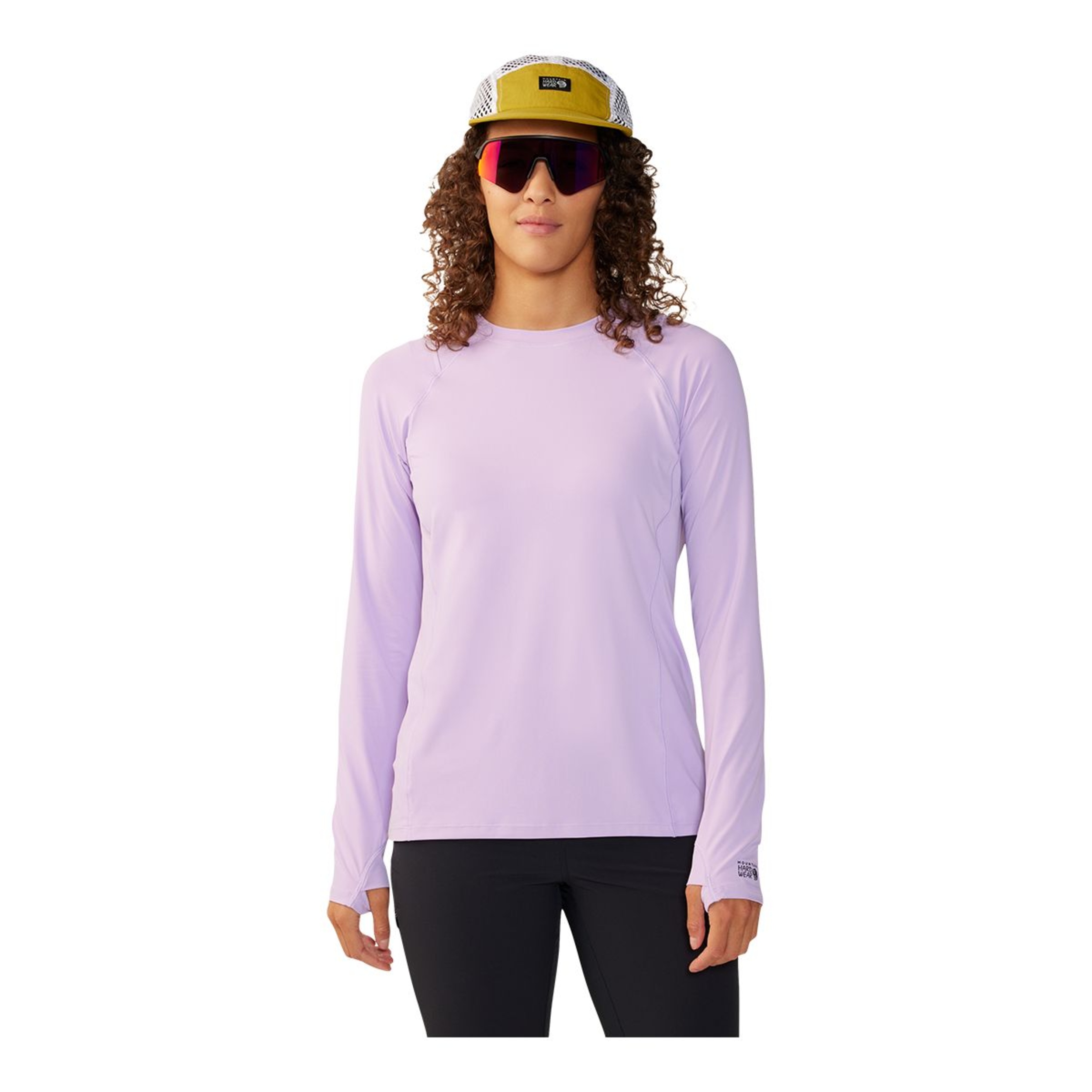 This Mountain Hardwear Women's Crater Lake UPF Shirt is made with UPF 50 treated jersey knit fabric that wicks moisture and dries rapidly. Features include gusseted underarms and low-profile thumbholes. This Mountain Hardwear top has subtle branding with a heat transfer logo at the left hem and a nut logo on the back.
