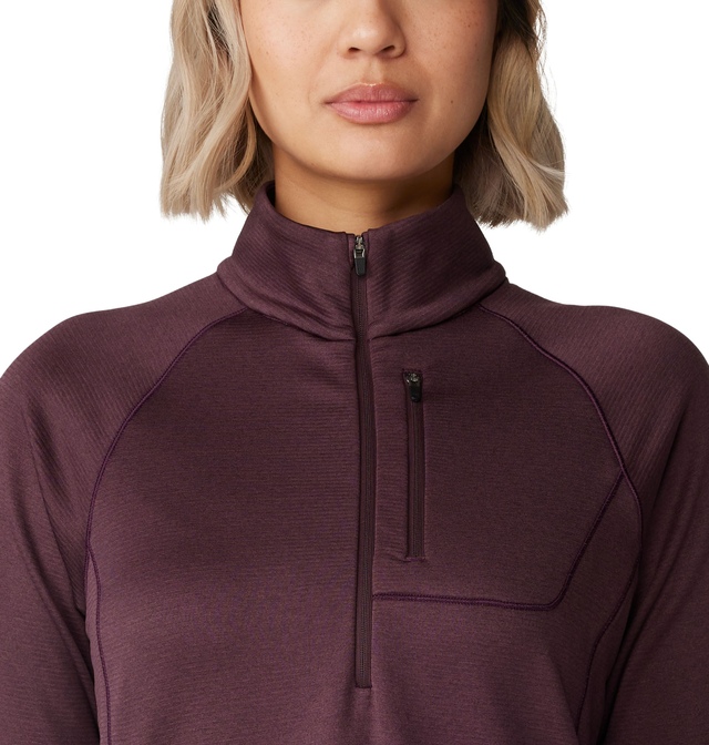 Mountain Hardware asked their closest mountain guides what was missing in their climbing arsenal, and Mountain Hardwear designed the Mountain Hardwear Women's Glacial Trail™ Half Zip Long Sleeve Top—a truly functional layering piece. Its breathable fabric ensures it layers without bulk, resists abrasions, and protects as much of the face as possible without interrupting line of sight to stay warmer.