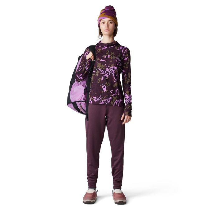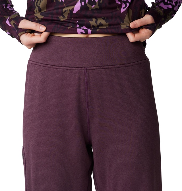 The Mountain Hardwear Women's Glacial Trail™ Jogger Pants offer comfort for outdoor activities and casual wear. They have a warm brushed fleece lining and stretchy fabric for easy movement. The zip thigh pocket keeps essentials secure, and the jogger cuff enhances mobility. These versatile jogger pants are ideal for trails and everyday wear.