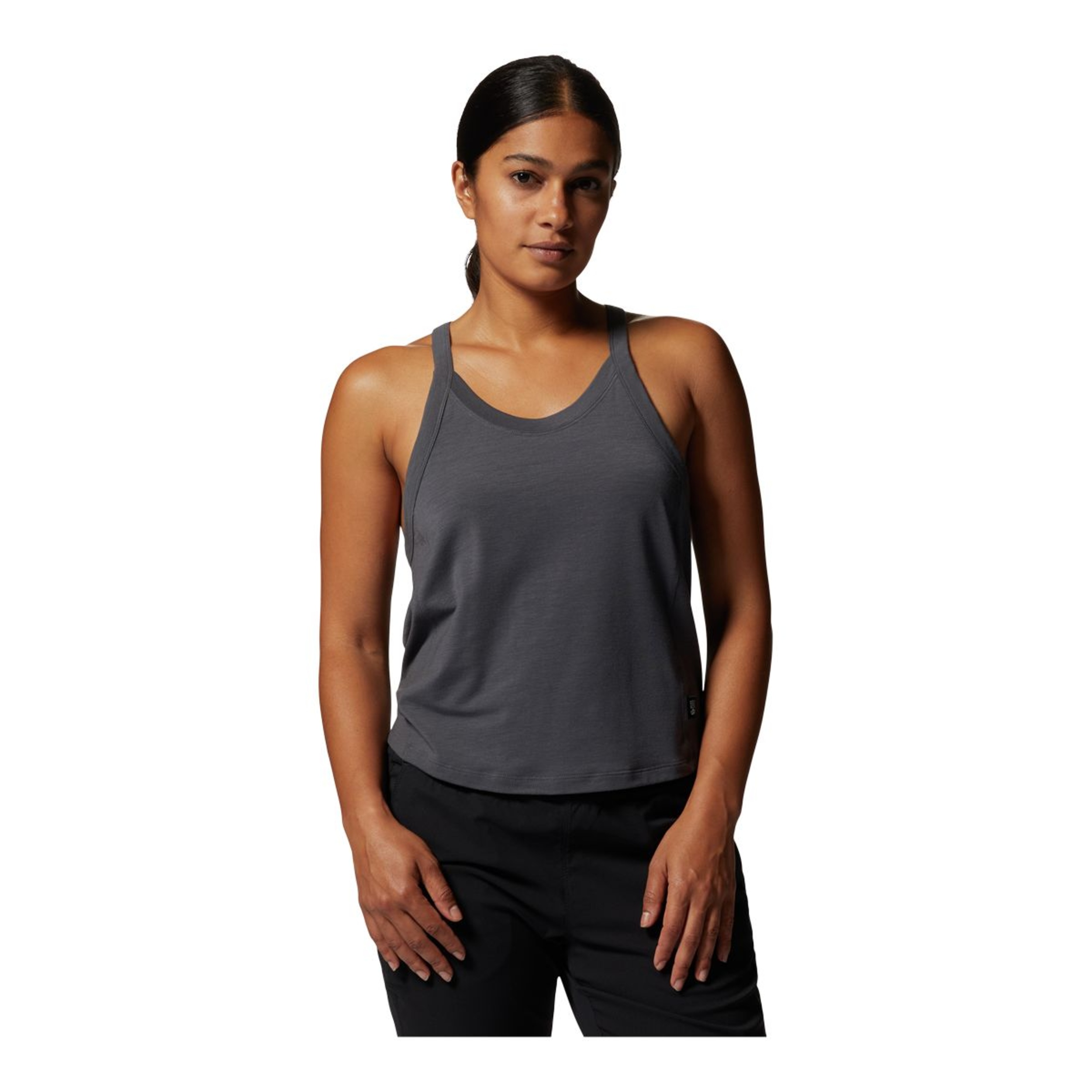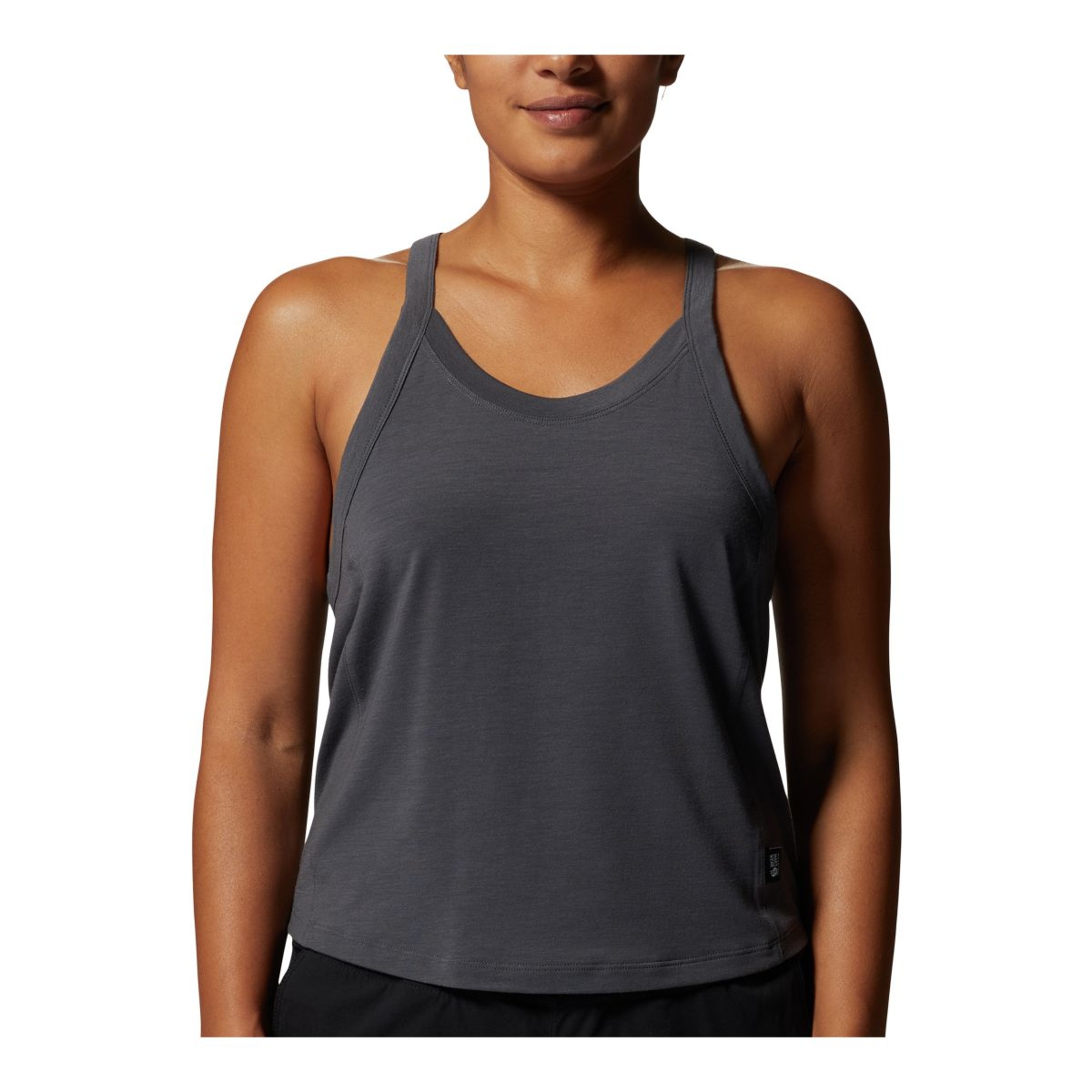 Mountain Hardwear Women's Trek N Go Tank Top is a perfect blend of comfort and performance. This versatile tank top is made from sustainable jersey knit fabric and is ideal for lounging, yoga, or outdoor adventures. It features advanced moisture-wicking technology to keep you cool and dry, while UPF 40 sun protection shields your skin from harmful UV rays. The stretchy material ensures unrestricted movement, and the cropped length with a curved hem provides a flattering fit. Embrace your active lifestyle with the Mountain Hardwear Women's Trek N Go Tank, designed to keep up with you every step of the way.