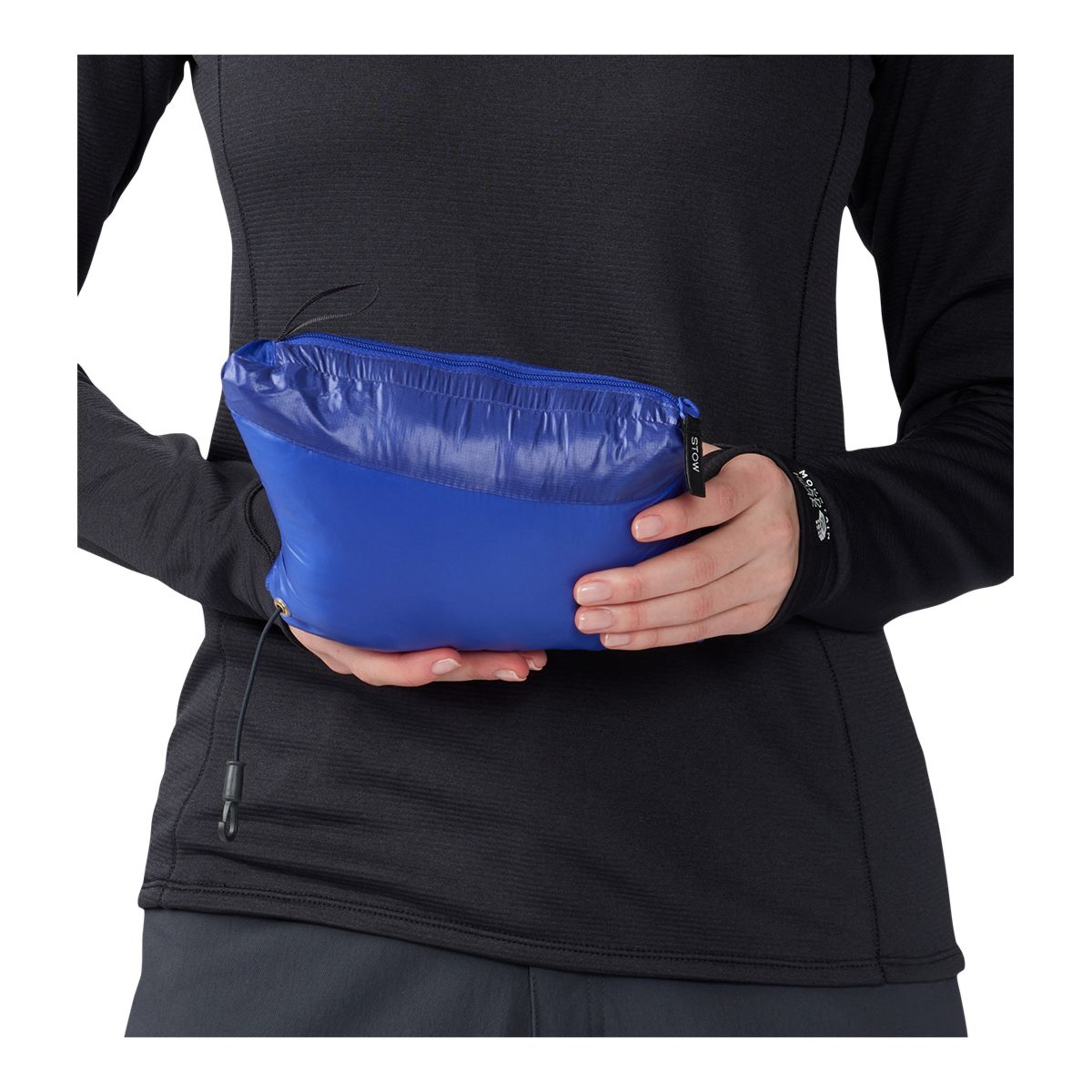 Packs into its own pocket, complete with an internal carabiner clip loop