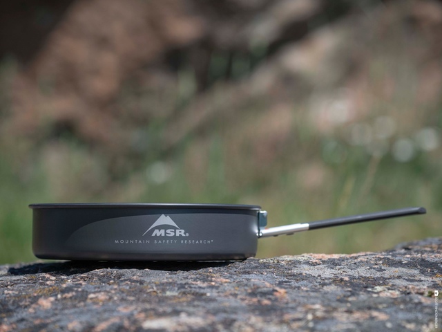 The MSR Ceramic Skillet Pan features a premium Fusion® ceramic nonstick surface, making it an essential piece of camping cookware for backcountry chefs.