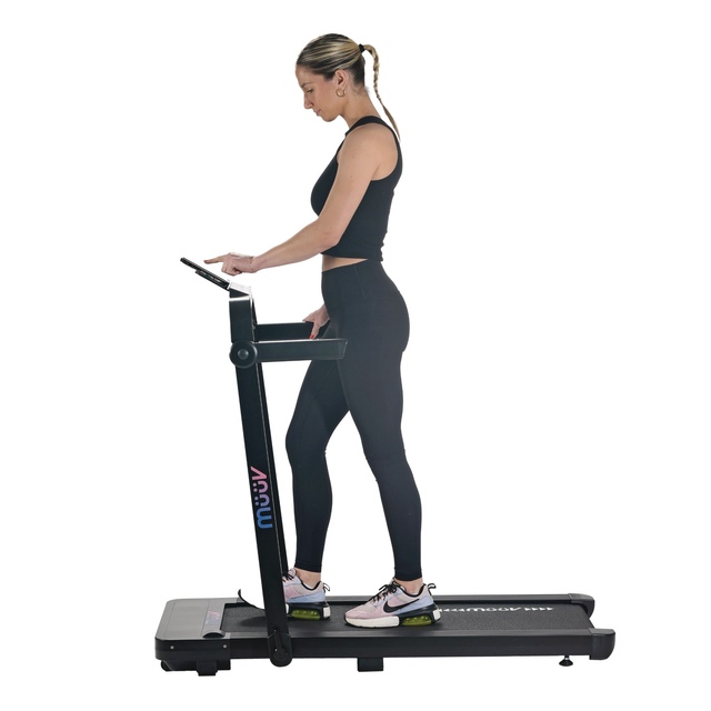 Upgrade your home gym with the smart, easy to use müüv Treadmill. Fully integrated with the müüv app, the treadmill lets you experience personalized smart workouts to get the most out of your equipment. Simply tell müüv how much time you have, what type of workout you want to do, pick your coach, and let müüv create the workout. Easily start, stop, and change your speed with the müüv app. During your workout, your coach will let you know when the interval is going to change and will automatically adjust the speed of the treadmill. You can even pick your favourite iHeart Radio playlist or podcast in the app.