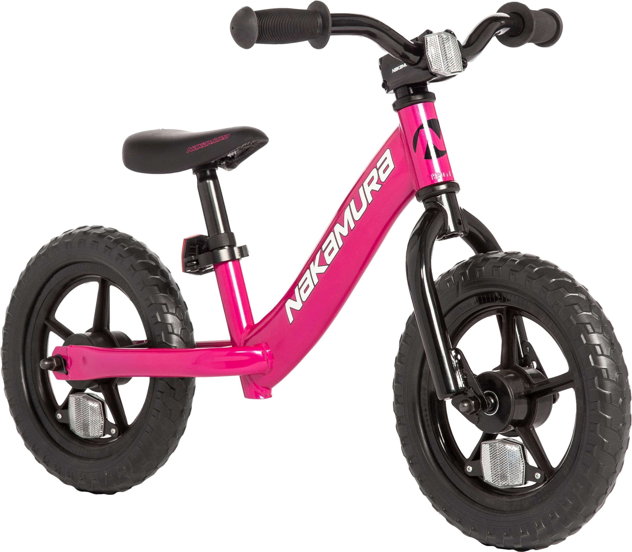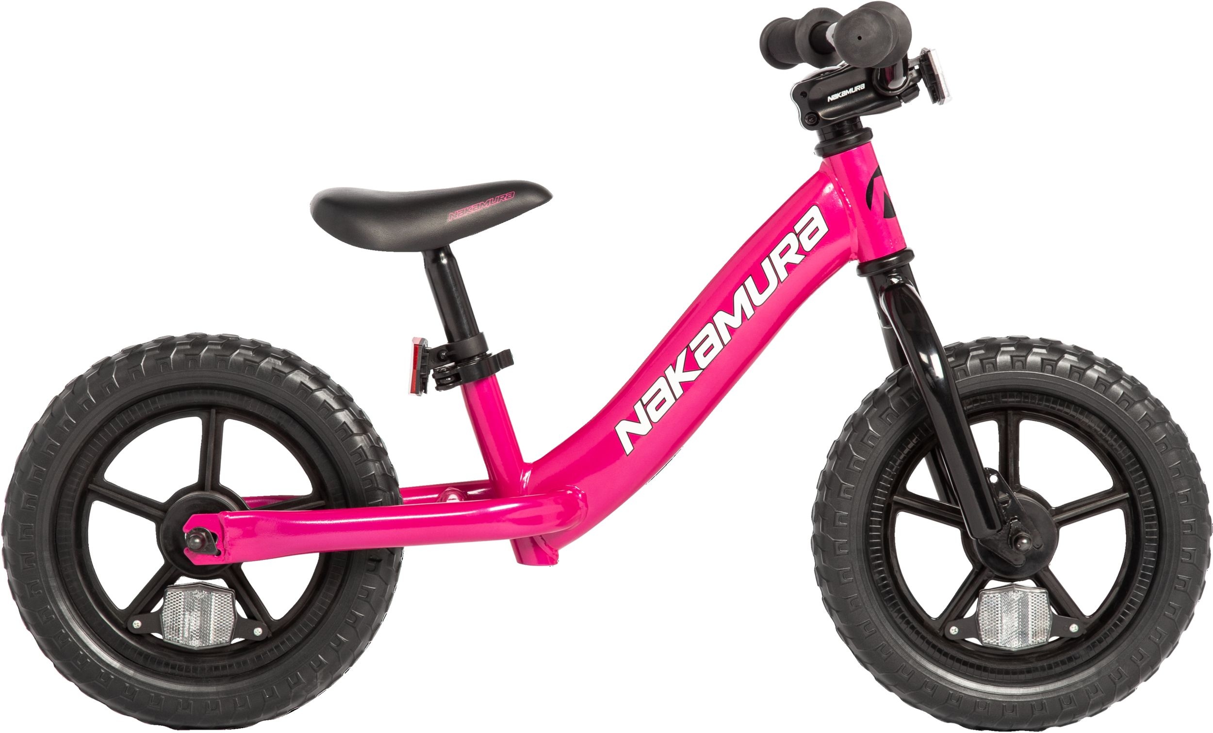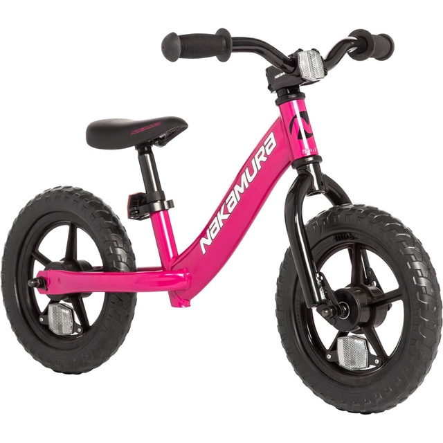 The 12" wheeled Nakamura Balance is a pedal-less bike designed to introduce children to the fundamentals of bike riding. The child rider uses his/her feet to generate movement and to provide balance.