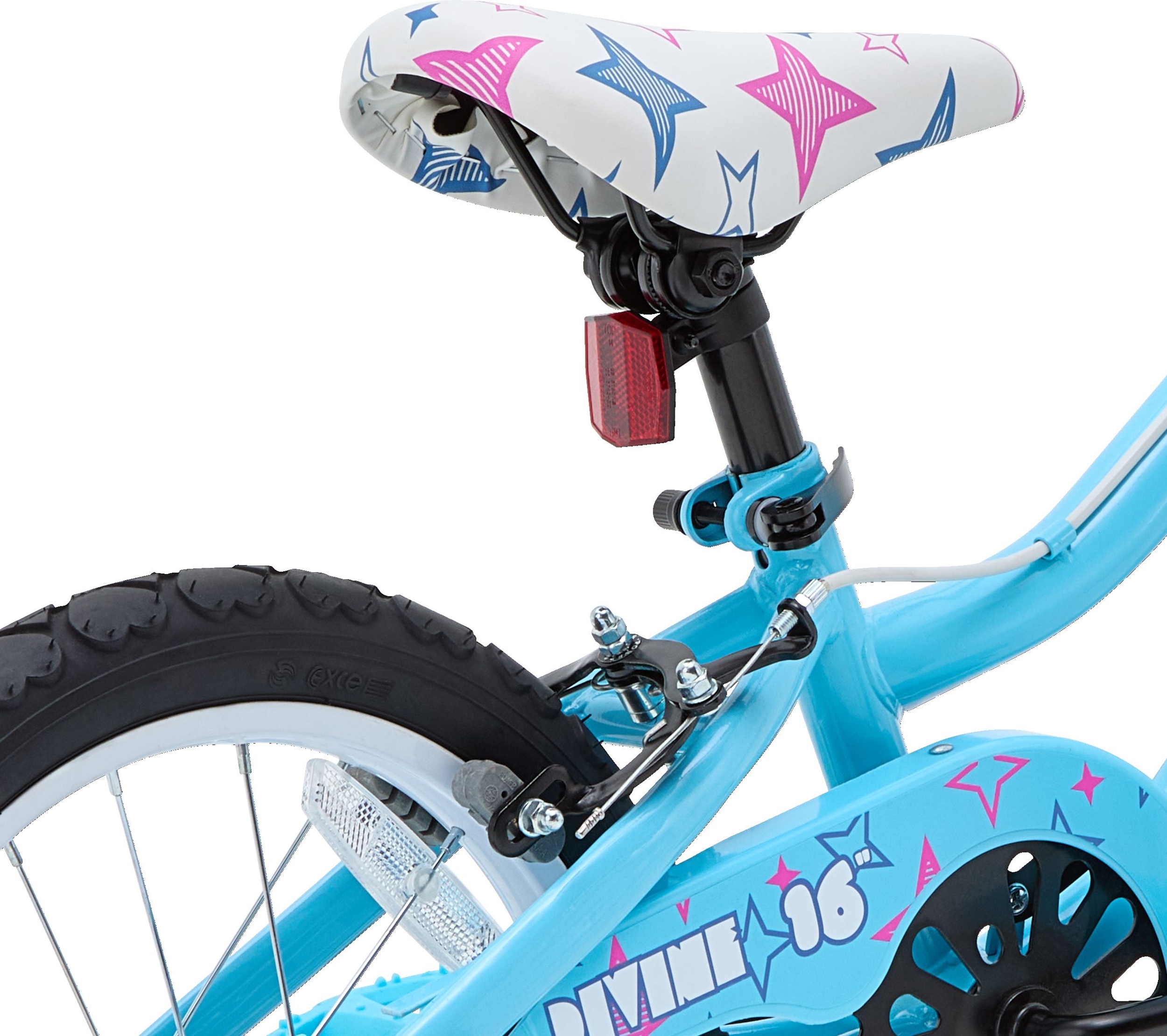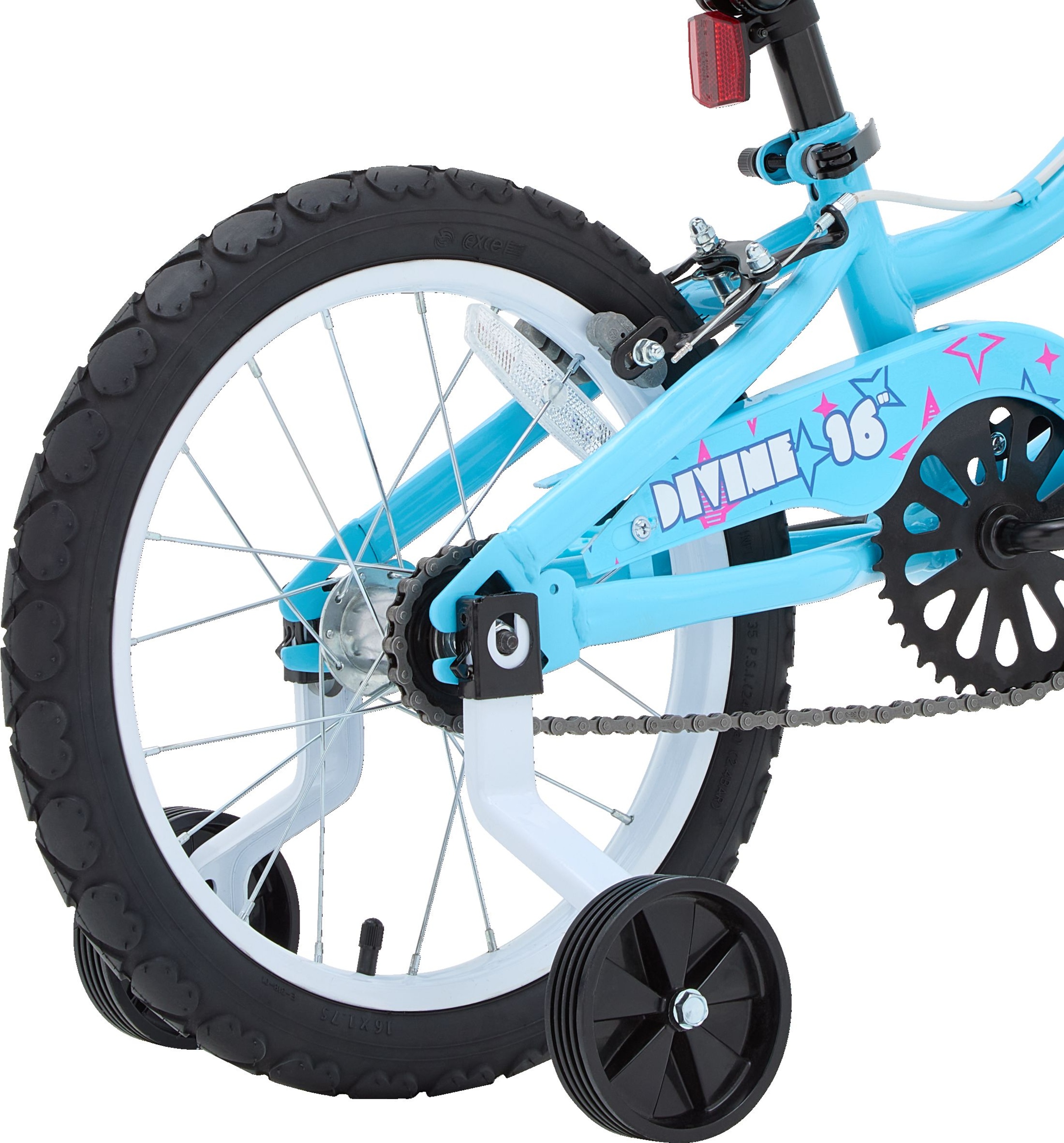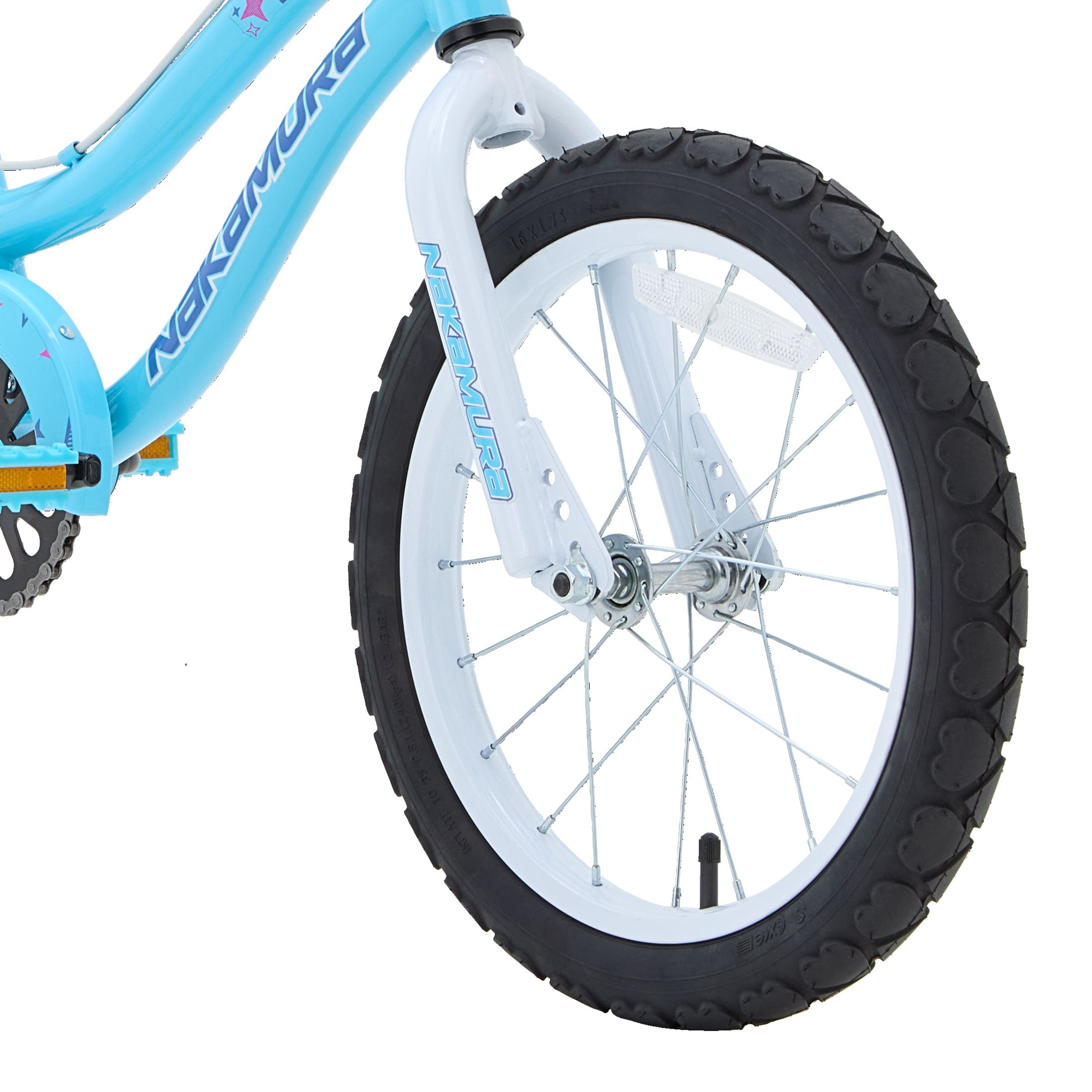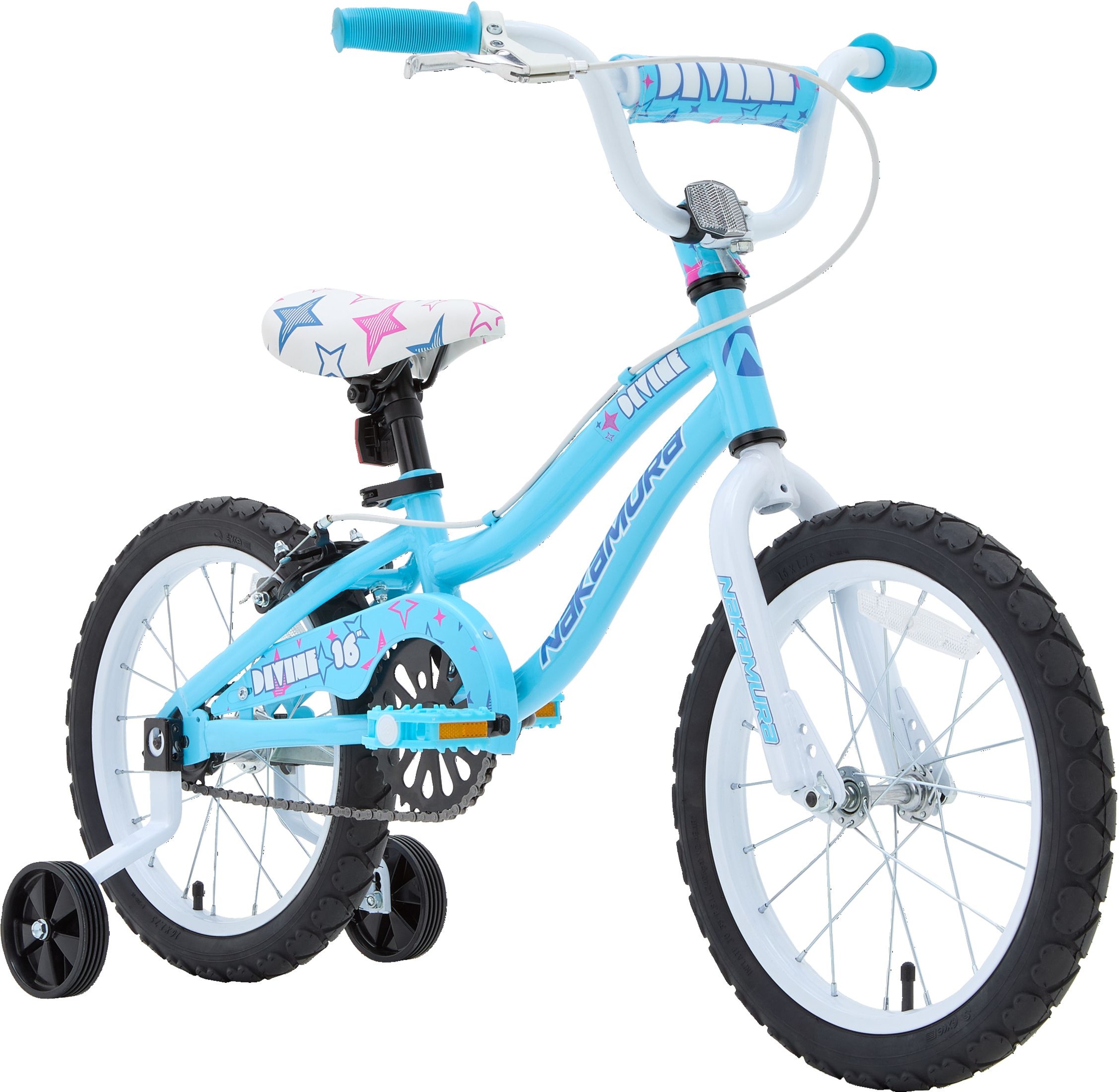 The Nakamura Divine 16" junior bike is perfect for cruising around the neighborhood and comes equipped with removable training wheels. When your child is ready to try a two-wheeler, the toolless training wheels are easily removed by pressing two buttons and sliding the wheels out from the mount bracket. If your child is feeling a little less confident simply reverse the procedure and the training wheels are back on until they are ready to try again.