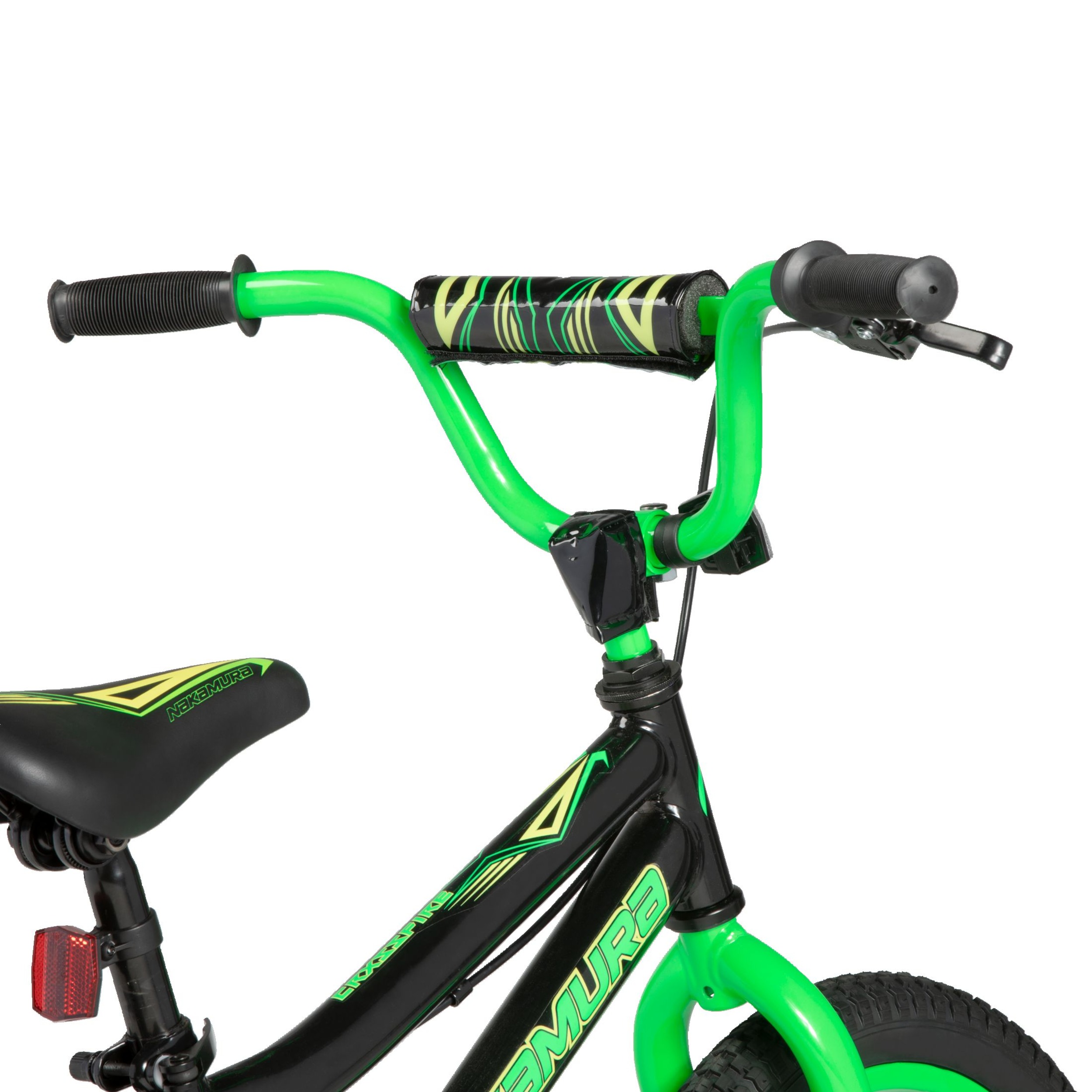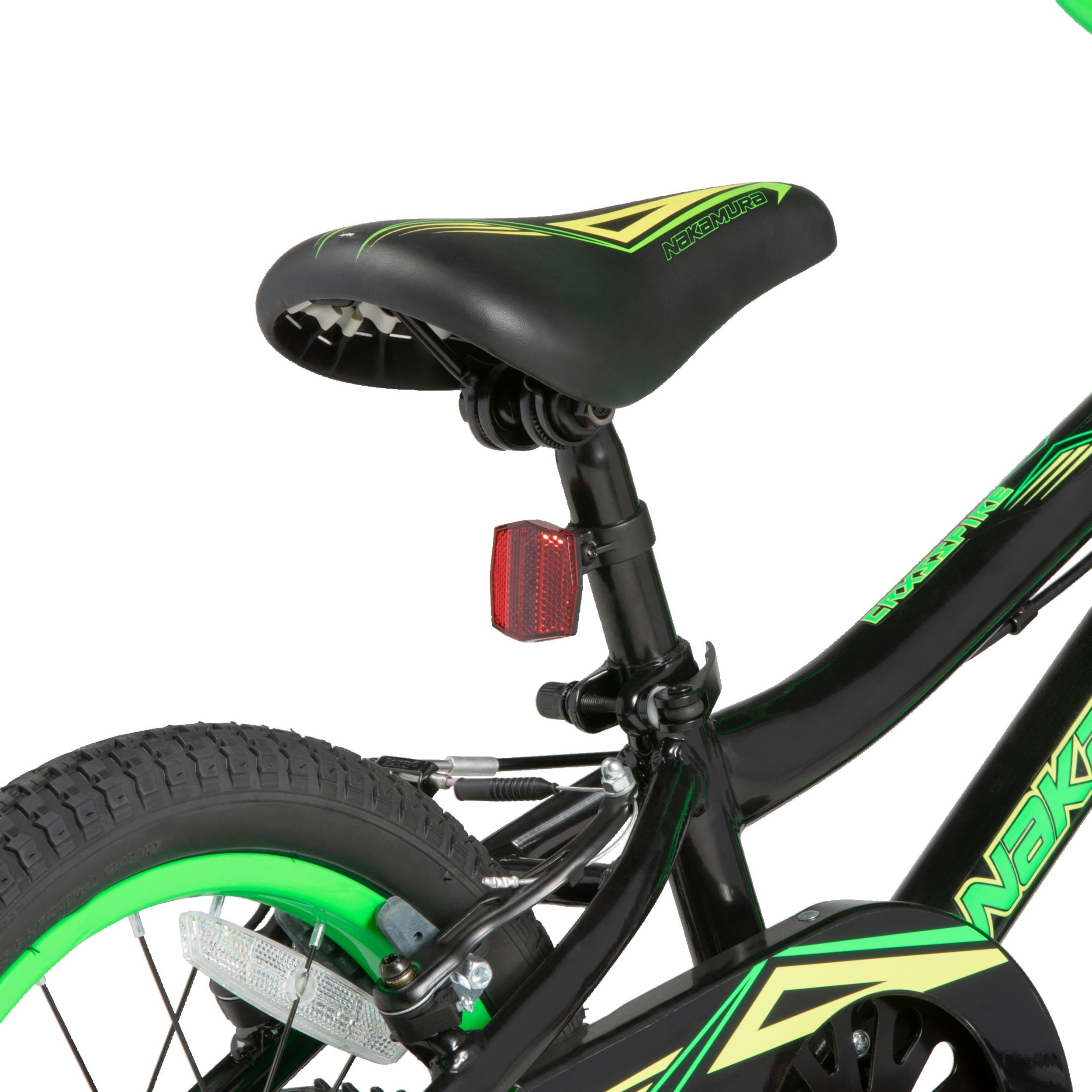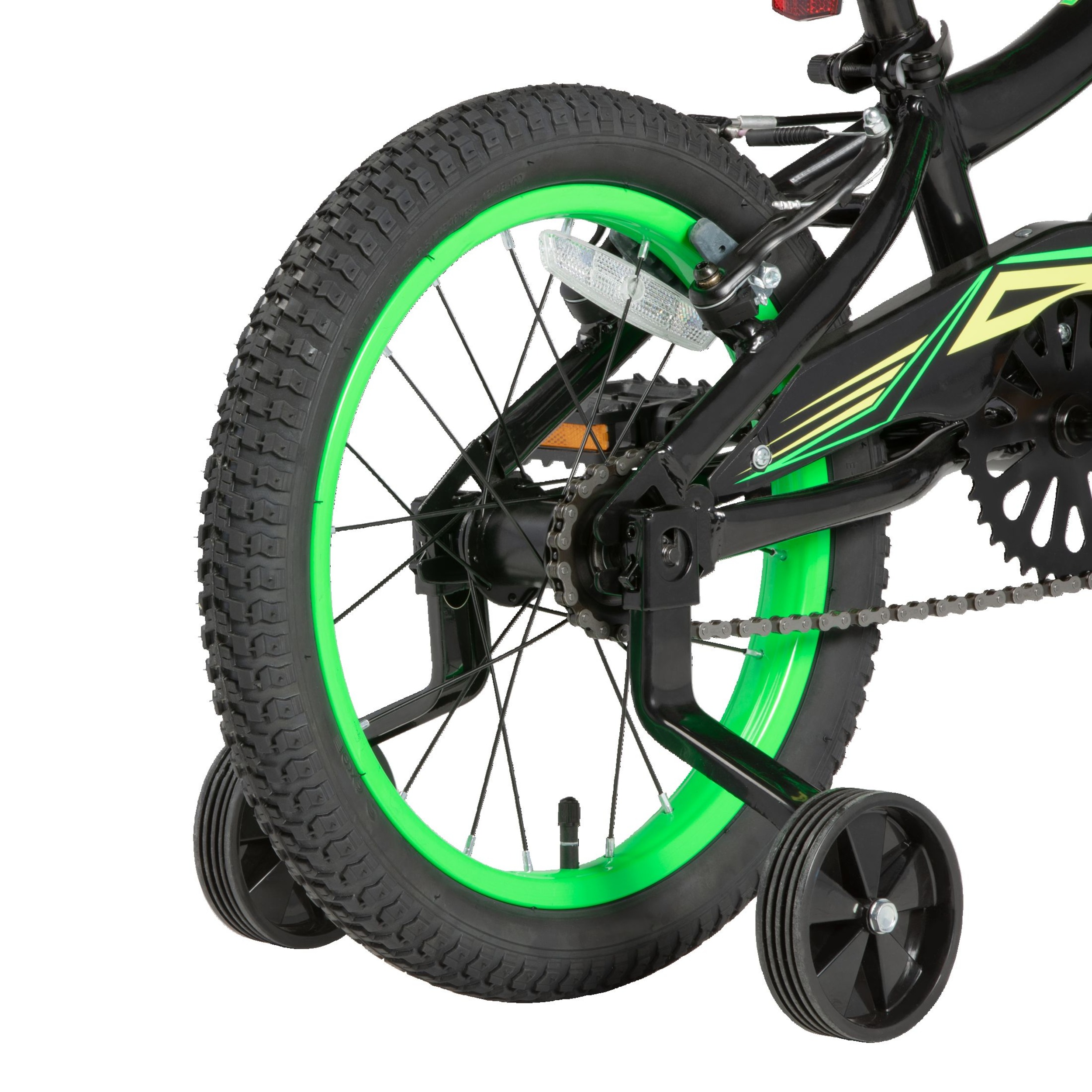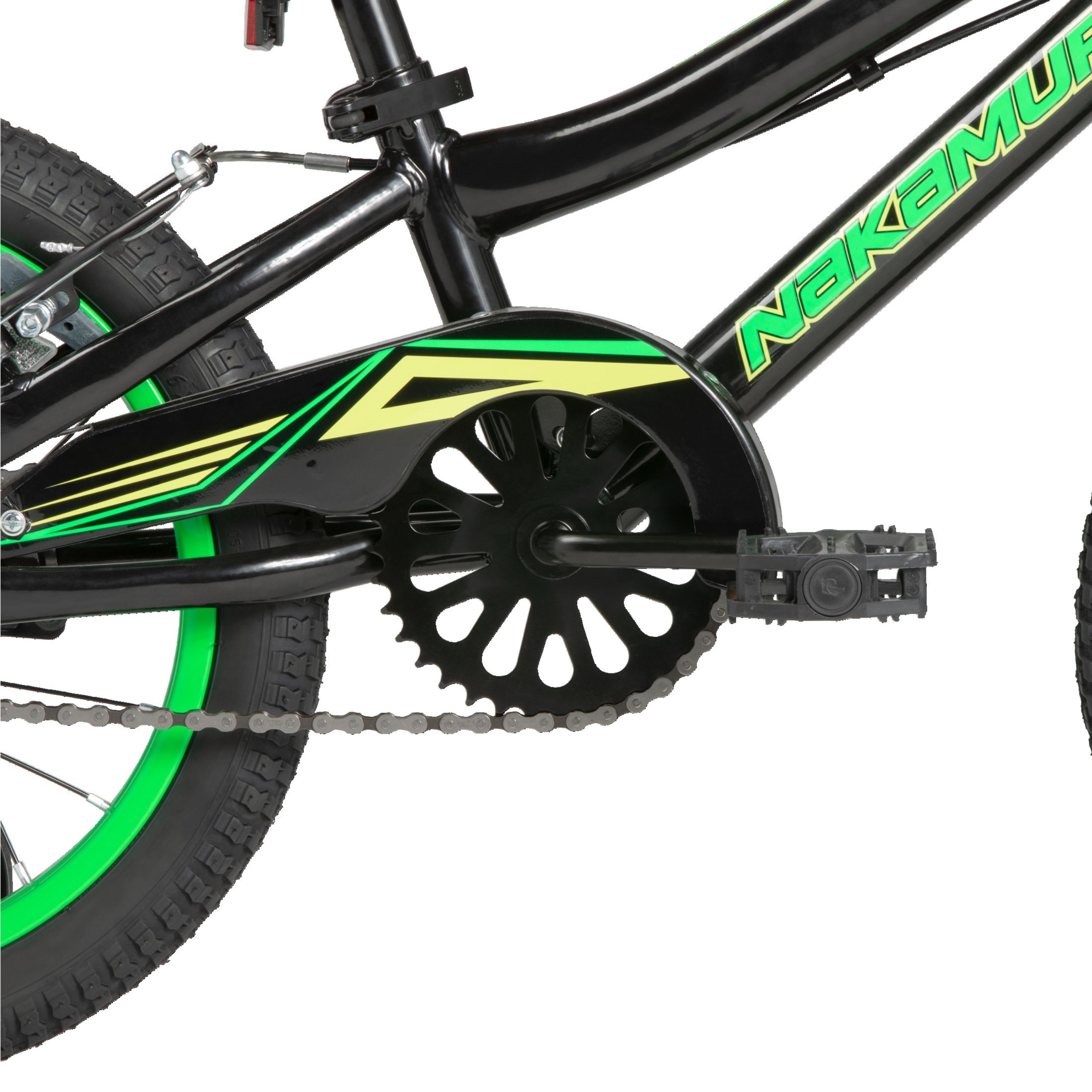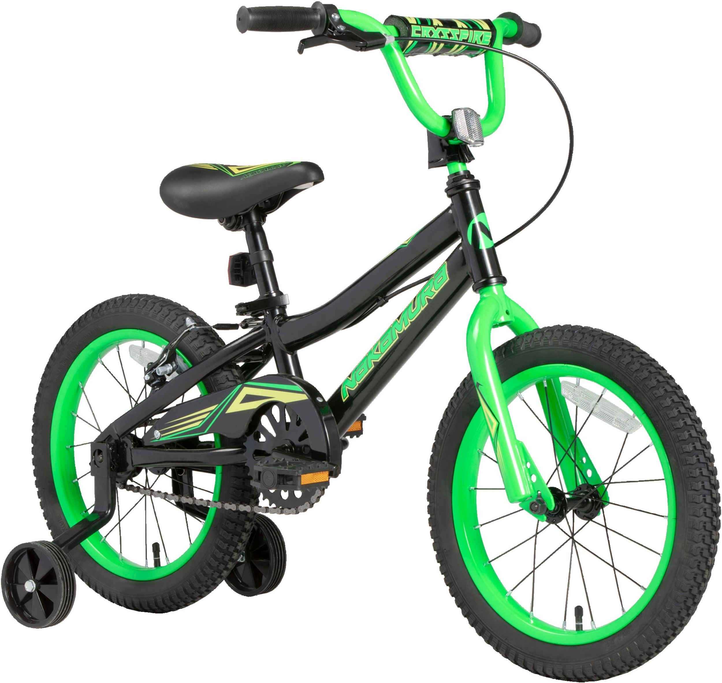 The 16" wheeled Nakamura Crxssfiire comes equipped with toolless removable training wheels. When the child is ready to try riding a two-wheeler the training wheels can be easily removed by depressing two buttons and sliding them out from the mounting bracket without the use of any tools. If the child is feeling a little less confident simply reverse the procedure and the training wheels are back on until they are ready to try again.