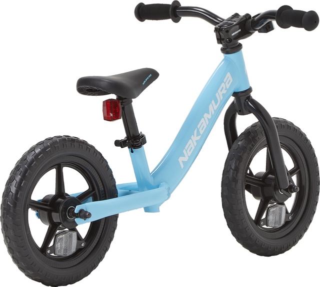 The Nakamura Pep 12" kids' balance bike is a pedal-less bike designed to introduce children to the fundamentals of bike riding. On this playful bike, kids use their feet to generate movement and balance.
