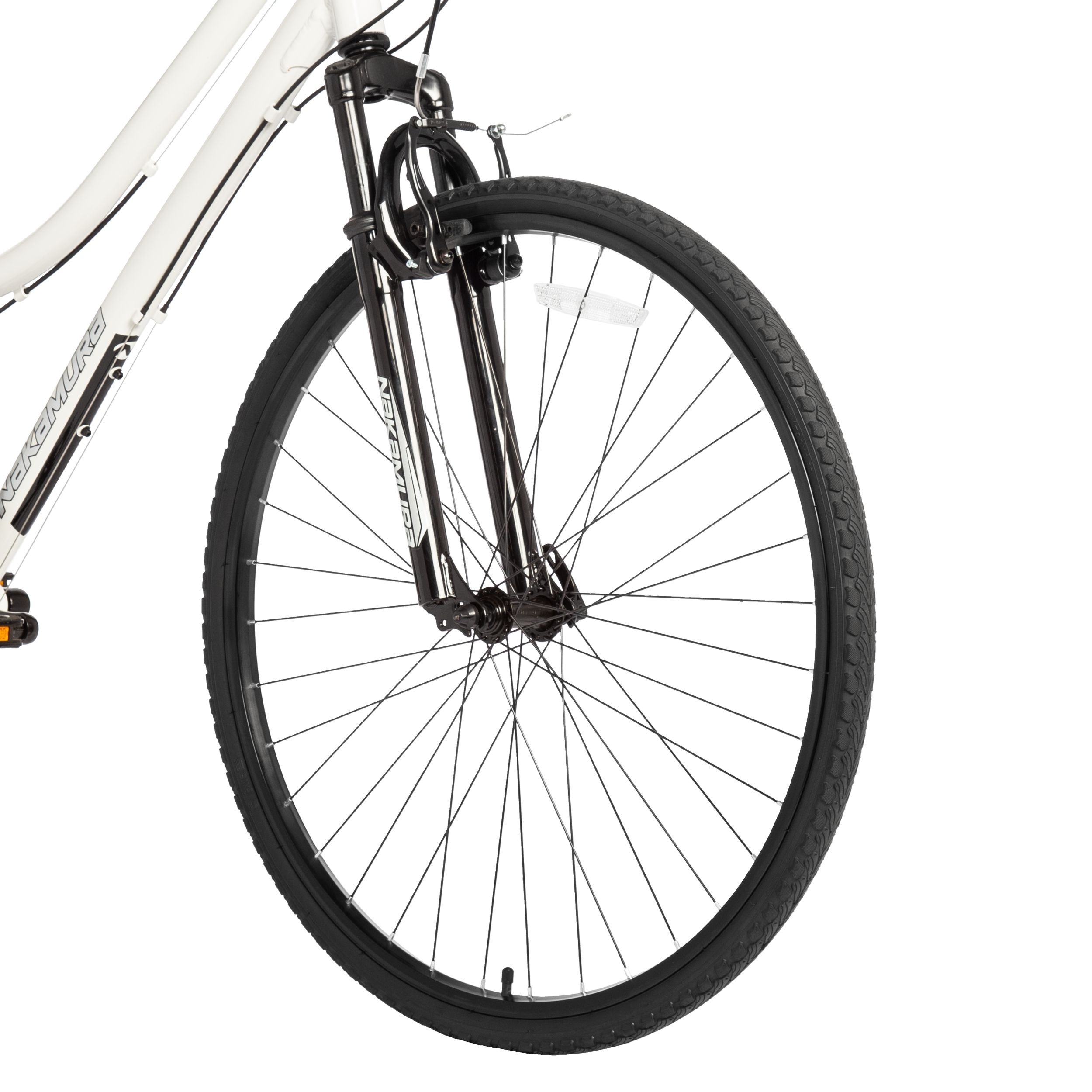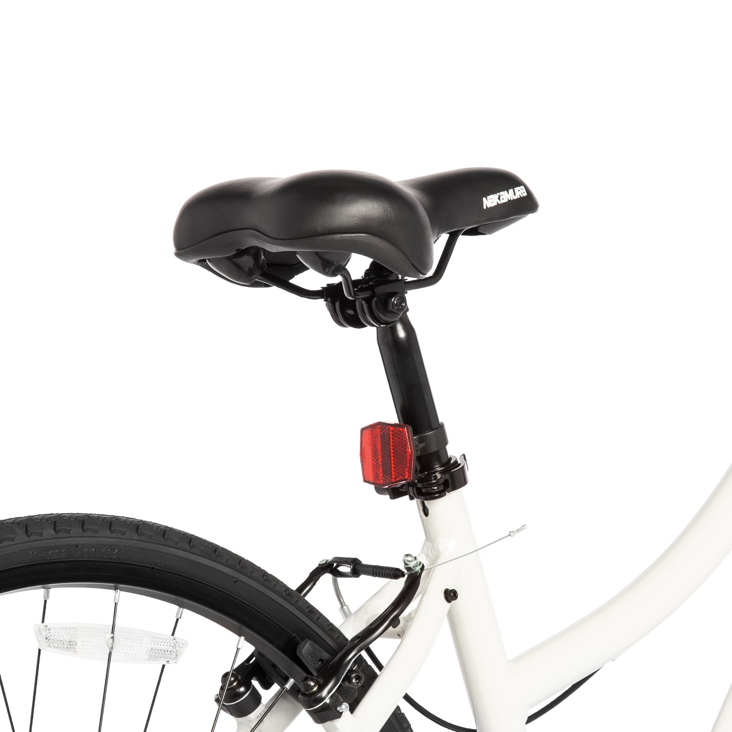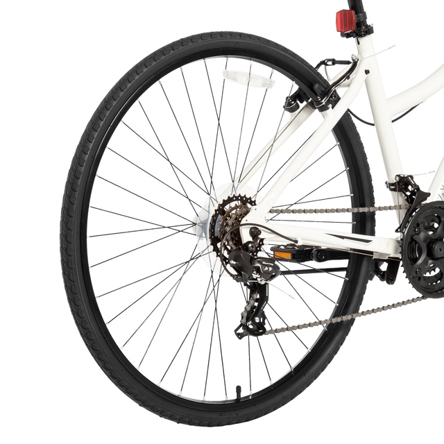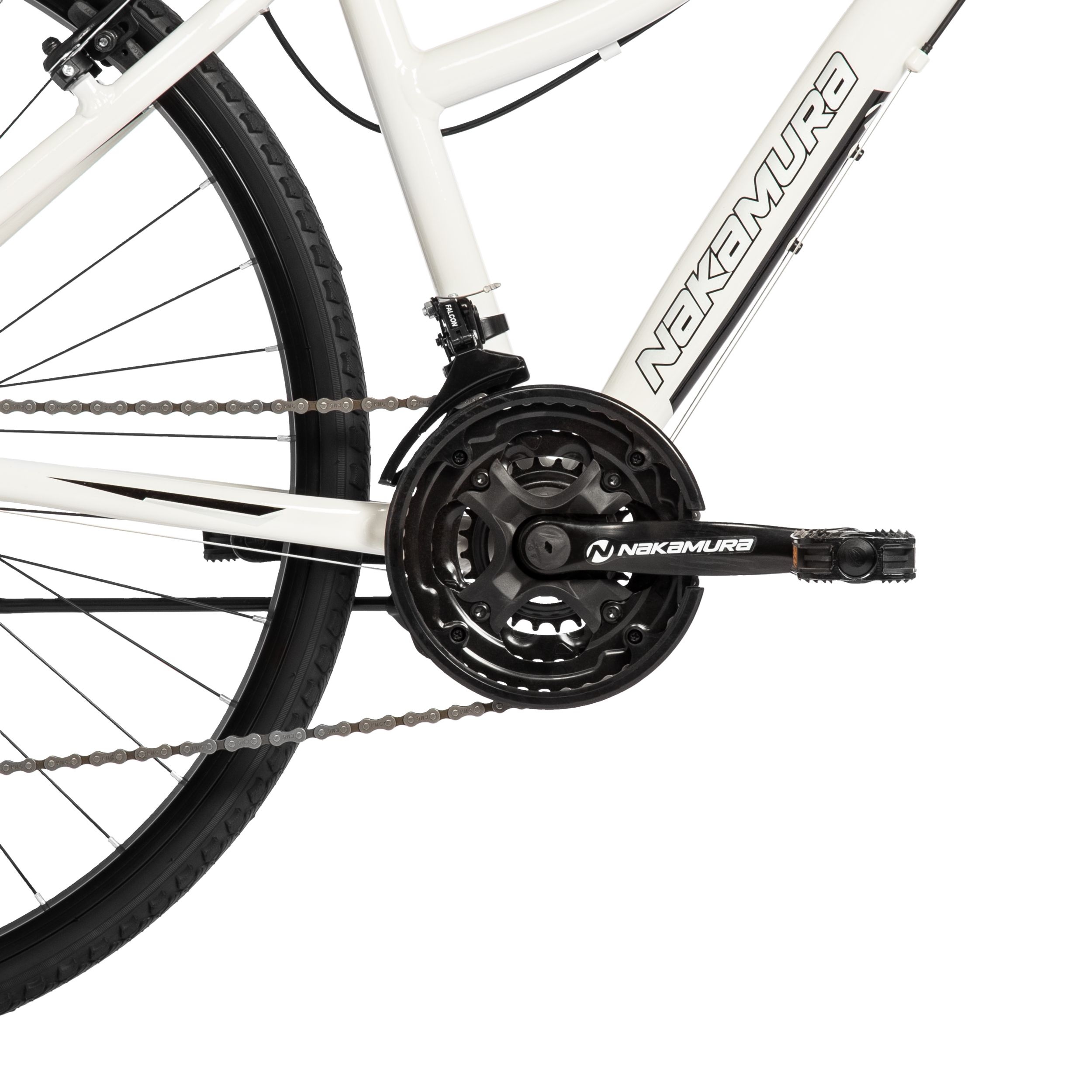 The Nakamura Women's Royal 700C Stepthrough Hybrid Bike is well suited for everyday riding. The lightweight aluminum frame, quality components, and 18-speed drivetrain provide an efficient ride that is great for navigating urban terrain. A beautiful pearlescent silver and mint-green paint job will ensure you’re looking your best while out in the sun.