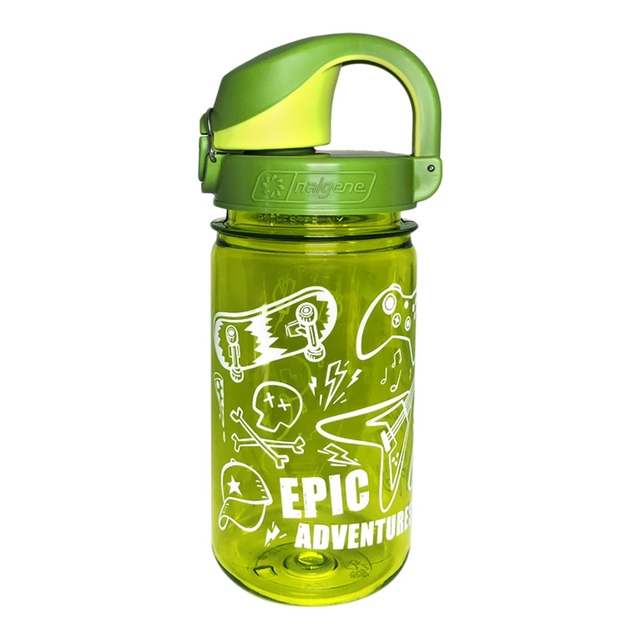 The Nalgene Kids' On-The-Fly 12 oz Water Bottle is designed for convenient hydration for your little ones. This BPA-free bottle features a leak-proof spout and a locking bail to prevent spills. Made in the USA, it withstands drops and tumbles, making it perfect for active kids. The Nalgene water bottle is also dishwasher-safe for easy cleaning.