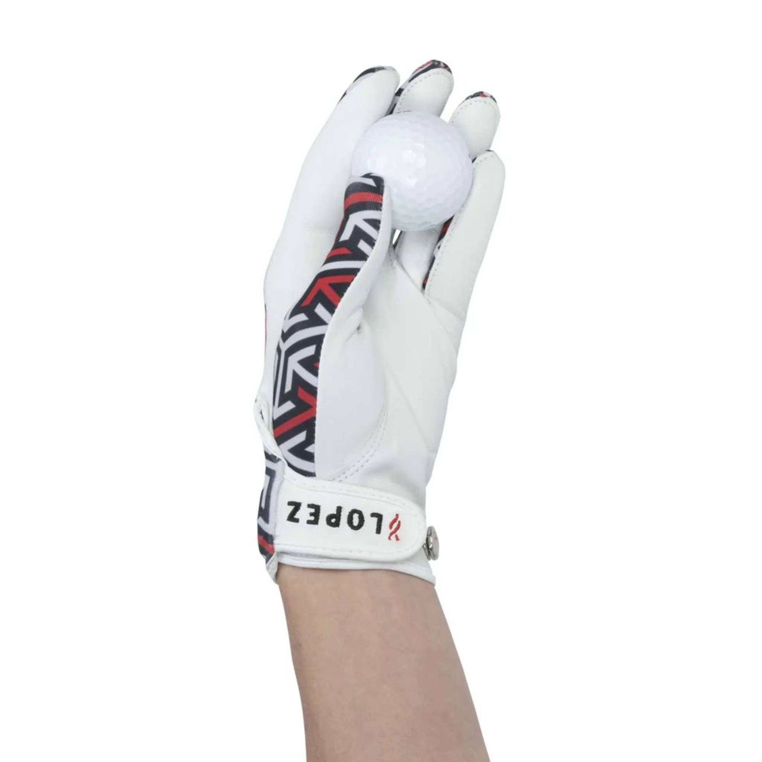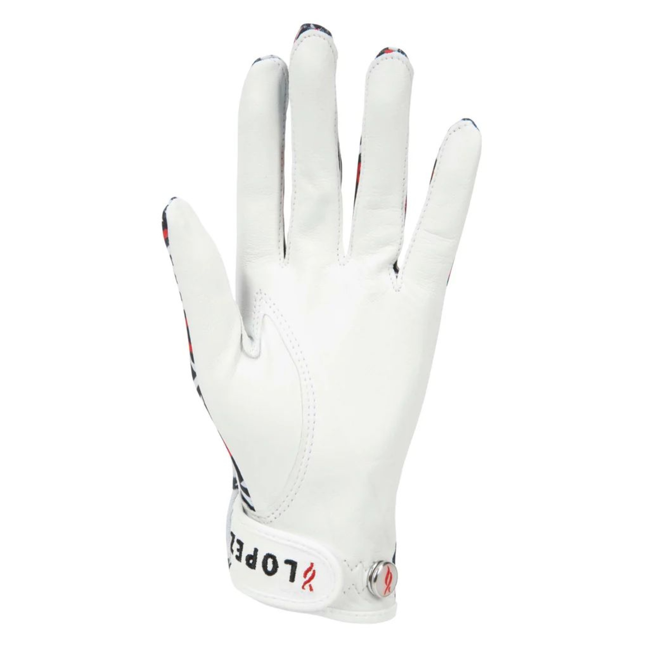Take hold of your new records with style and poise in the Nancy Lopez Half Finger Beauty Golf Glove. This sports glove is made with a lightweight, cool comfort stretch Spandex that allows the skin to stay cool and dry, for ultimate breathability and comfort. Its soft, premium sheepskin Cabretta leather palm ensures a soft, comfortable feel and a consistent, durable grip with every swing. The UV 50+ sun protection fabrics provide the ultimate coverage and protection from the sun’s harmful UV rays out on the course. Available in a range of vibrant colours and signature prints, this glove tailors to your game performance. Left hand gloves are for right-handed golfers. Right hand gloves are for left-handed golfers.