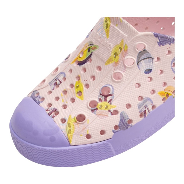 As part of our limited-edition Star Wars collection, these Native Shoes Toddler Kids' Jefferson Star Wars Mando All Over Print Lightweight Slip On Shoes are for the little Jedis! Specially designed with lightweight EVA material, these slip on shoes are easy to clean and resistant to odors. Featuring all-over perforations, your child's feet stay cool and dry. With a rubber rand for added durability, these lightweight shoes are perfect for any adventure in this galaxy and beyond.