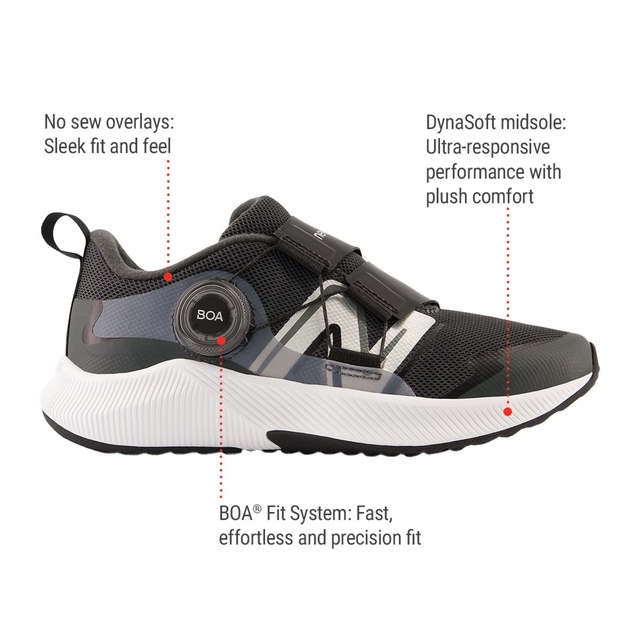 Ideal for trend setters in the making, the New Balance DynaSoft Reveal v4 BOA® features a sleek, modern upper for a fast look that's a cut above the average kids' sneaker. Made for comfort as much as style, these running shoes include a DynaSoft midsole for plush underfoot comfort and a BOA® Fit System for a locked-in fit.