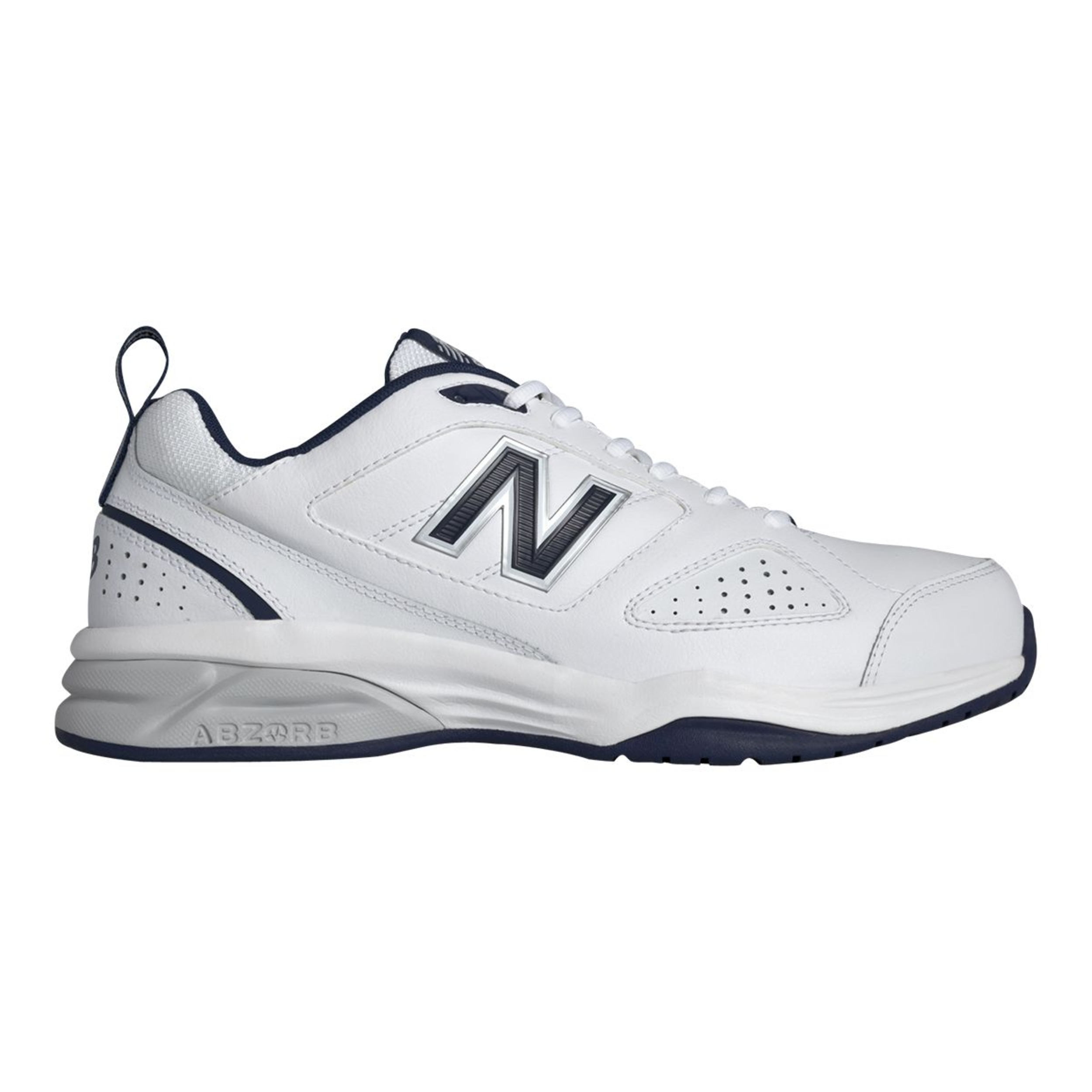 The New Balance Men's 623v3 4E Extra Wide Training Shoes provide superior comfort and durability with an extra wide 4E width. Designed for running and training, these cushioned shoes feature a suede upper for lasting wear. The EVA foam footbed and injection-molded EVA midsole of these training shoes deliver firm yet flexible cushioning to absorb impact. An internal shank enhances stability, while the non-marking outsole ensures steady traction.