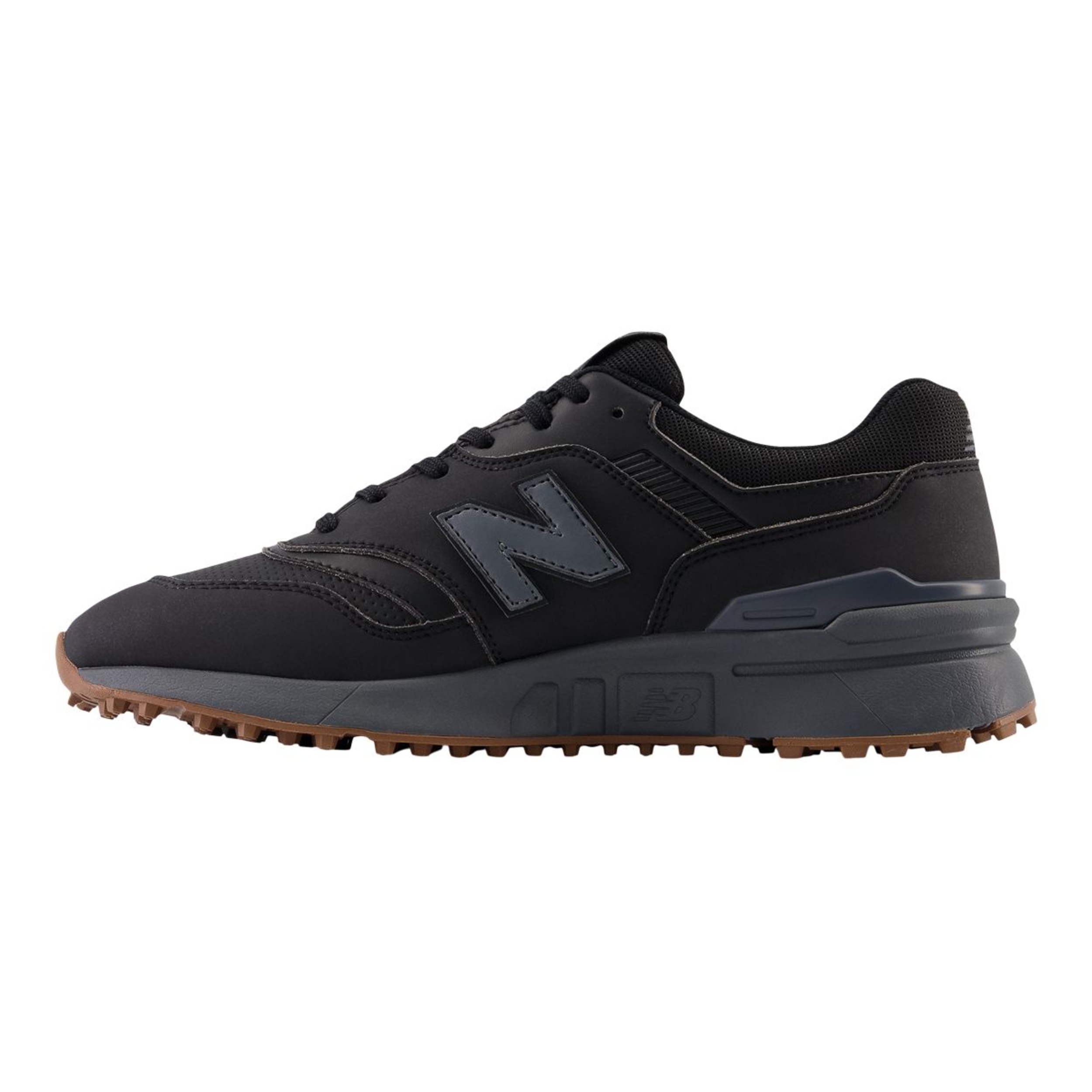 Inspired by the next-generation 997H, the New Balance Men's 997 Waterproof Golf Shoes are designed to be a modern favourite on the golf course. These shoes feature a waterproof microfiber leather upper to keep the feet dry and fresh during rounds and an Abzorb midsole for responsiveness and lightweight cushioning step after step. The Ndurance rubber outsole on these golf shoes moves naturally with the foot for enhanced flexibility and stability.
