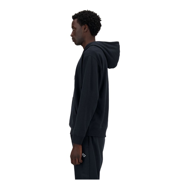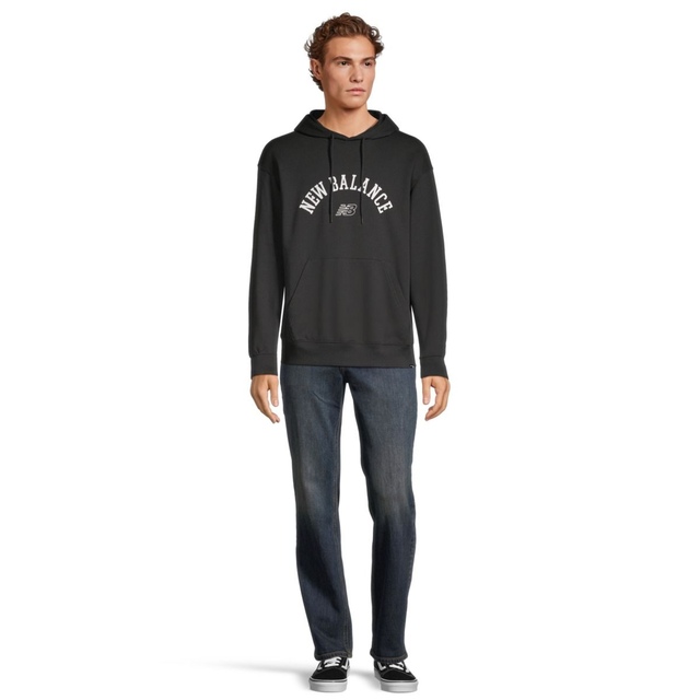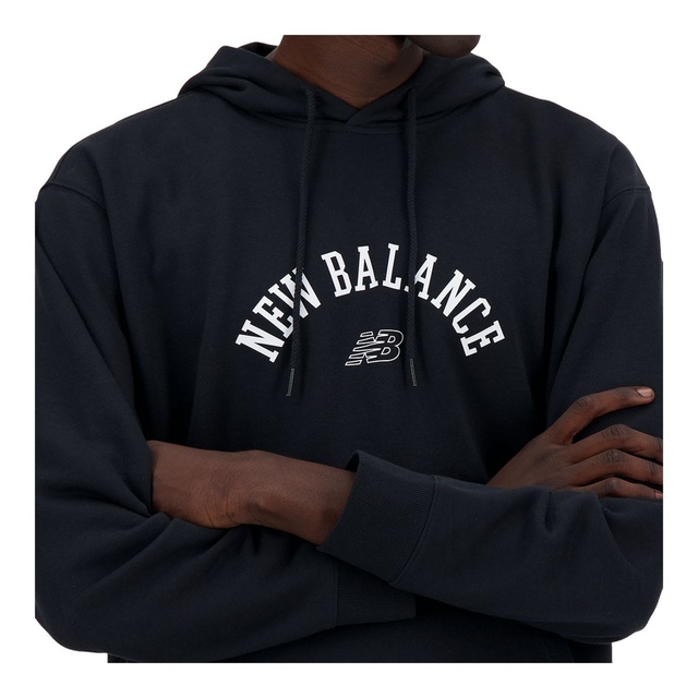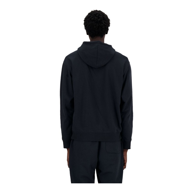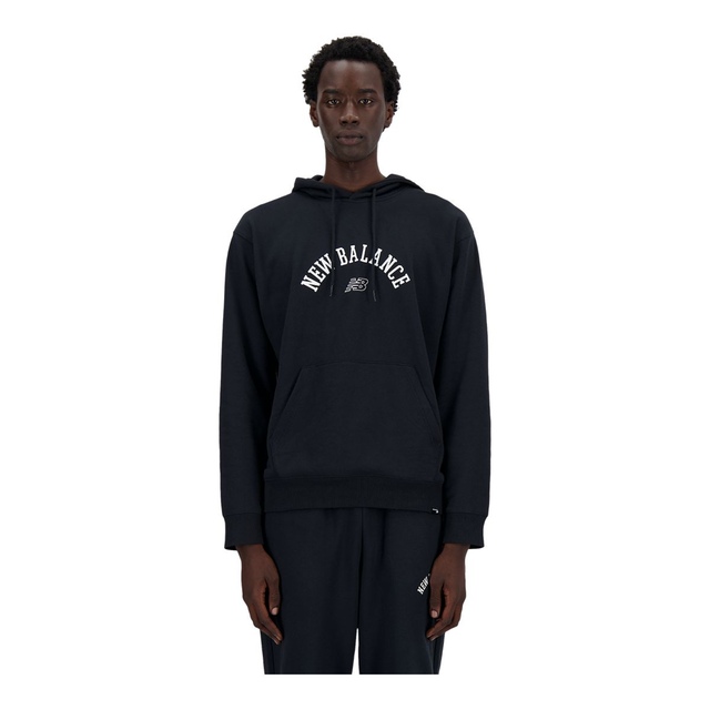 The New Balance Men's French Terry Pullover Hoodie is a stylish pullover crafted from soft French Terry. It features a full hood, kangaroo pocket, and ribbed hems for a cozy fit. The adjustable drawstring and prominent New Balance logo add functionality and flair. Whether running errands or relaxing at home, this New Balanced hoodie keeps you comfortable and stylish.
