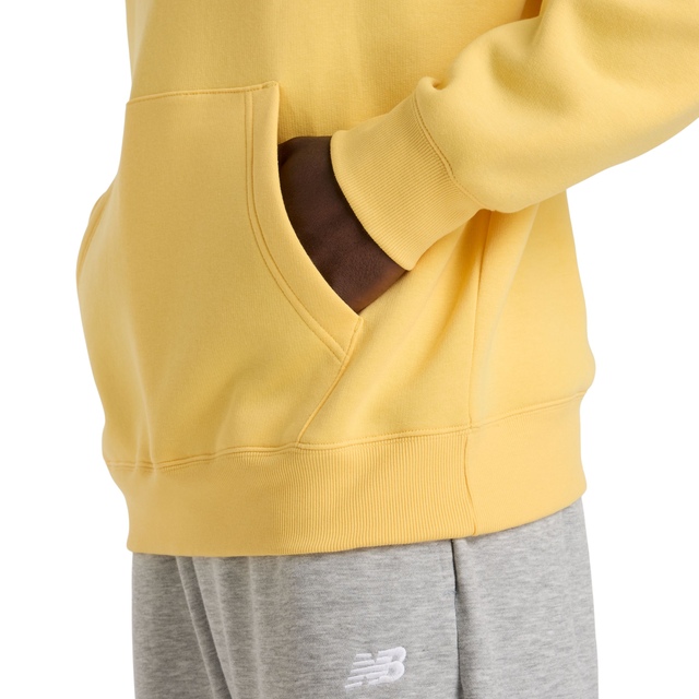 The New Balance Men's Sport Essentials Fleece Pullover Hoodie is designed for comfort and performance. Made with soft fleece and DryVent technology, it wicks moisture to keep you dry and comfortable. The adjustable drawstring hood provides customizable coverage, while the embroidered logo adds a signature branded touch.