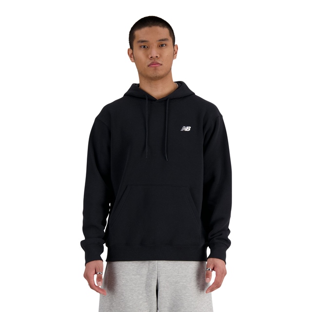The New Balance Men's Sport Essentials Fleece Pullover Hoodie is designed for comfort and performance. Made with soft fleece and DryVent technology, it wicks moisture to keep you dry and comfortable. The adjustable drawstring hood provides customizable coverage, while the embroidered logo adds a signature branded touch.