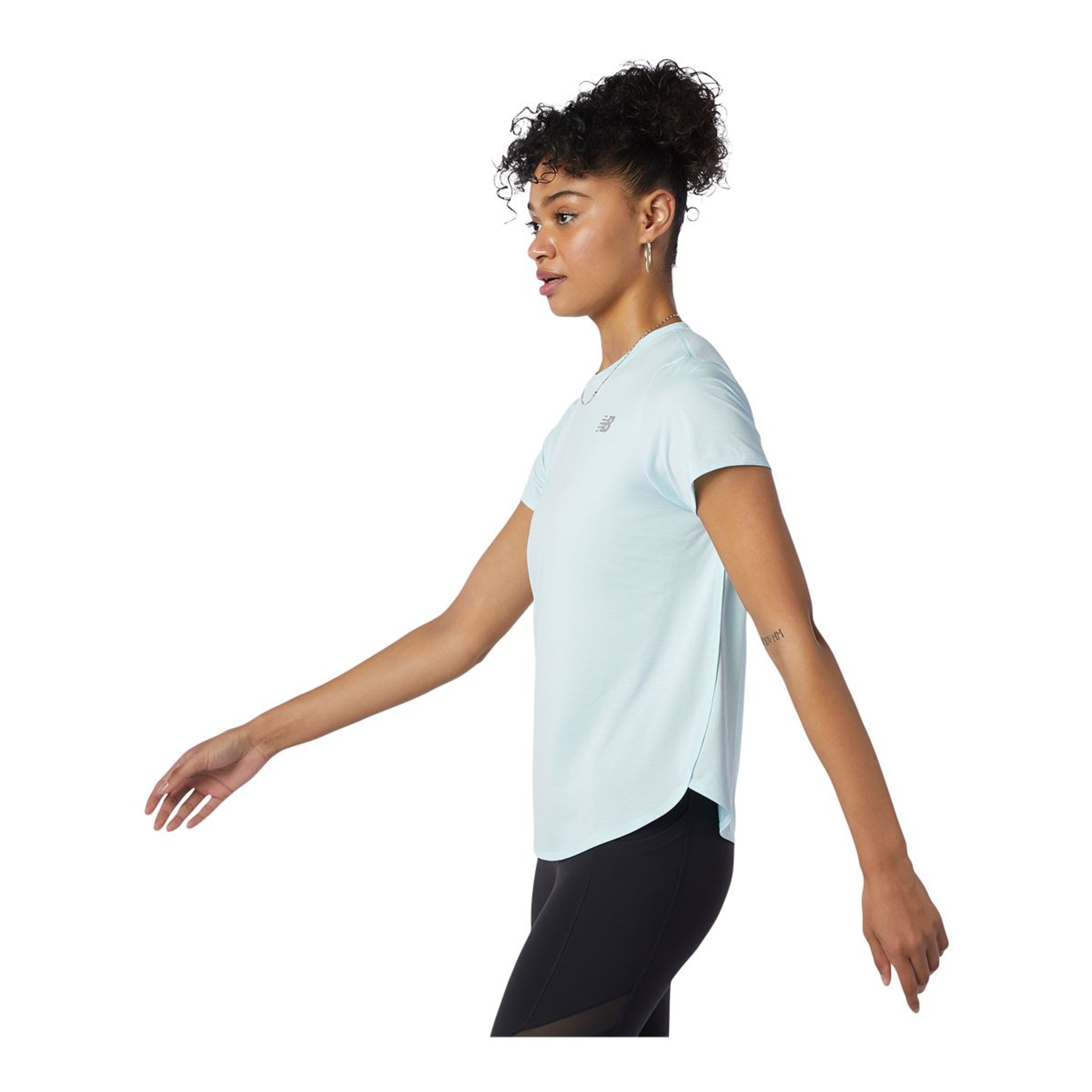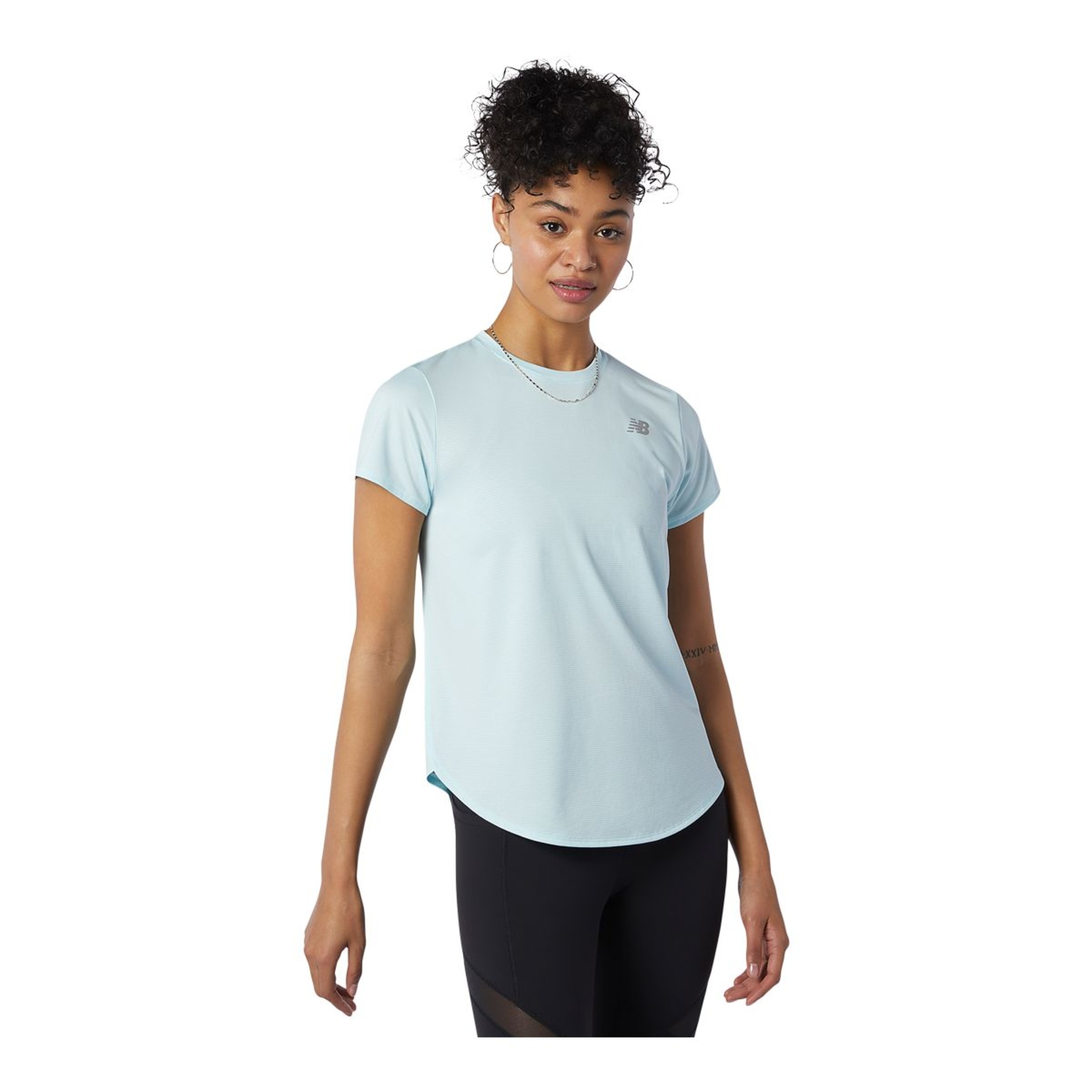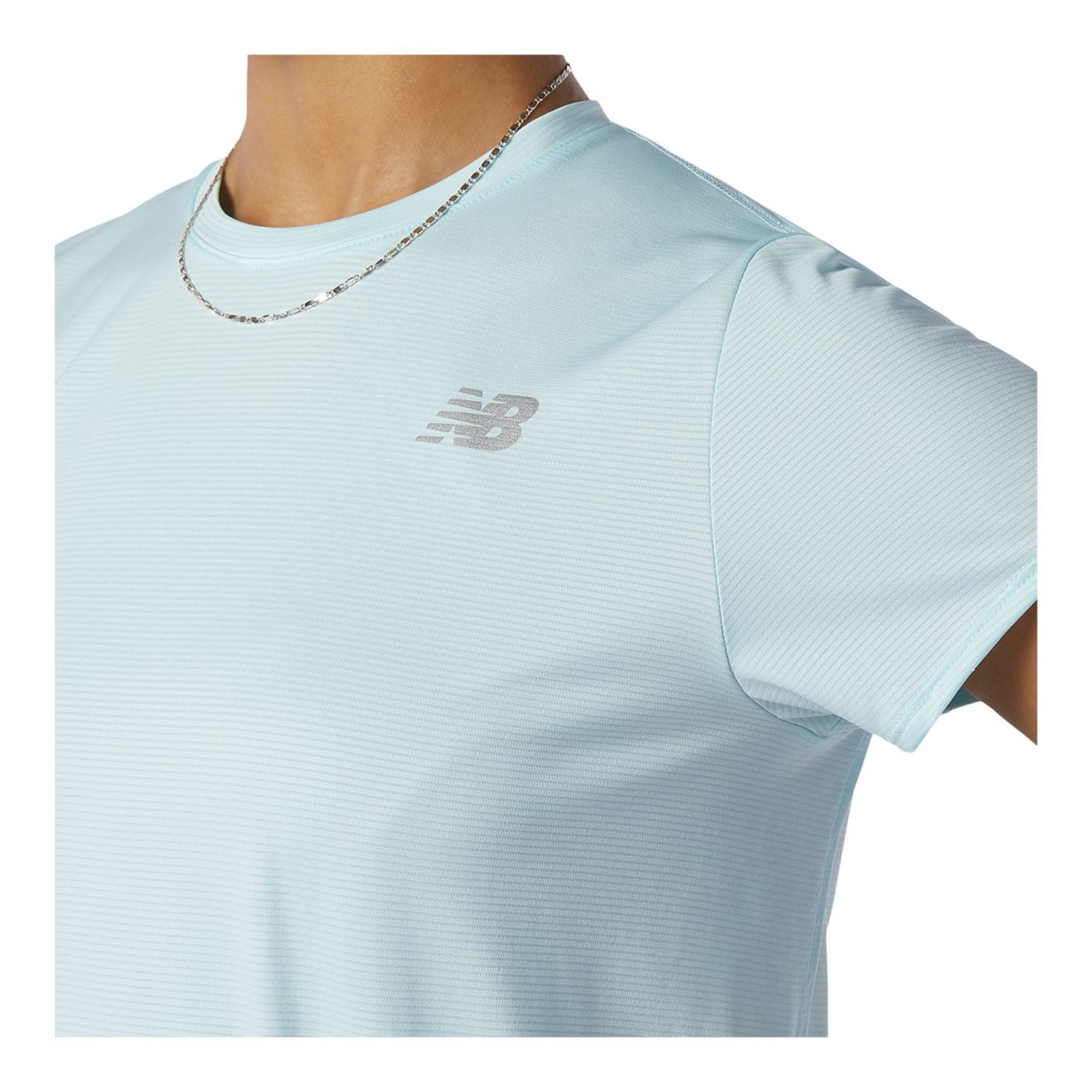 Designed for the Tier 0 runner, the versatile Accelerate Short Sleeve for women will become a wardrobe workhorse. Designed using recycled poly knit fabric with NB Dry technology for fast wicking, this lightweight women's short sleeve shirt helps keep you dry and comfortable when your workout heats up. The reflective trims and scallop hem top this short sleeve off with a stylish touch to keep you looking and feeling good.