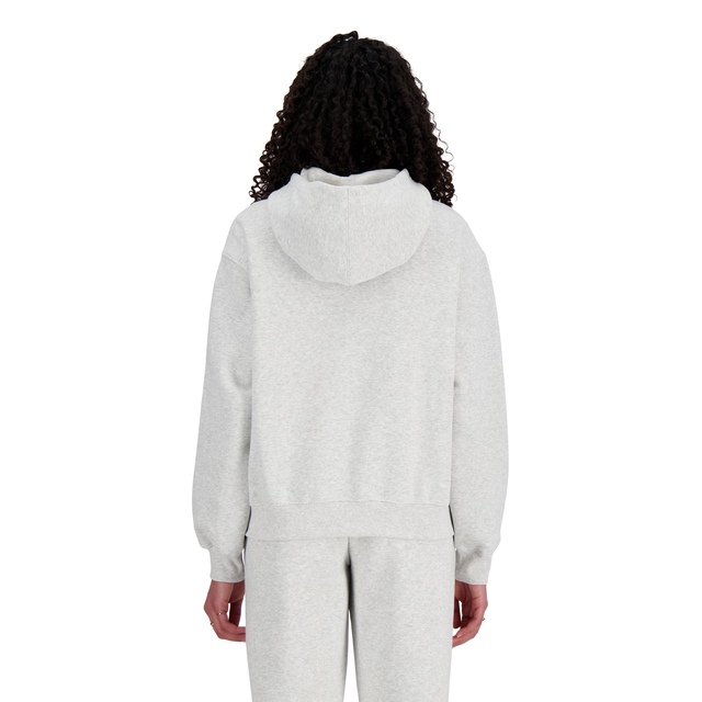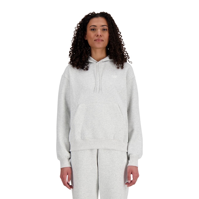 The New Balance Women's Sport Essentials Fleece Hoodie offers luxurious comfort with its soft brushed fleece fabric and oversized fit. This cozy outerwear features an embroidered logo that adds a touch of brand style, making it perfect for casual wear or light activities. With its warm and relaxed design, this fleece hoodie is an ideal choice for women seeking a blend of fashion and function.