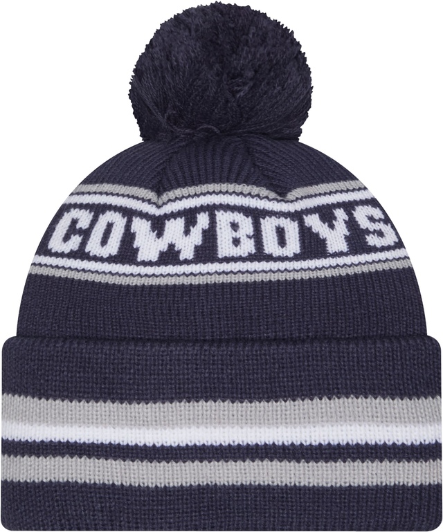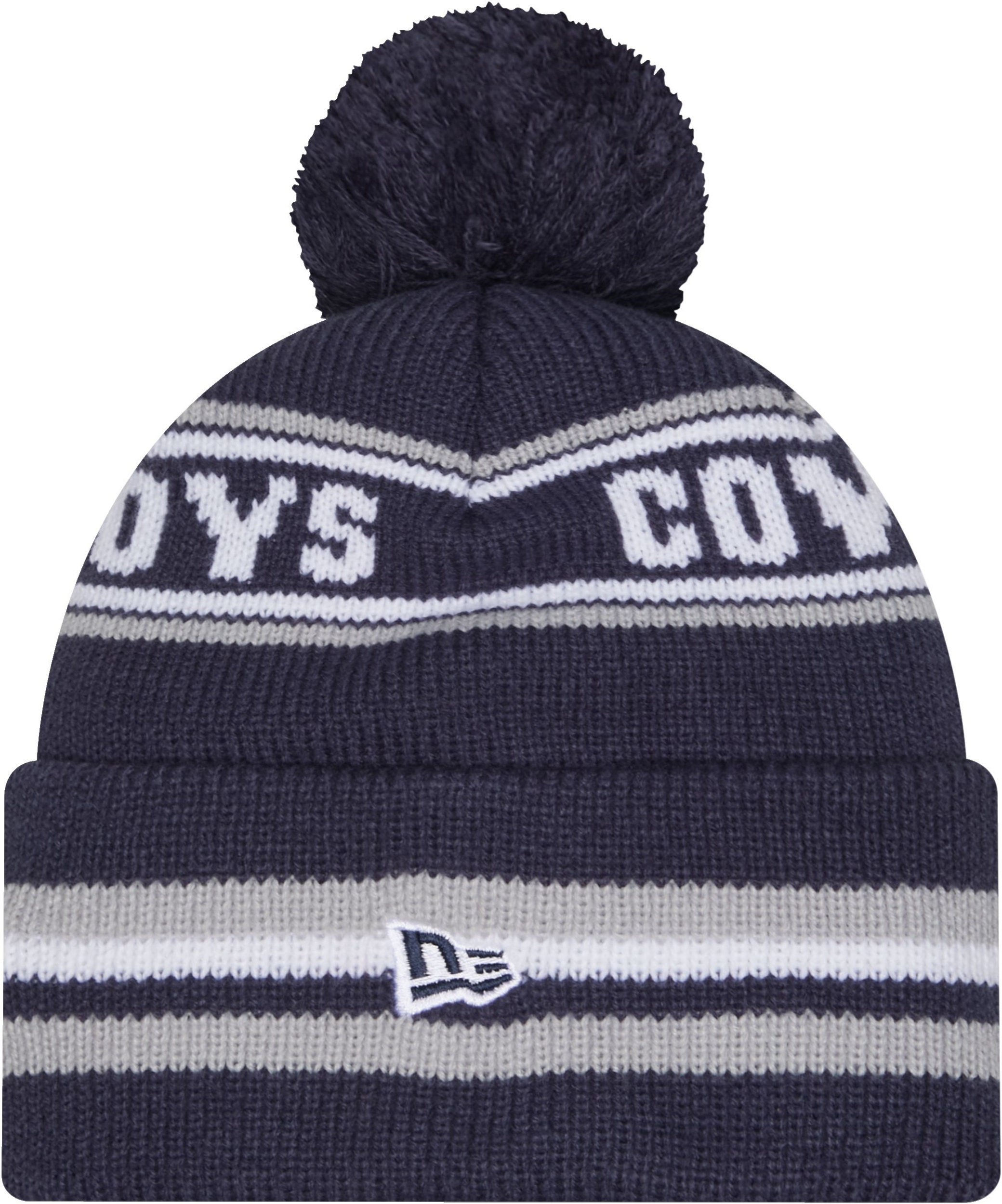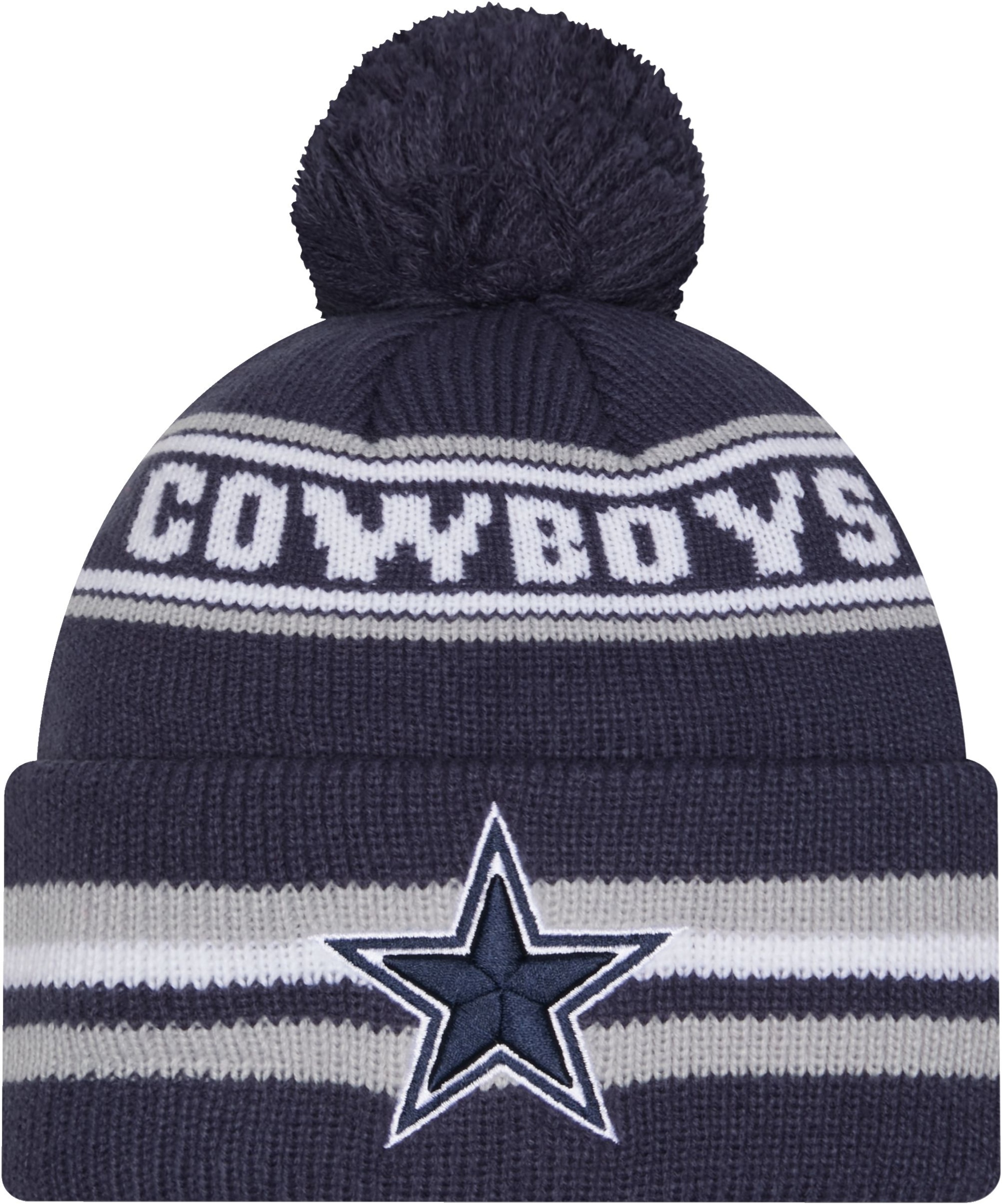 Show your support for the Dallas Cowboys with the New Era Dallas Cowboys Knit Hat. This knit winter hat features secondary team colour striping, a woven Cowboys wordmark, and an embroidered primary logo on the cuff to showcase support. The one-time removable pom allows you to customize your look, making it a versatile addition to your game day gear.