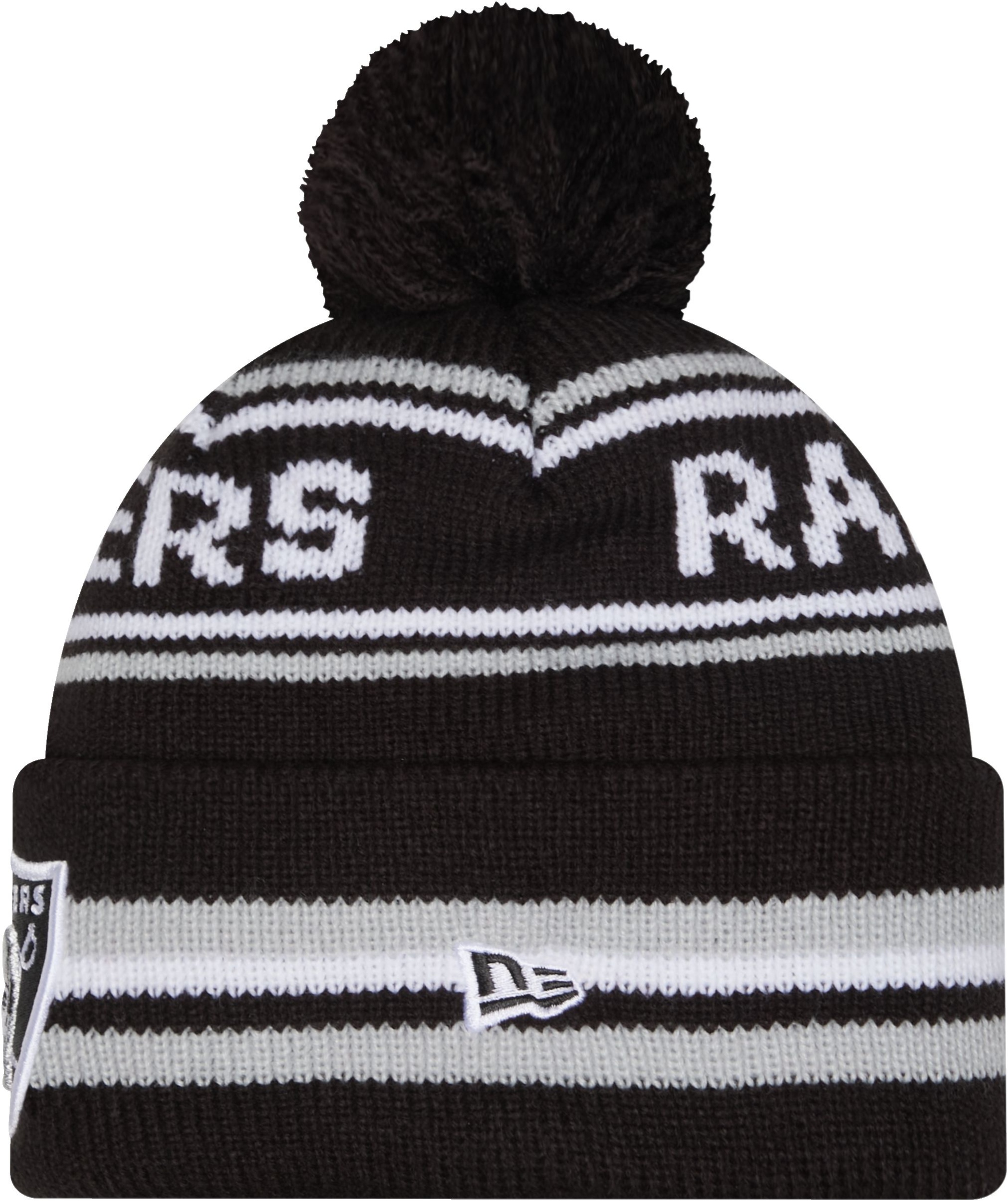 Show your support for the Las Vegas Raiders with the Las Vegas Raiders New Era Classic Knit Hat. Featuring team colours, striping, and a woven wordmark, this hat is perfect for any fan. The primary logo is embroidered on the cuff, and the removable pom allows you to customize your look.