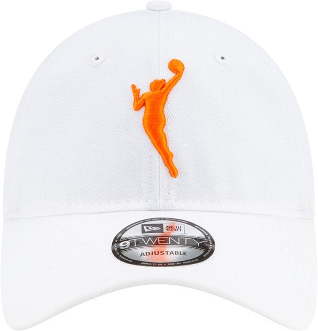 WNBA 9TWENTY adjustable cap. Lightly structured cotton adjustable cap with cloth strap closure. Featuring WNBA logo embroidered on front panels.