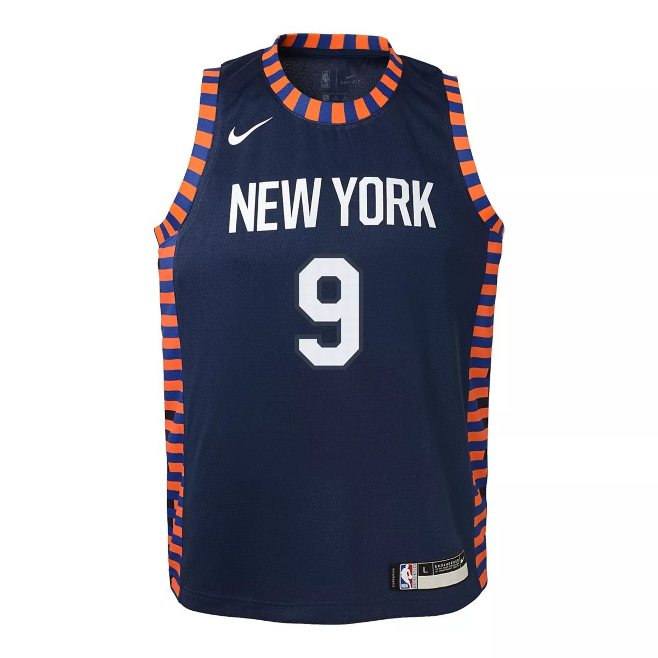 Celebrate your hardcore Knicks basketball allegiance when you put on this Youth New York Knicks RJ Barrett City Edition Swingman Jersey. The bold Knicks graphics will show your NBA team pride whether at the court, on the streets or in the stands! Officially Licensed by the NBA.