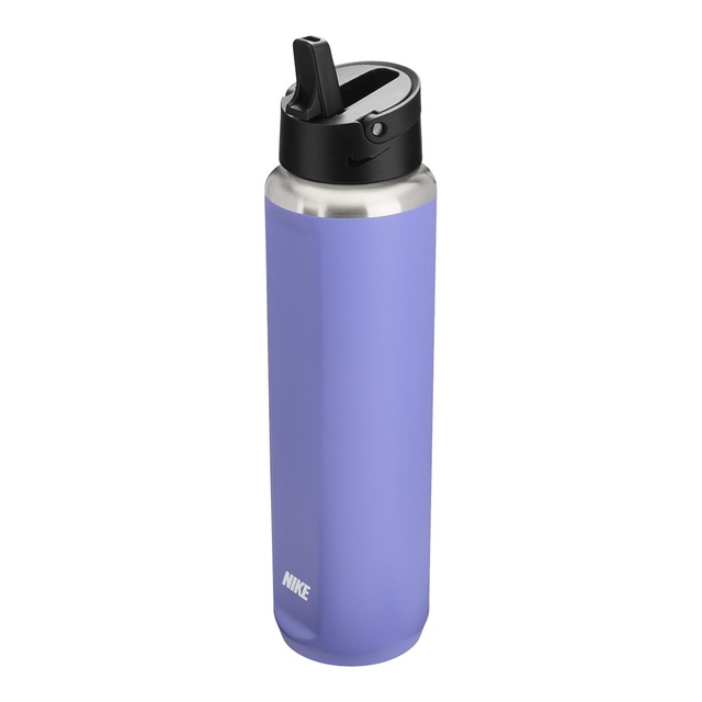 Enjoy instant refreshment on the go with the Nike 32 oz Recharge Straw Bottle. The durable stainless steel design features vacuum insulation, an ergonomic shape for easy handling and a convenient carry loop. The soft straw tip detaches for effortless cleaning. The Nike Recharge bottle keeps contents cold and secure for mobile hydration.