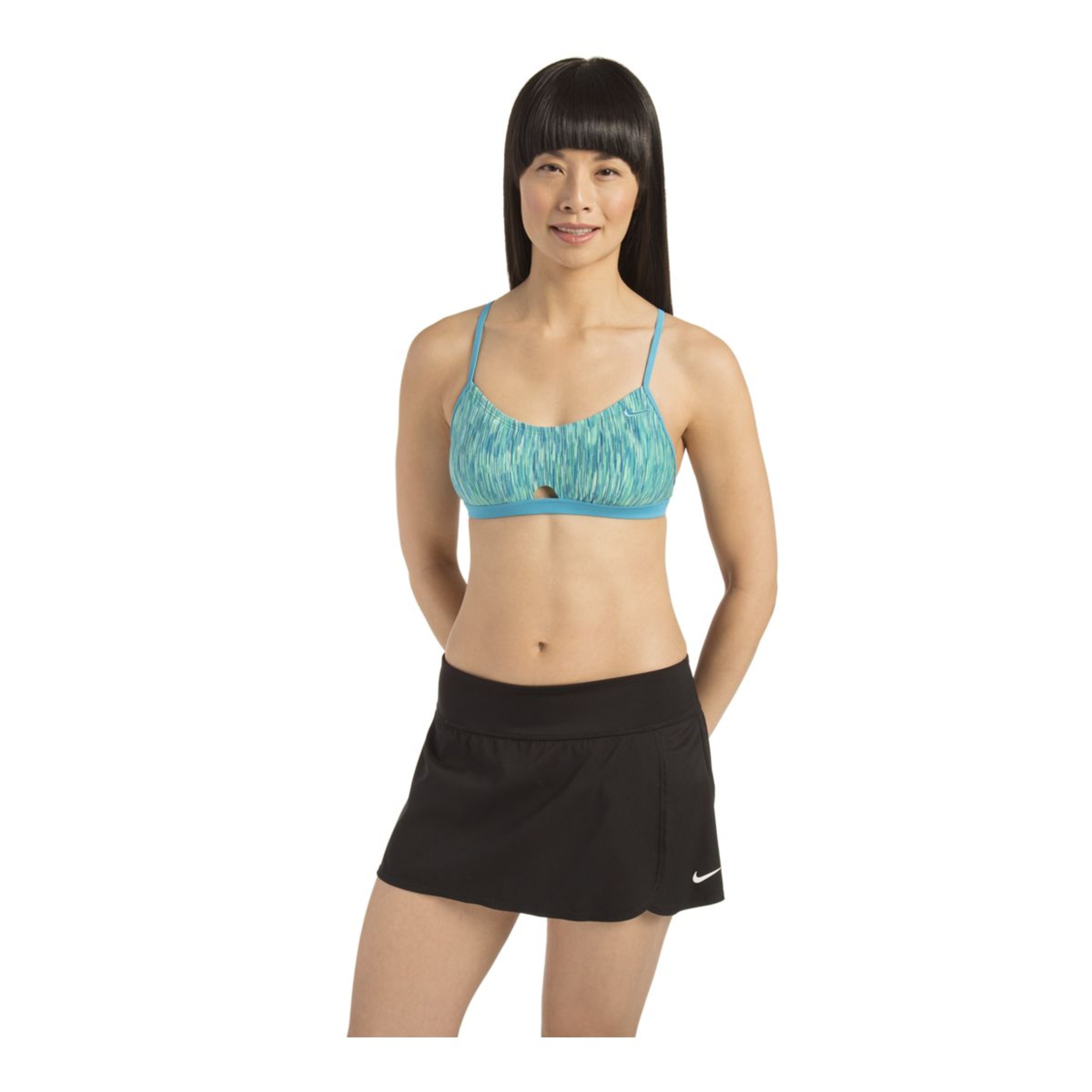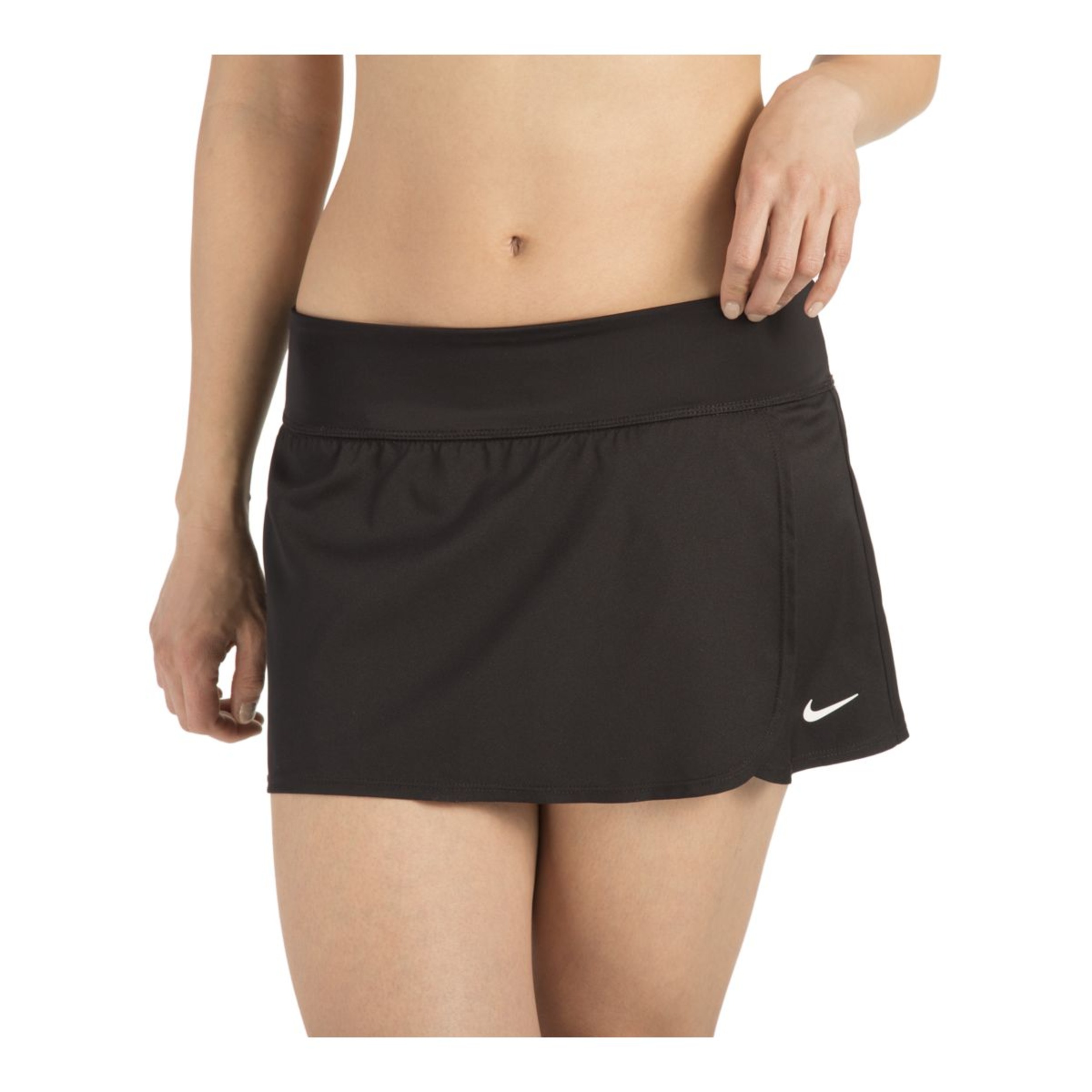 The Nike Core Swim Women's Boardskirt features durable chlorine-resistant fabric ideal for swimming and aquatic activities. This versatile swimwear provides a powernet waistband for a supportive, comfortable fit along with a built-in brief for coverage. The front vent enhances range of motion, while the secure back zip pocket with contrast pull safely stores essentials.