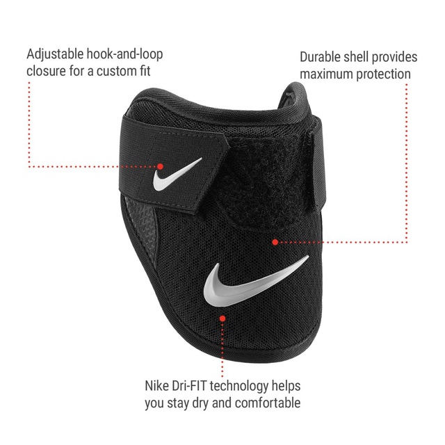 Your young Nike athlete will feel that extra sense of security when they step into the batter’s box wearing the Nike Youth Diamond Batters Elbow Guard. Durable, impact-resistant shell provides maximum protection. Low-profile, ergonomic design enhances natural range of motion. Adjustable, single strap, hook-and-loop closure. Nike Dri-FiT technology helps you stay dry and comfortable. Contents: 62% Polyethylene, 18% Polyester, 11% Ethylene Vinyl Acetate, 5% Rubber, 4% Polyurethane.