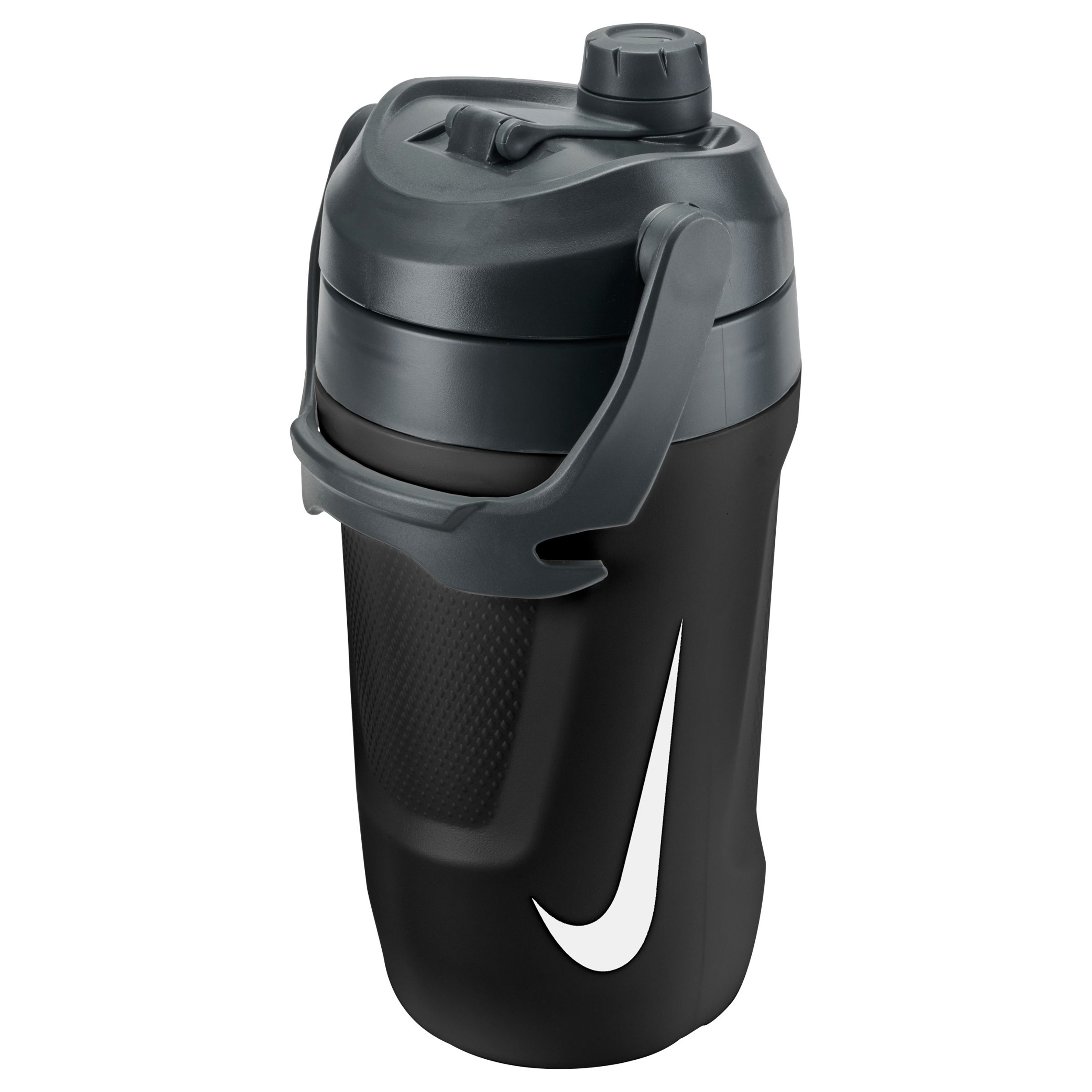 The Nike Fuel Jug 64 oz Water Bottle is designed for optimal hydration with a textured surface and tapered shape for enhanced grip. It features a one-handed flip spout for effortless drinking, and this jug's lightweight insulation keeps beverages cold. It's BPA-free for safe consumption and this Nike water bottle has a dishwasher-safe lid and a hand-washable body for easy clean-up.