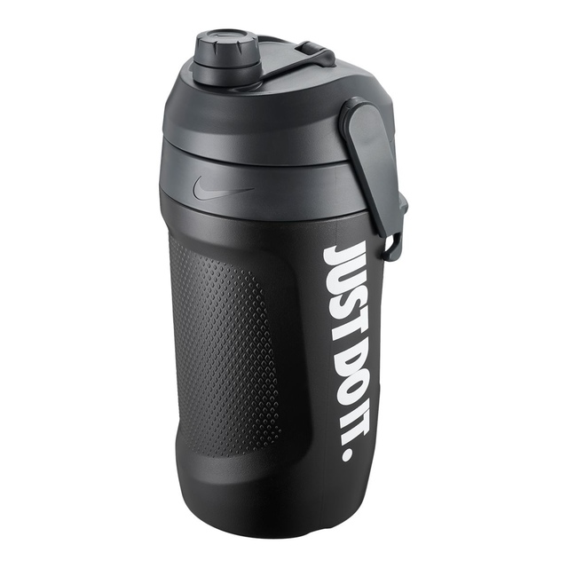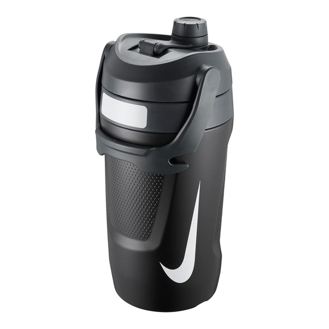 The Nike Fuel Jug 64 oz Water Bottle is designed for optimal hydration with a textured surface and tapered shape for enhanced grip. It features a one-handed flip spout for effortless drinking, and this jug's lightweight insulation keeps beverages cold. It's BPA-free for safe consumption and this Nike water bottle has a dishwasher-safe lid and a hand-washable body for easy clean-up.
